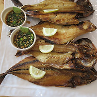 입구에 생선을 굽는 화덕이 있어 여기서 생선을 구워 옵니다.