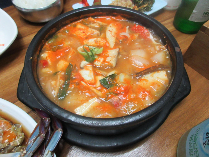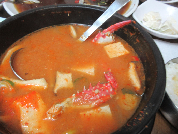 꽃게가 들어 간 이 집의 된장찌개가 그 아쉬움을 달래 줍니다.