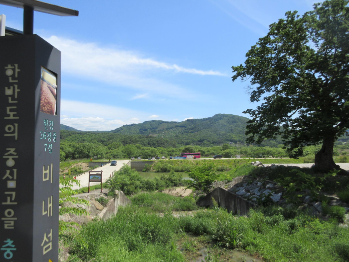 충주시 앙성면 탄산온천으로 유명한 앙성온천지구에서 5분 정도면 도착하는 비내섬