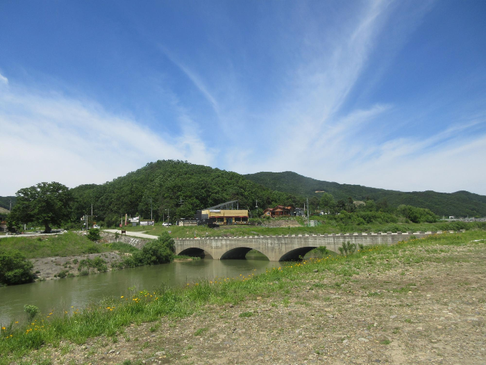 입구 맞은편으로는 비내마을이 있고 섬은 다리 건너에 있는데 걸어서 건너갈 수 있습니다.