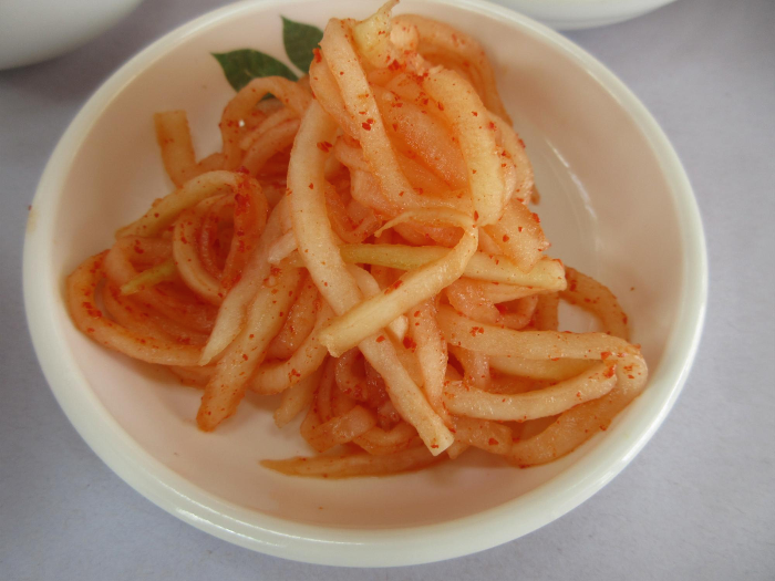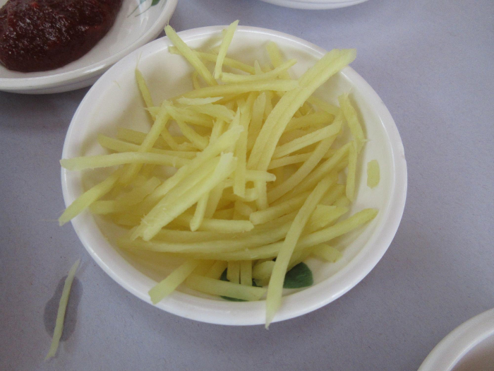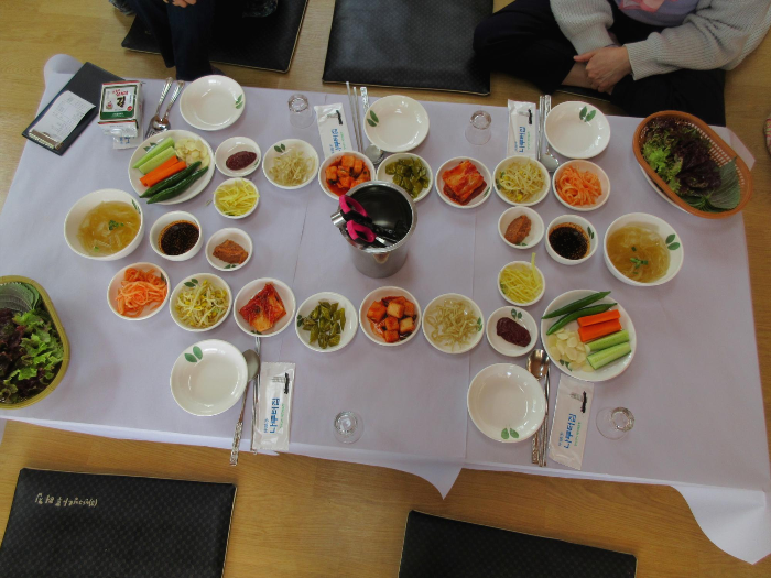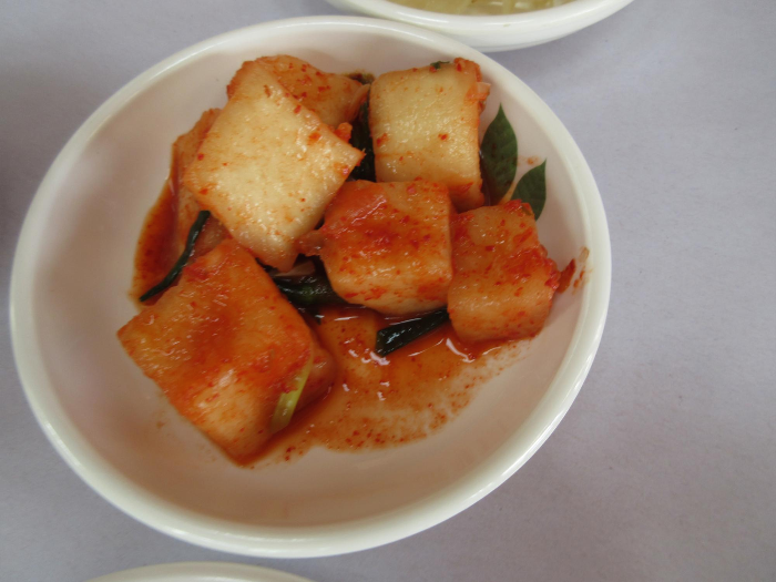이 집은 특이하게도 반찬들을 별도로 가져다 진열하지 않고 상채 들고 들어옵니다.