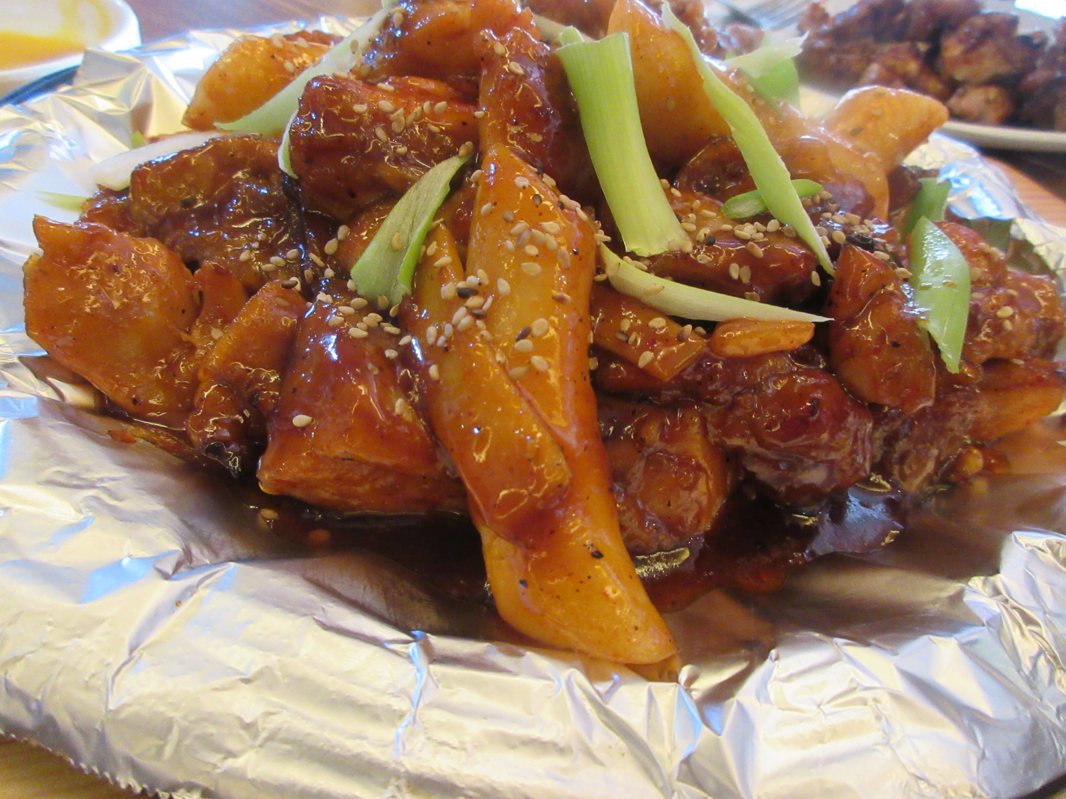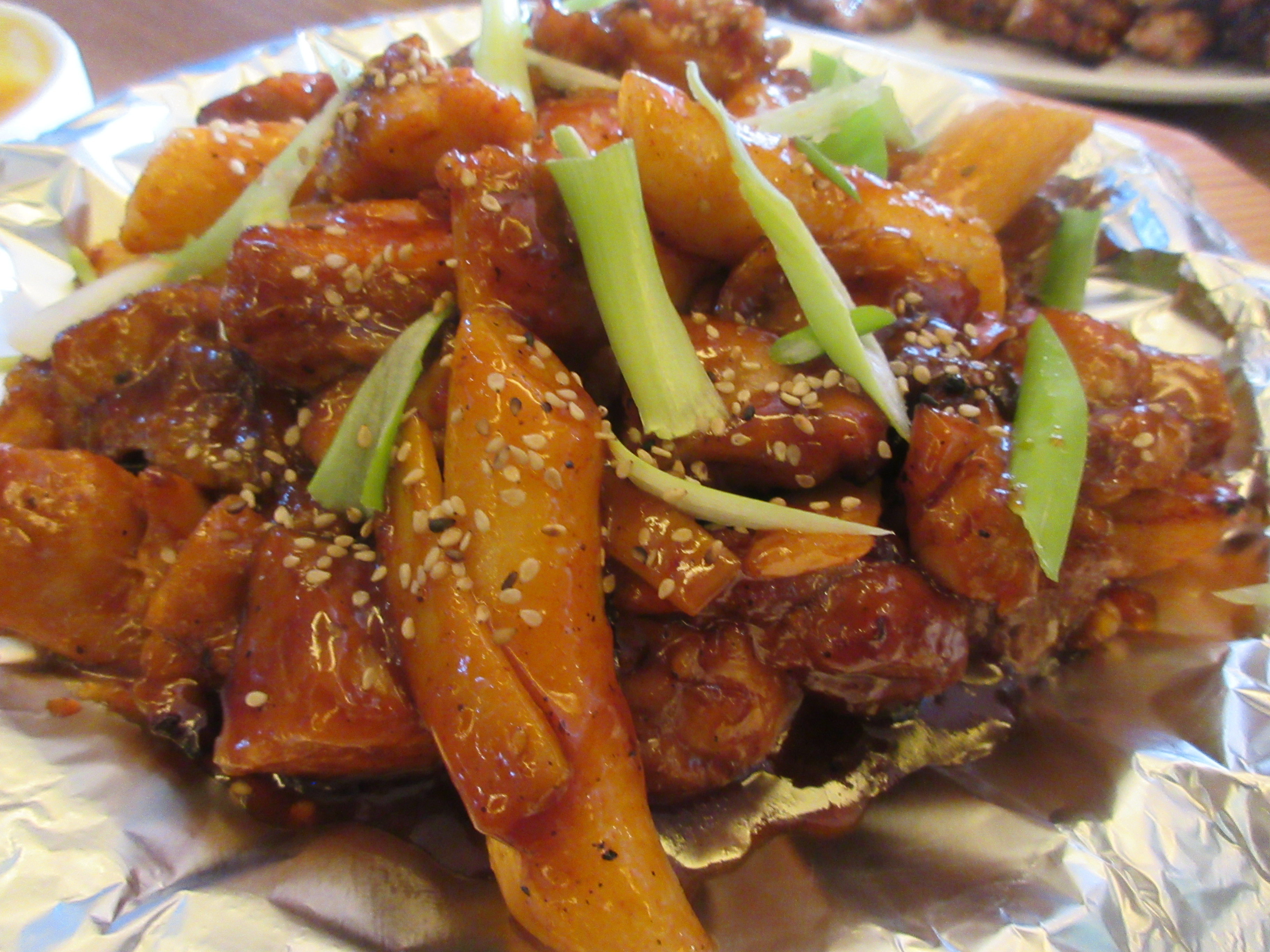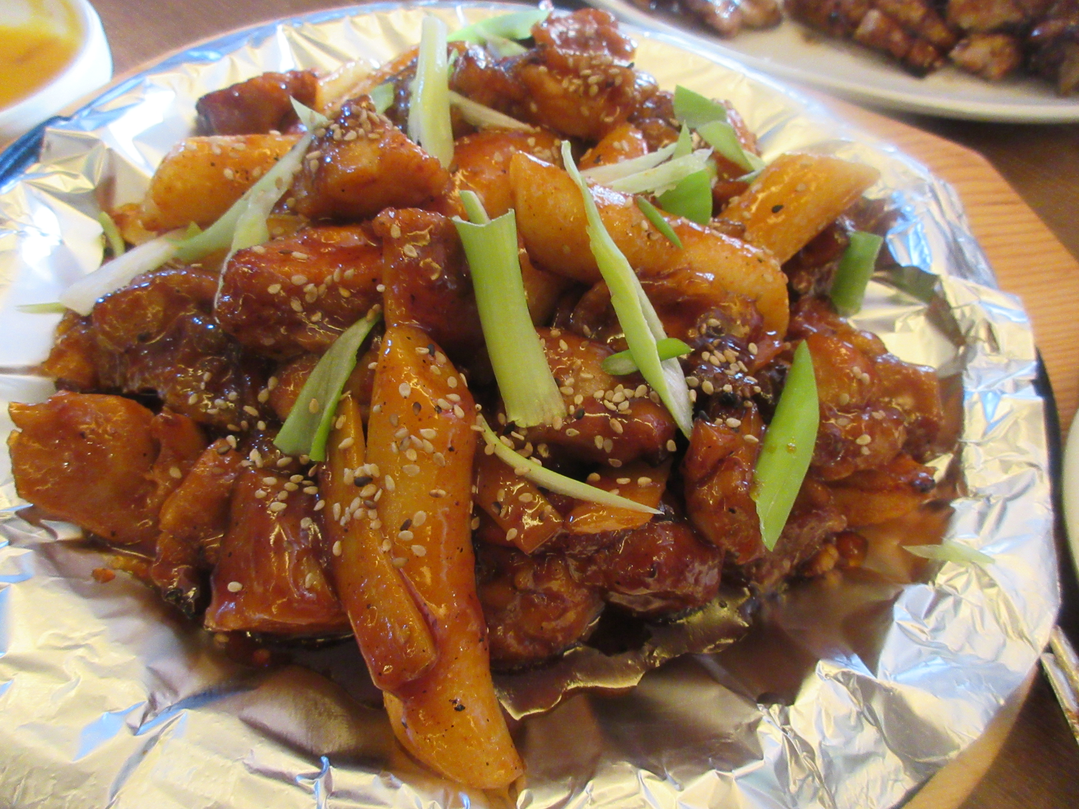 뼈 없는 부드러운 다리살과 흰떡, 매콤 달콤한 소스가 어우러져 훌륭한 조화를 만들어 내는군요.