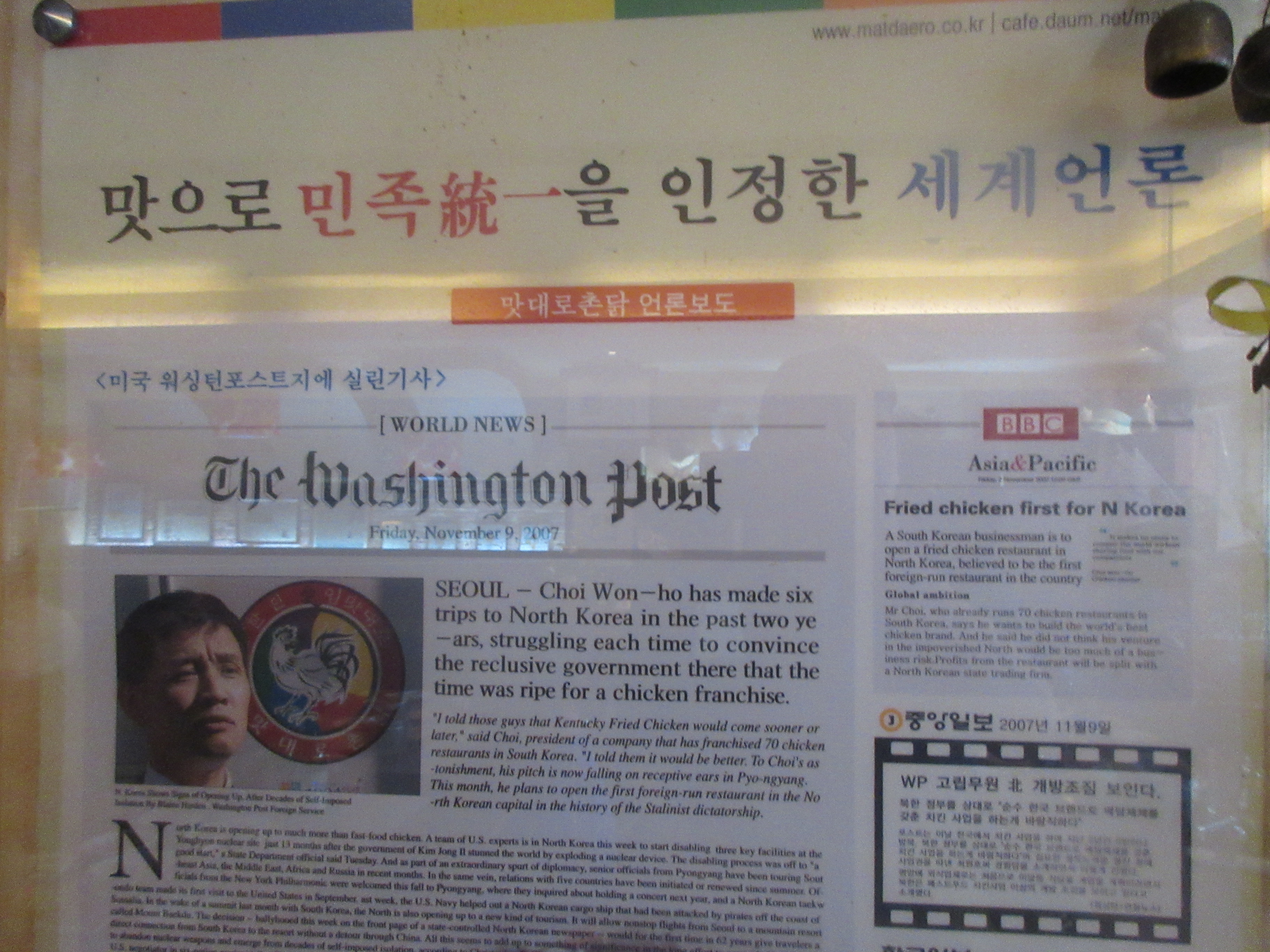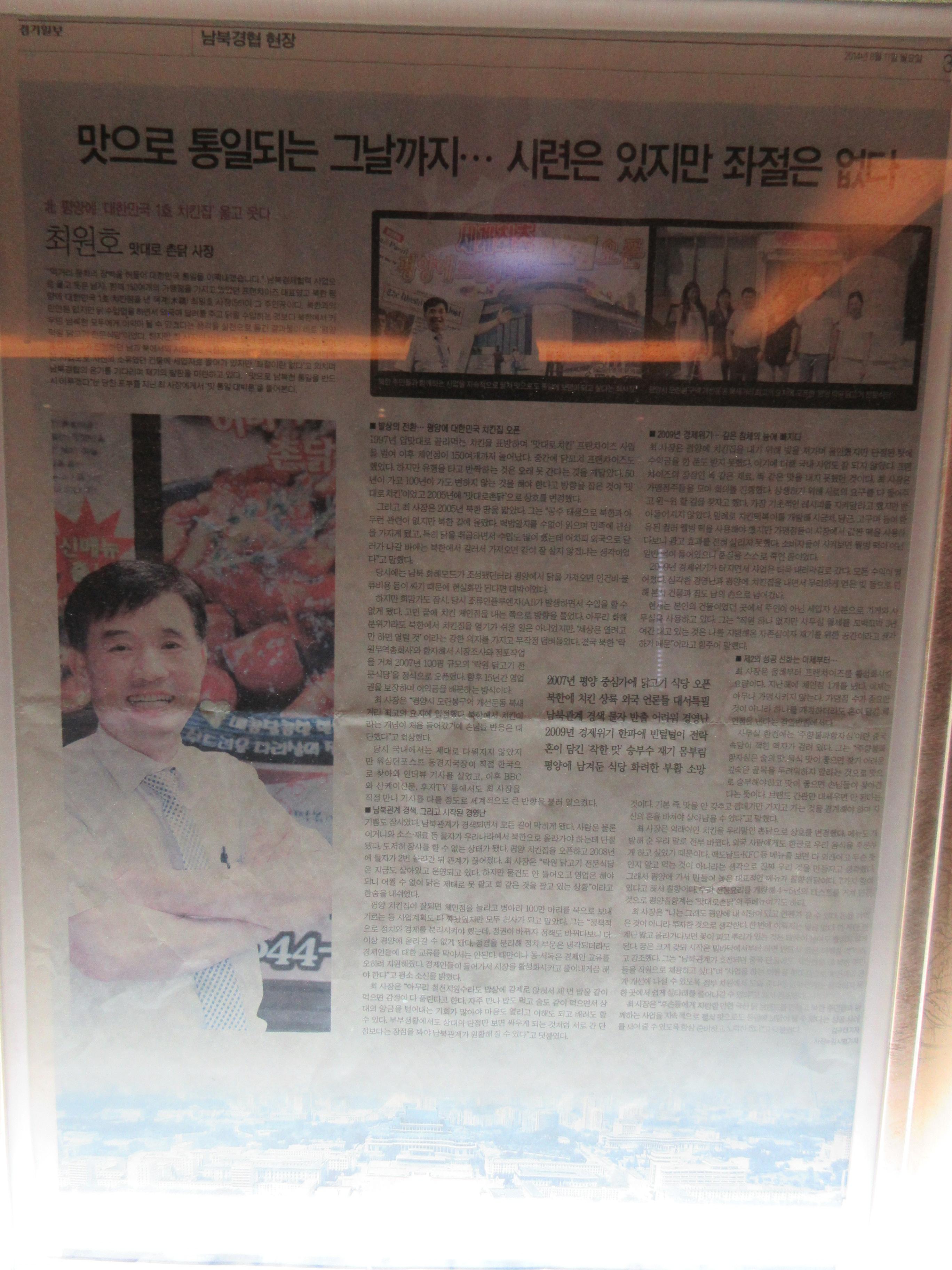 2007년 평양에 차린 치킨집은 다수의 해외 언론에서도 소개되고 상당한 유명세를 탑니다.