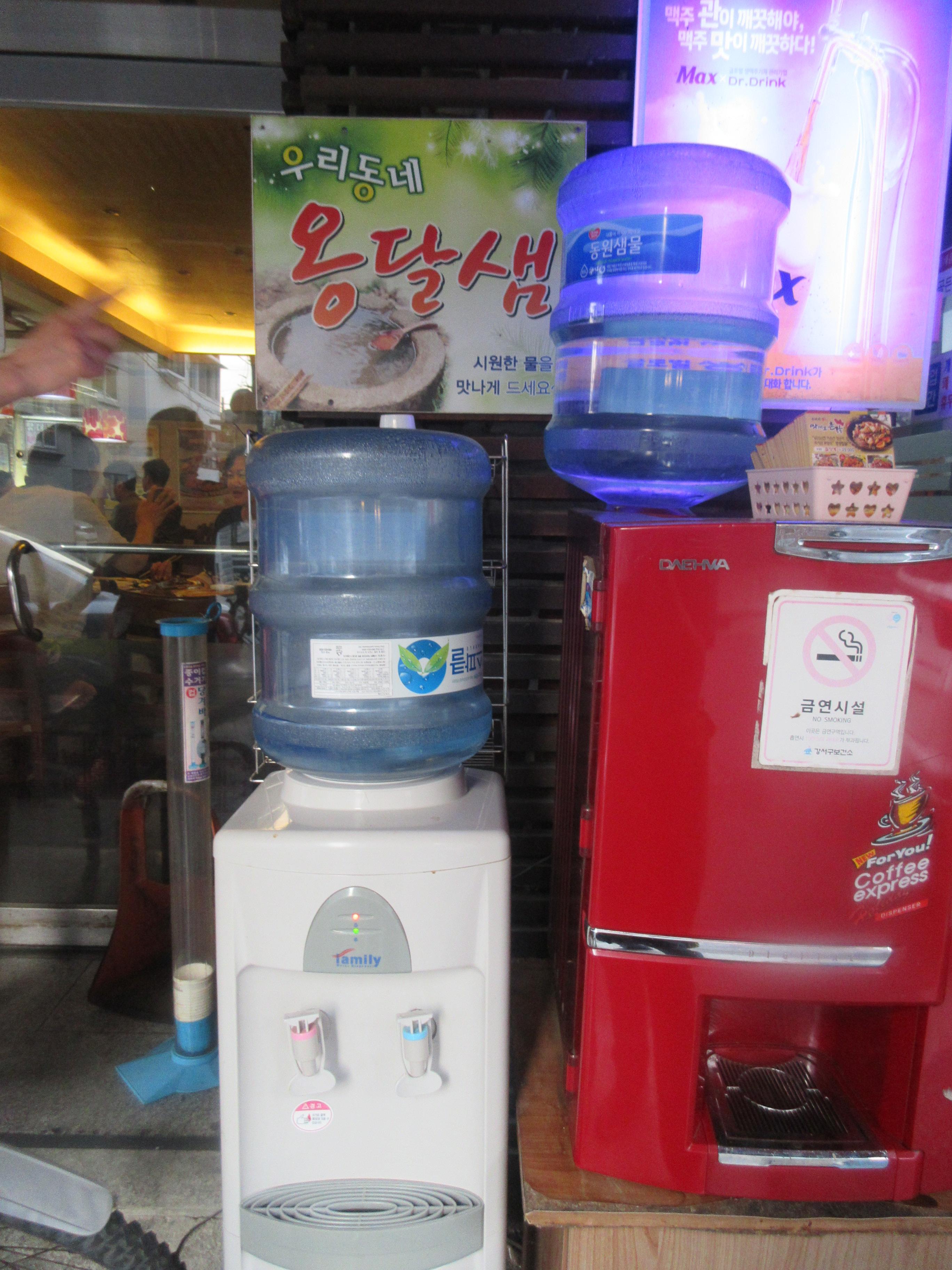 지나가는 동네분들 누구나 편하게 마시고 또는 퍼가라는 냉온수기가 있습니다.