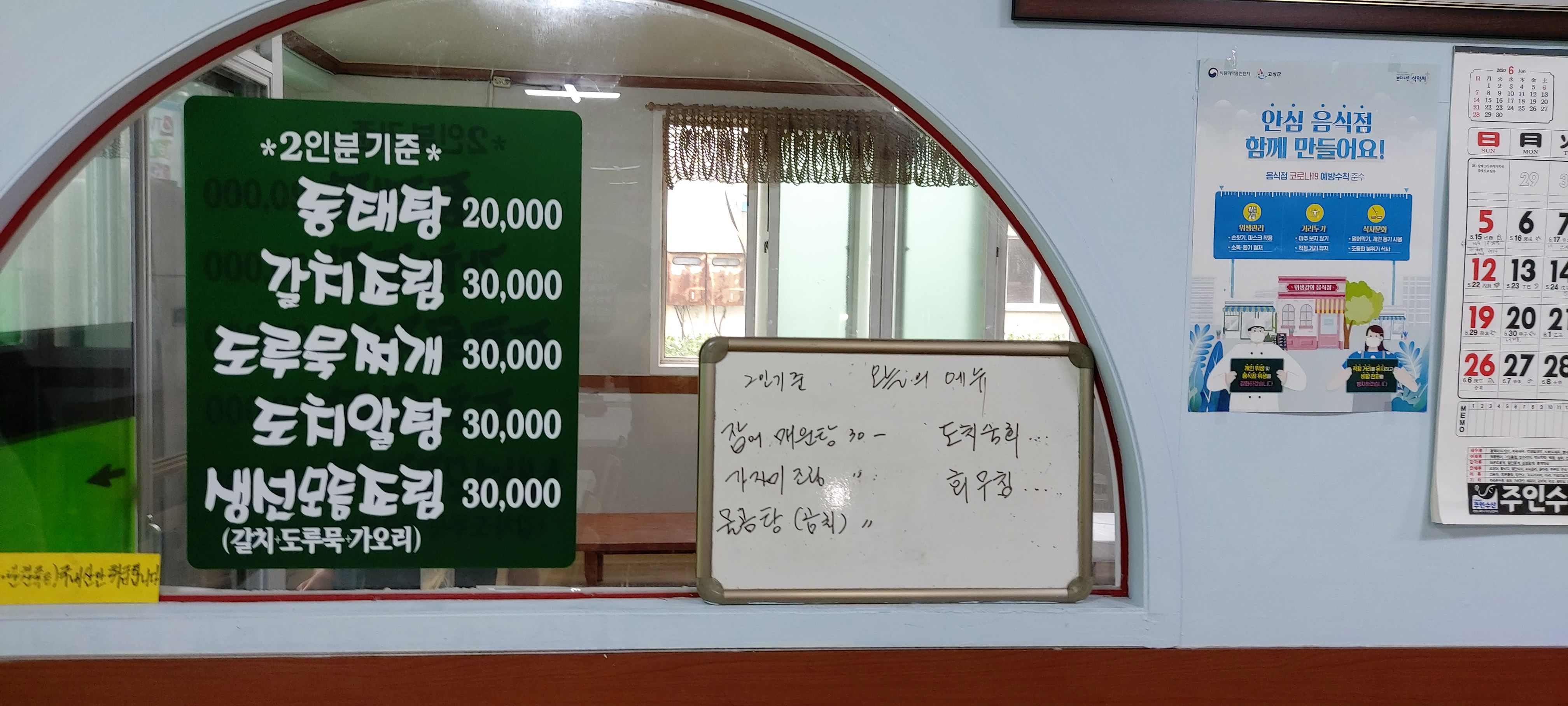 동태탕을 제외하고는 1인 15,000원 선입니다.