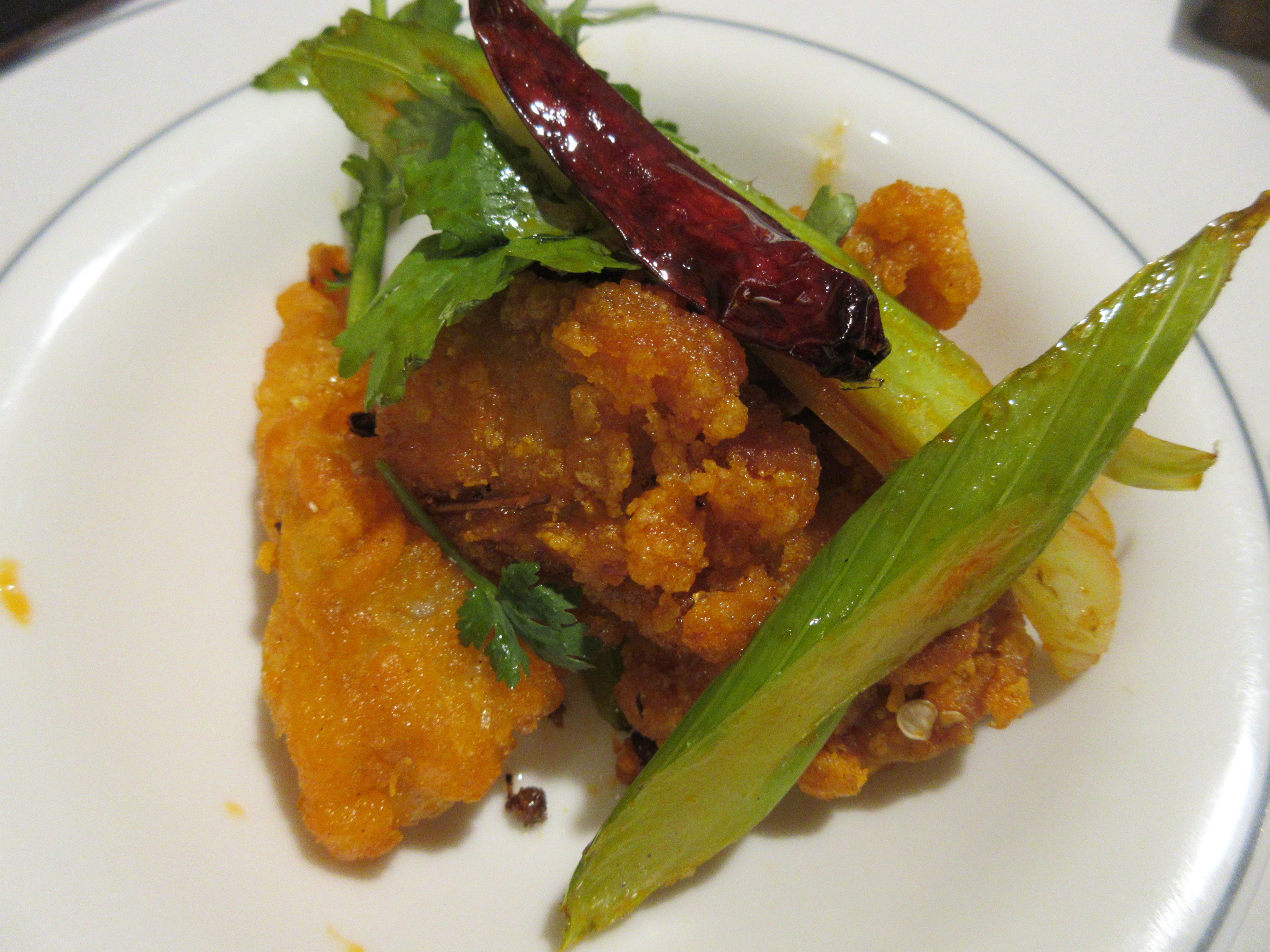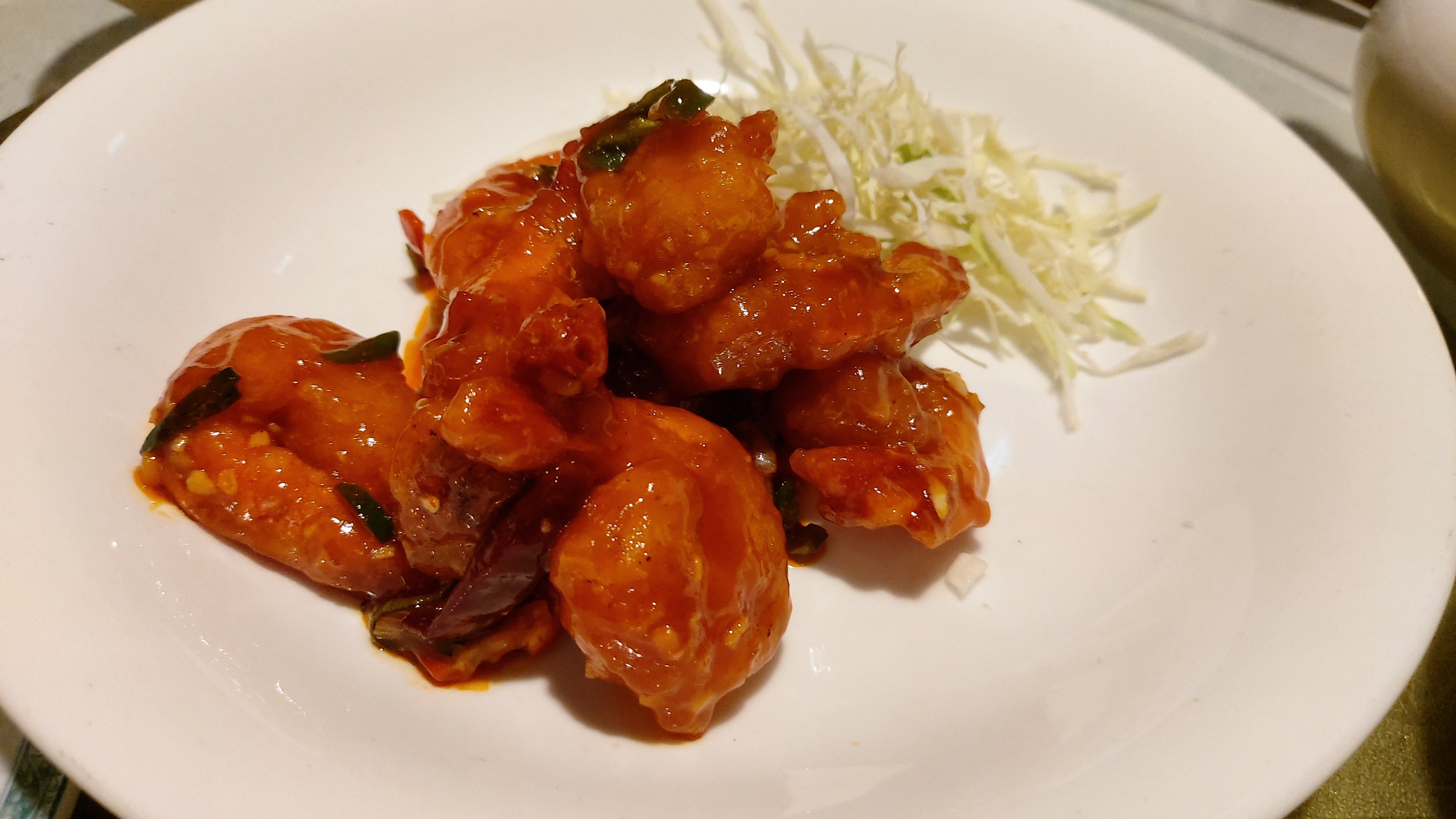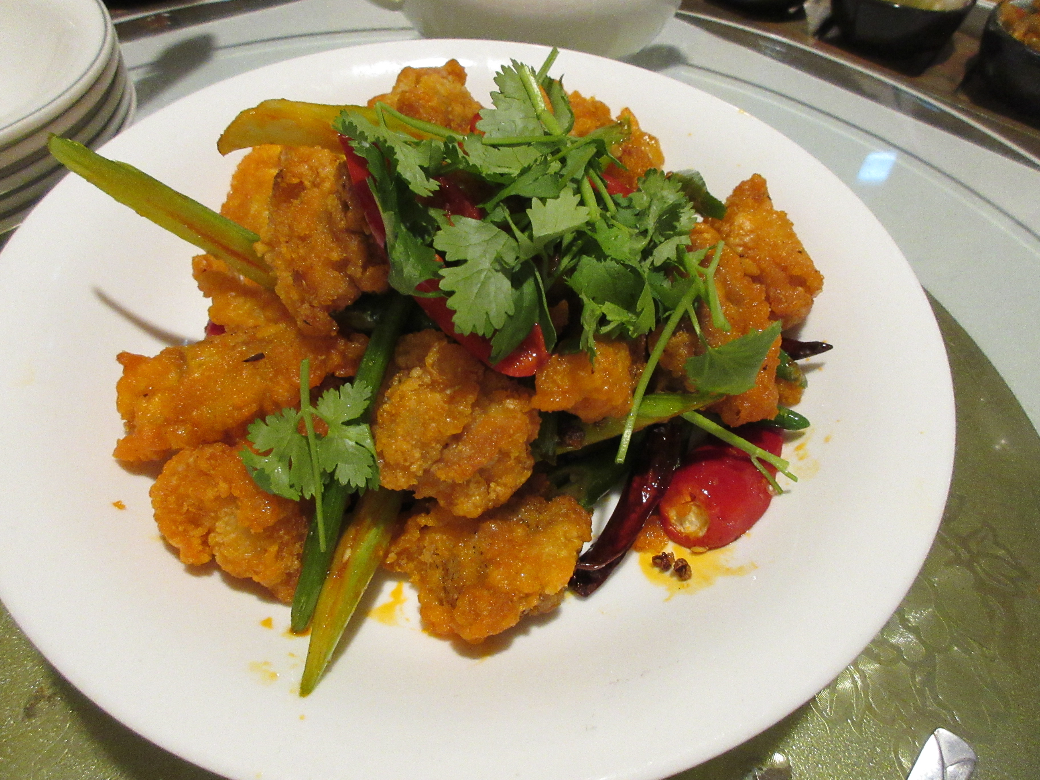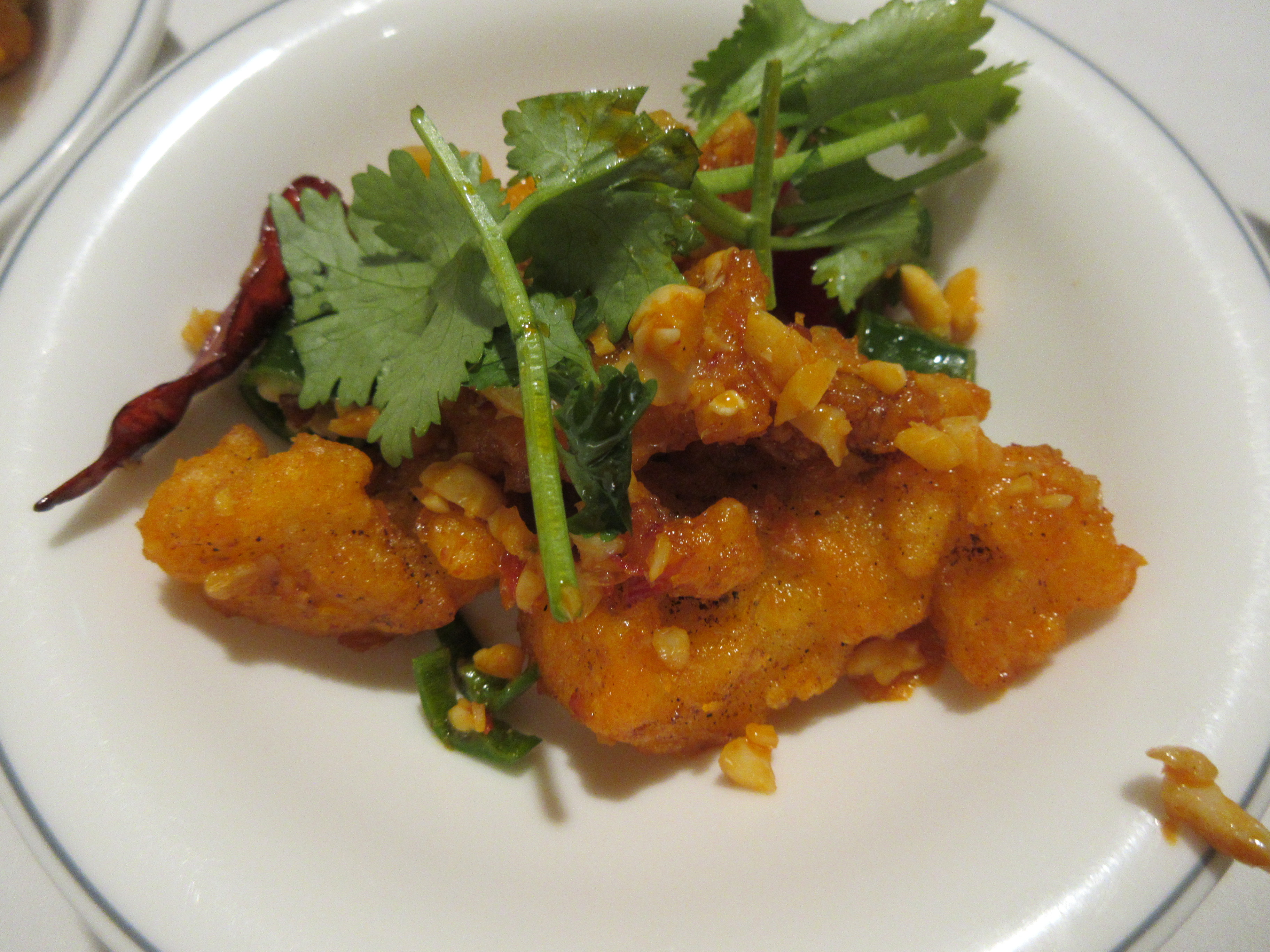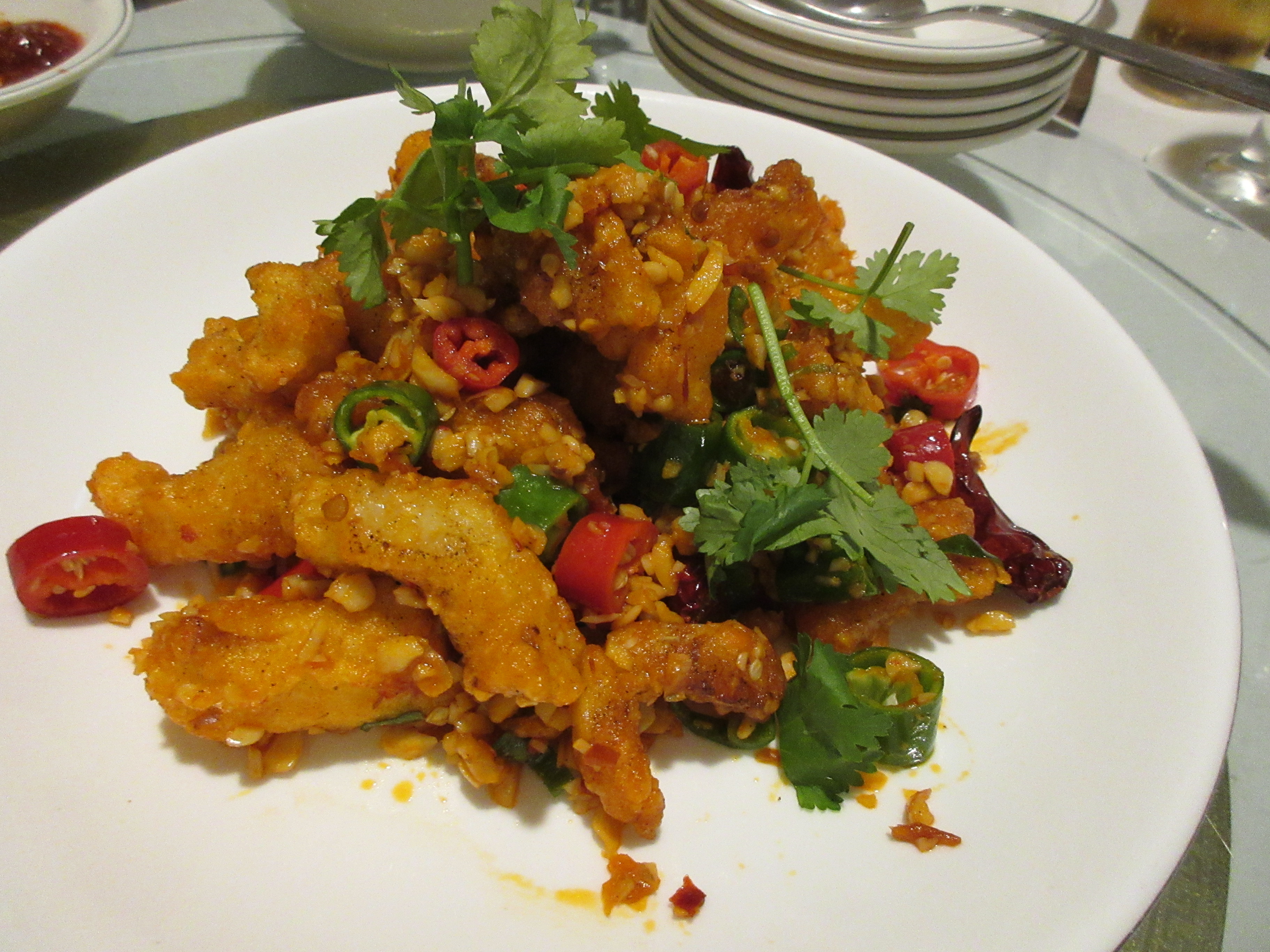 중하급의 새우를 튀겨 칠리소스에 볶아 왔는데 역시 그다지 맵지는 않습니다.