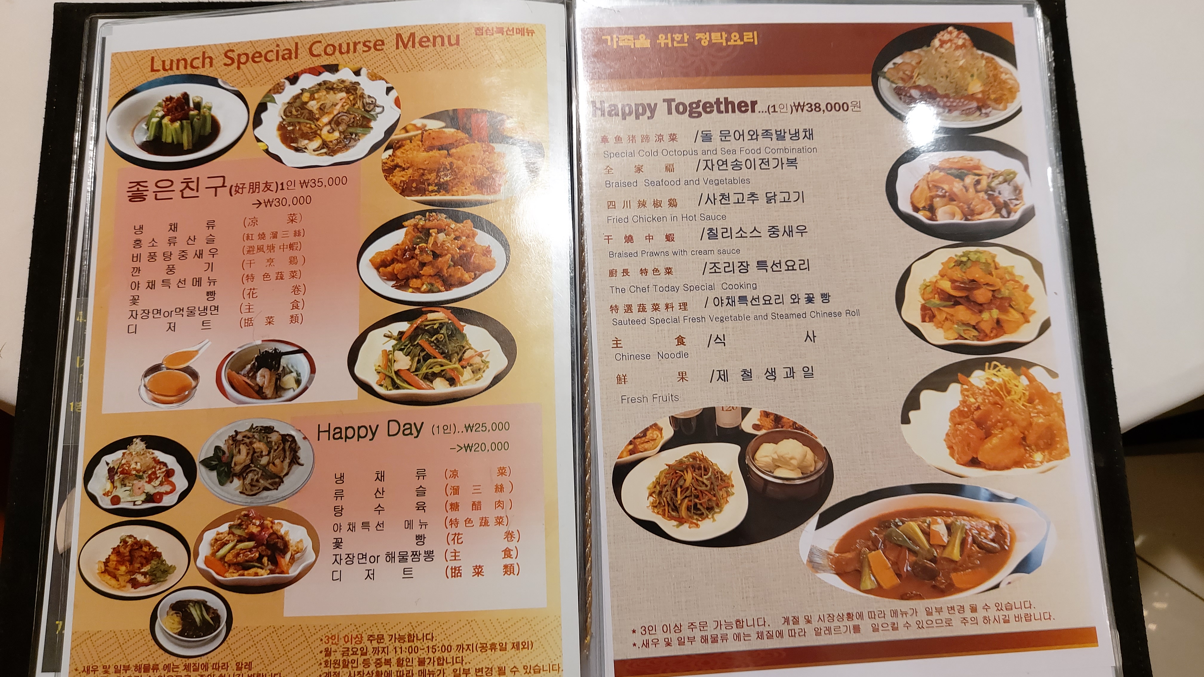 이 집은 코스요리가 비교적 좋아 보이던데 1인 38,000원인 Happy Together로 주문합니다.