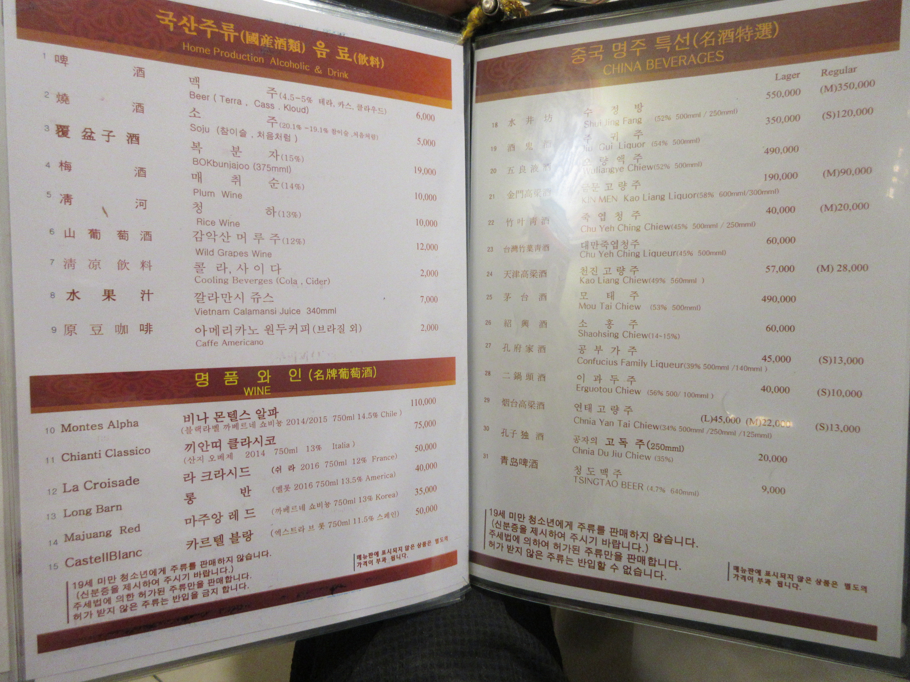 술은 연태고량주로 마십니다.
