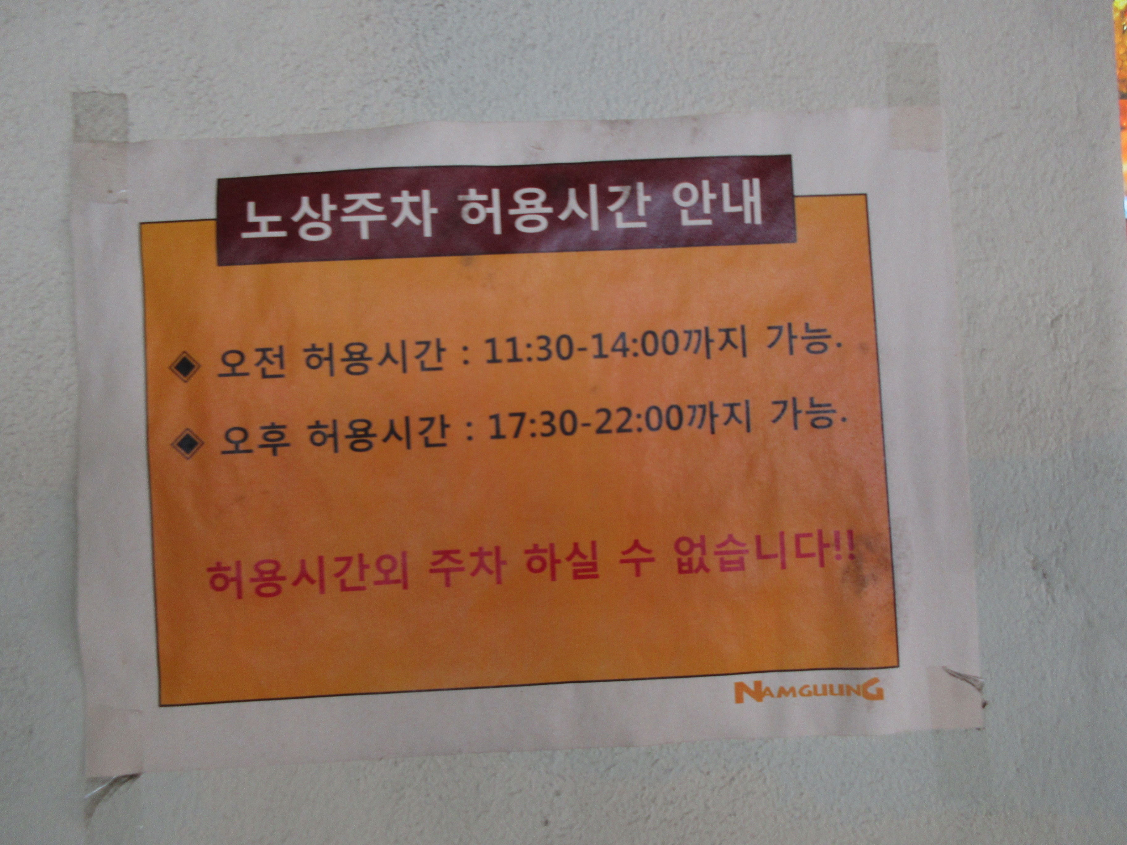 노상주차 허용 시간이 게시되어 있습니다.