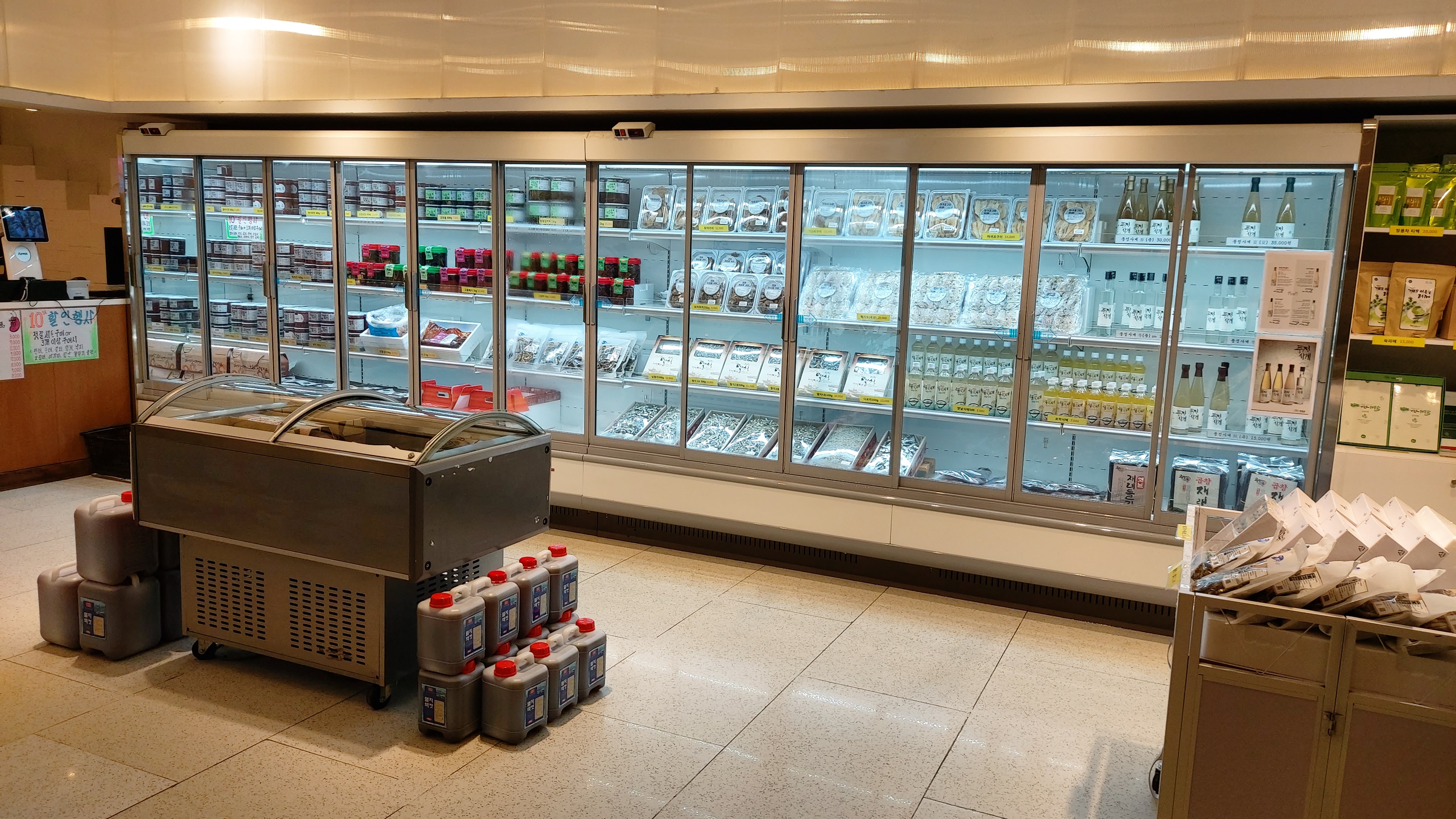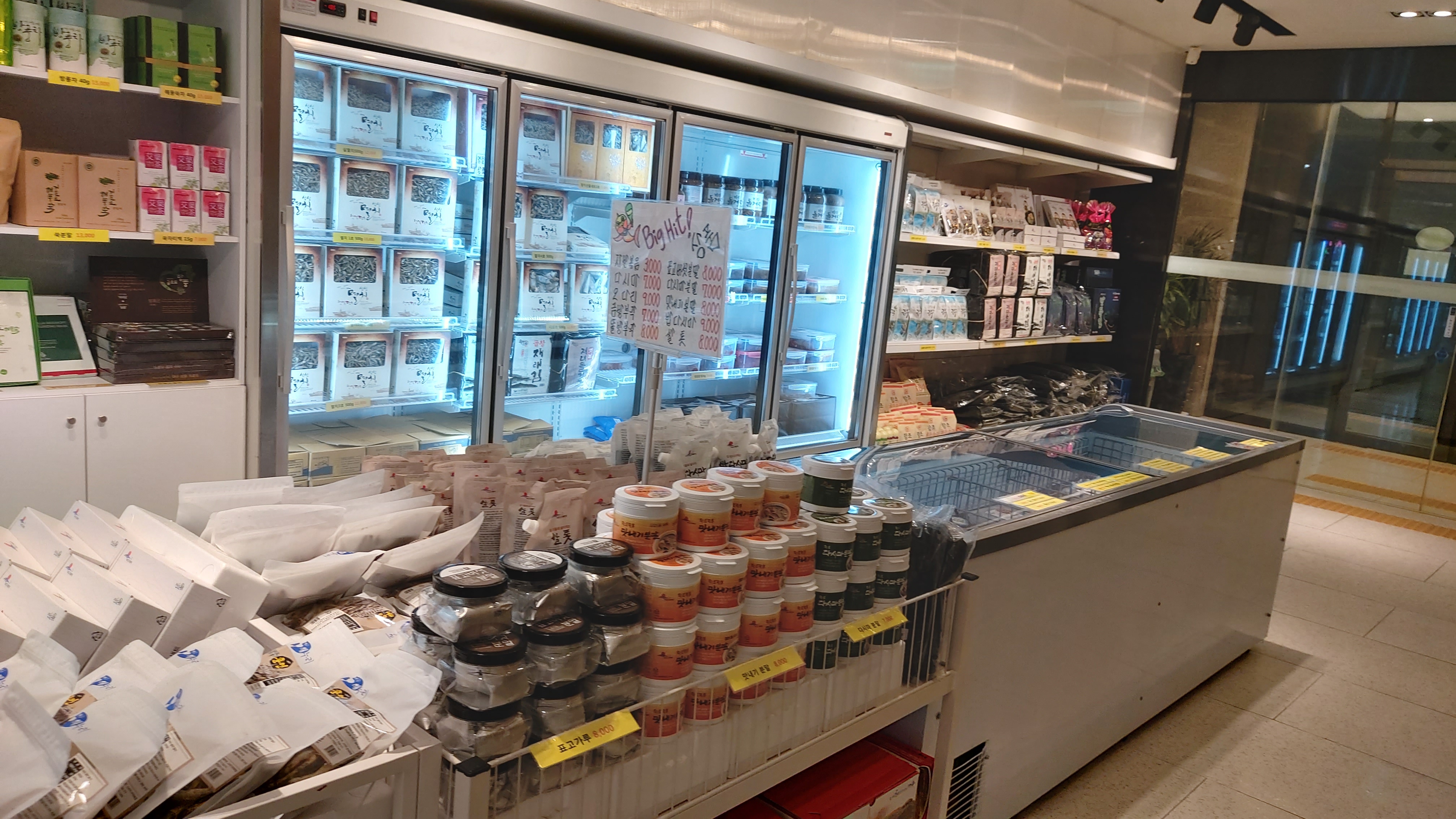 1층 현관으로 나가는 길에 게장, 젓갈 등 이 집 반찬들과 여수 특산품들을 판매하는 매장이 있습니다.