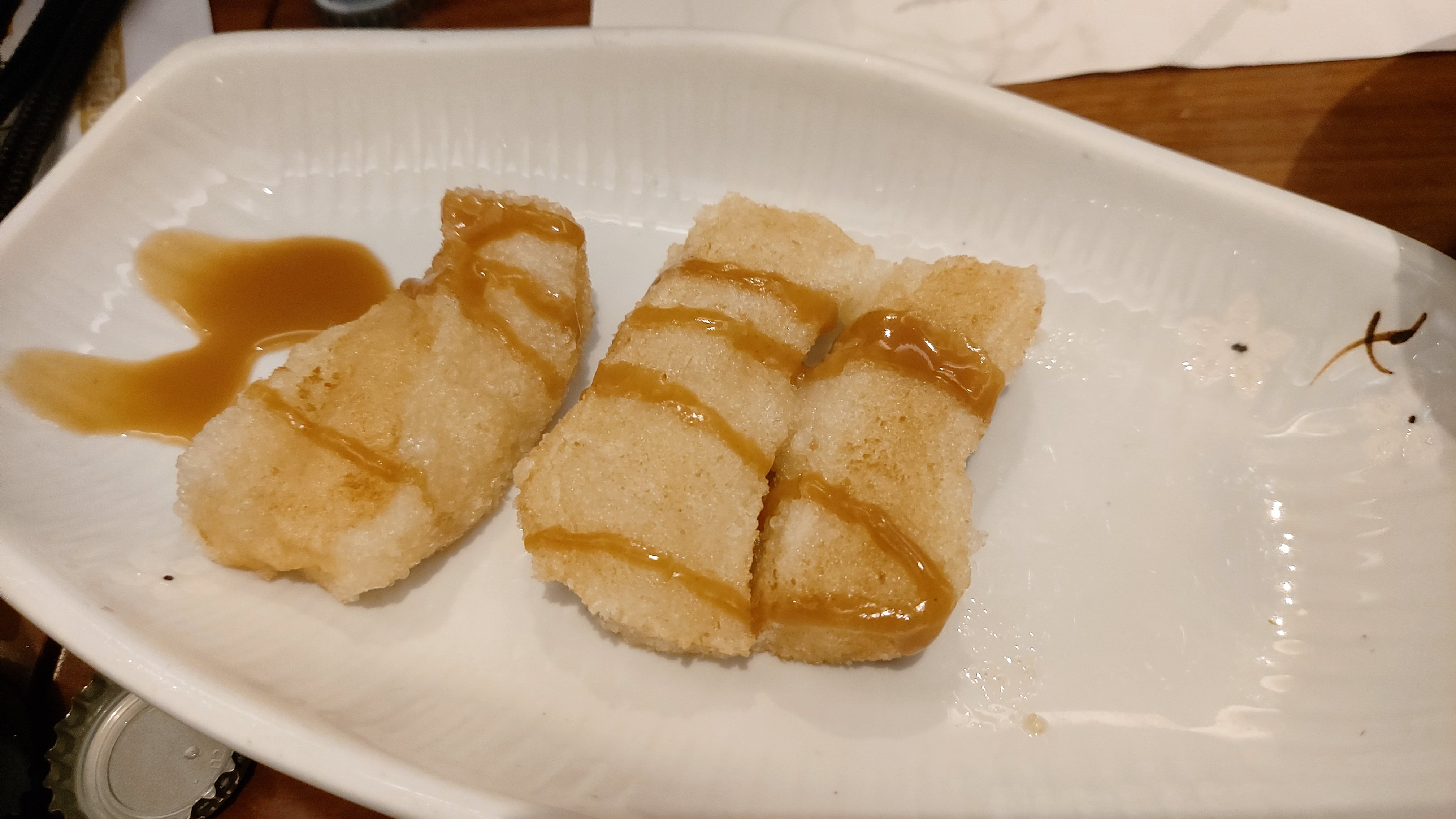 광어 미역국에 특이하게 장어와 인절미는 튀겨 왔네요.