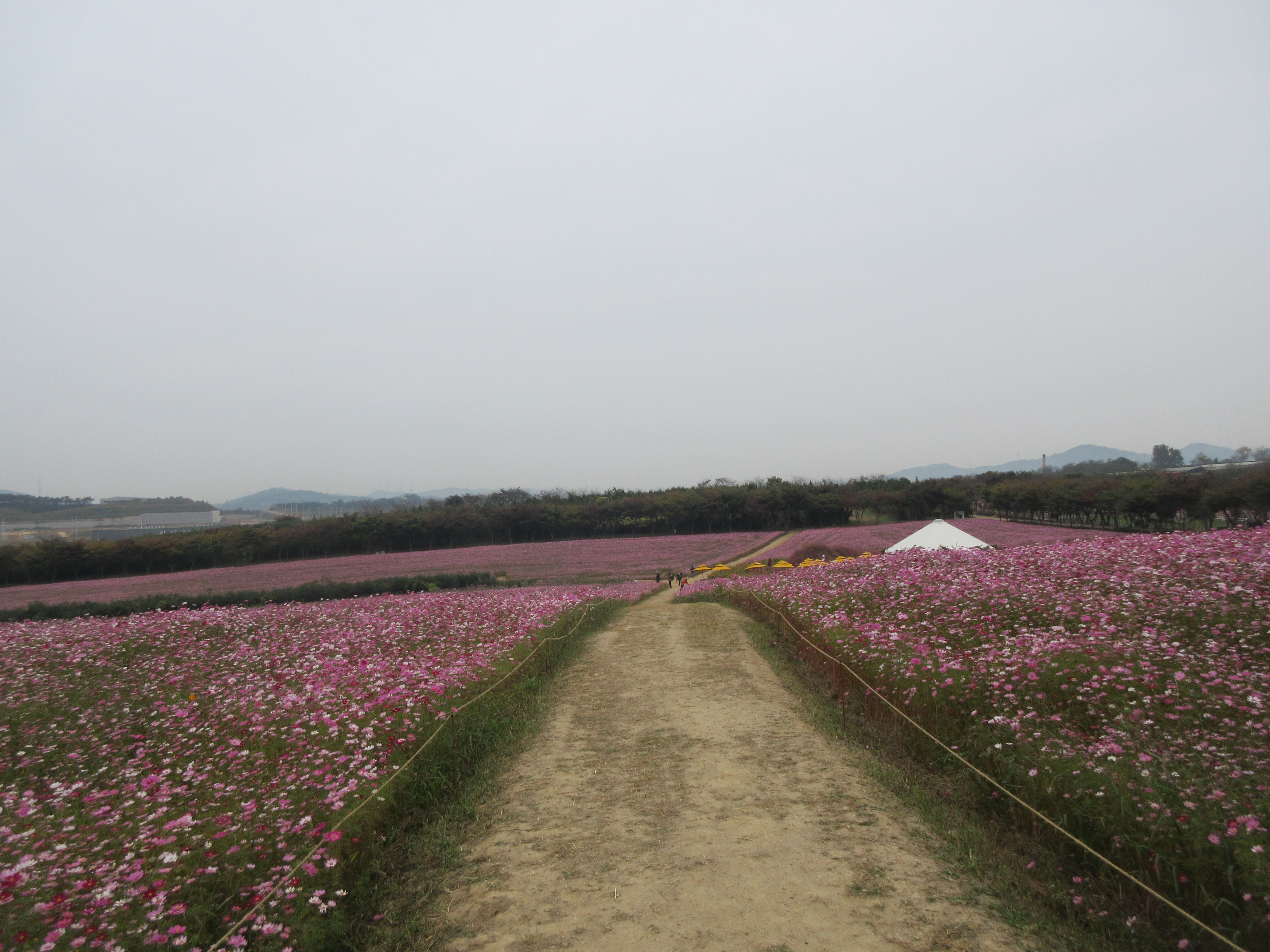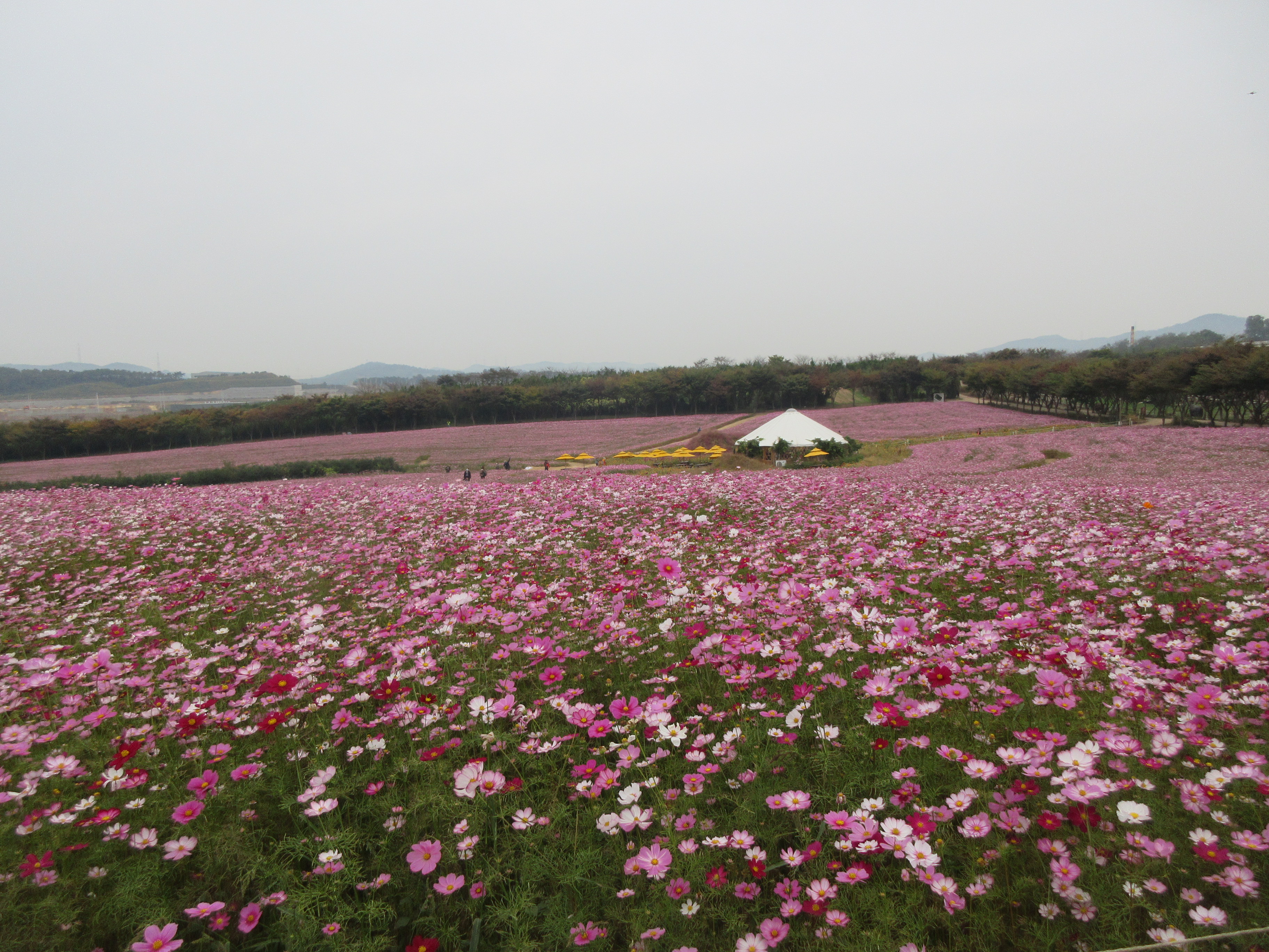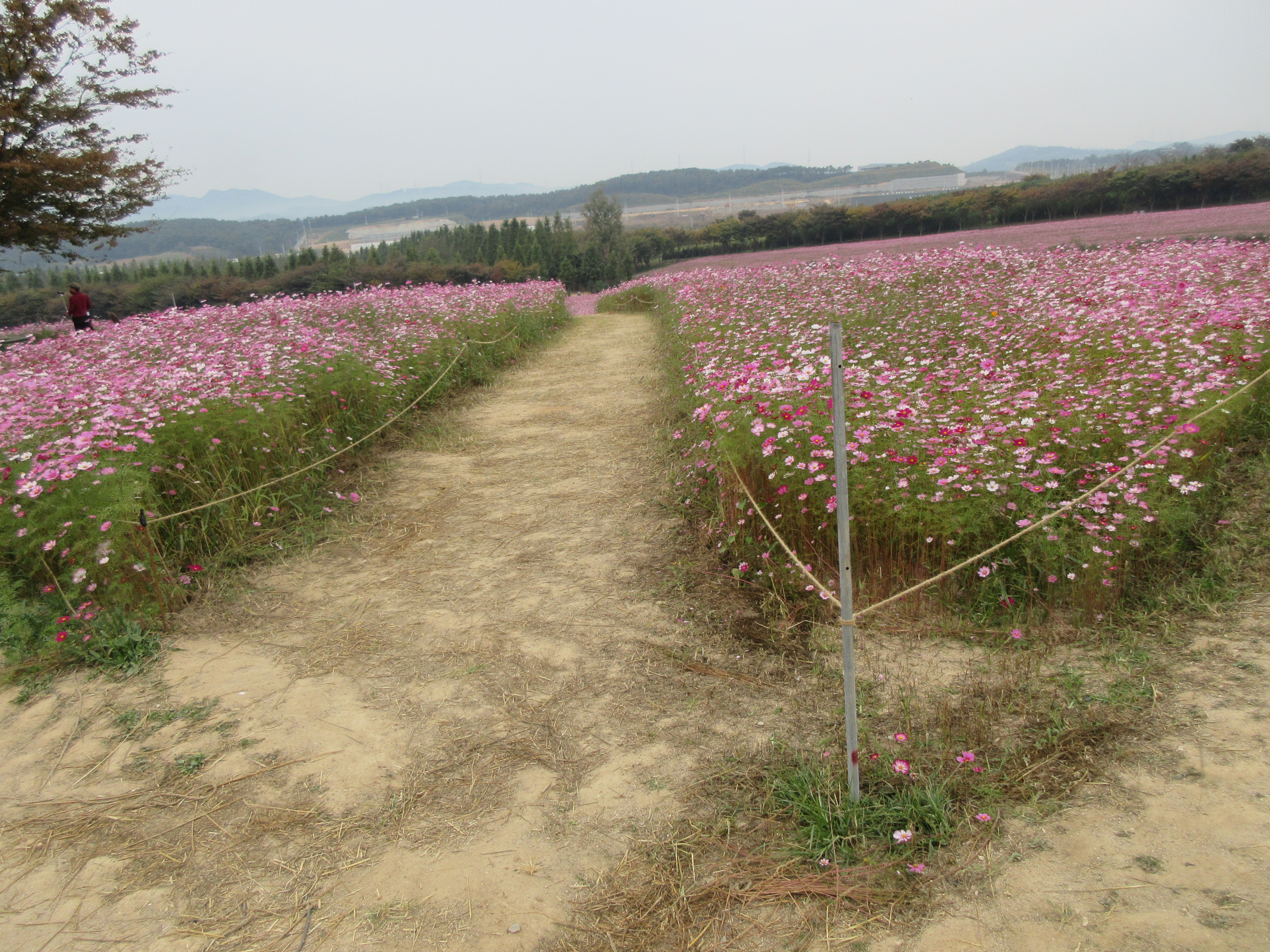 노병의 똑딱이 가지고는 한 번에 다 담을 수 없을만큼 큰, 수만 평 넓이의 코스모스 꽃밭이 눈앞에 펼쳐집니다.