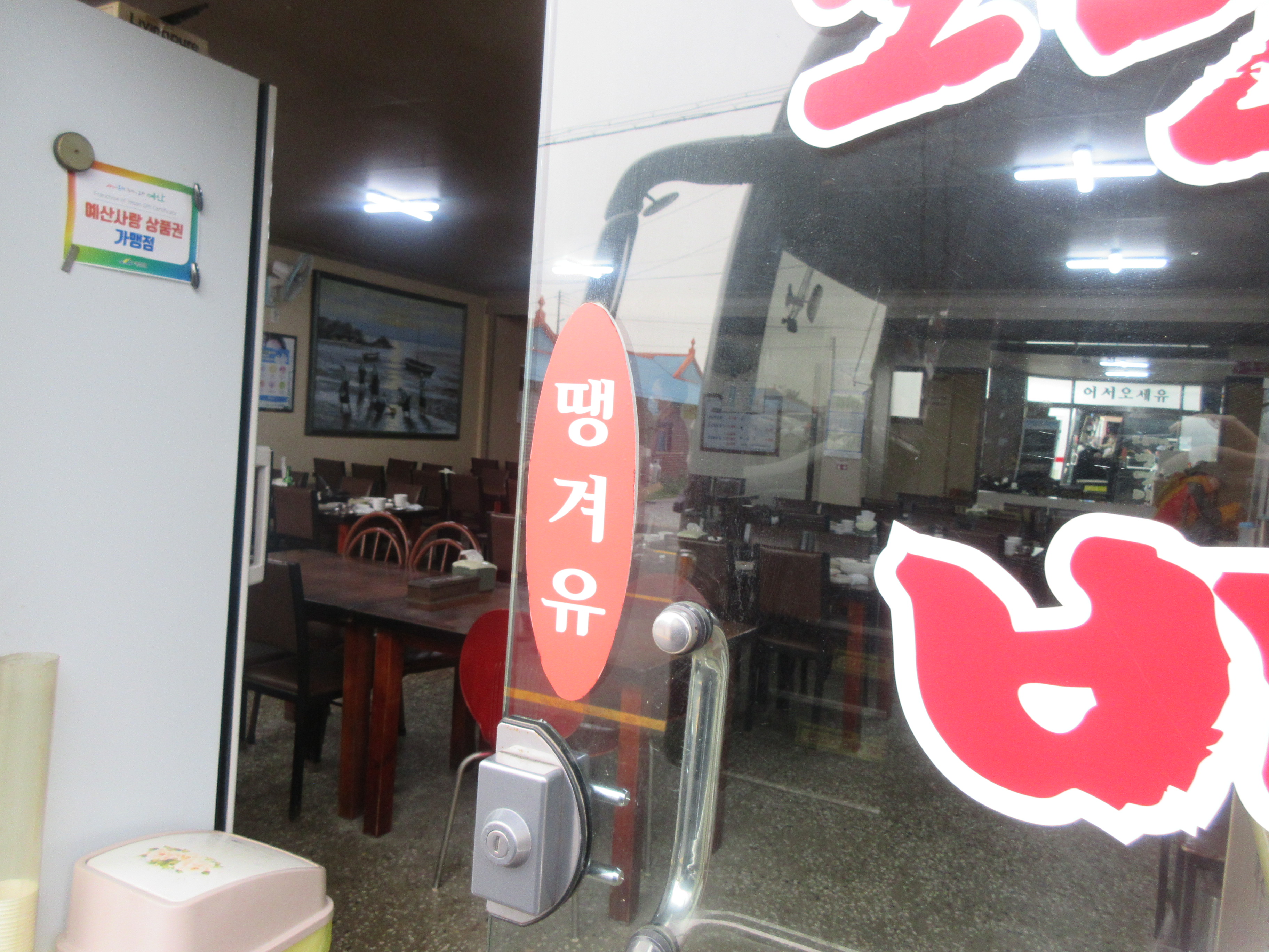 현관문에 붙어 있는 땡겨유가 여기가 충청도라는 걸 실감 나게 만들어 주는군요 ㅎㅎㅎ