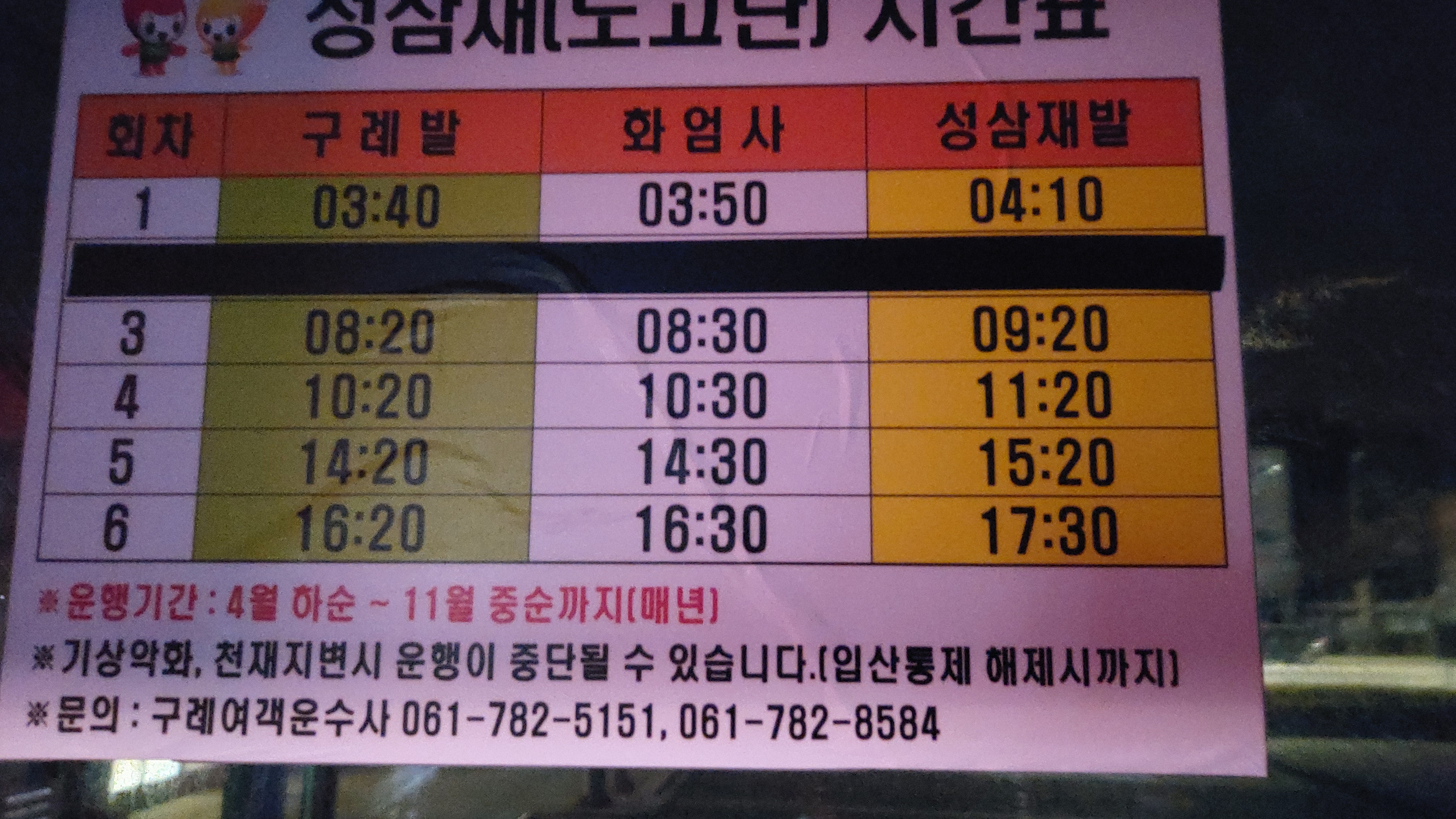 구례구역 앞에서 대기하는 시내버스를 타고 구례터미널과 화엄사를 거처 성삼재에 도착하면 오전 4시 20분경