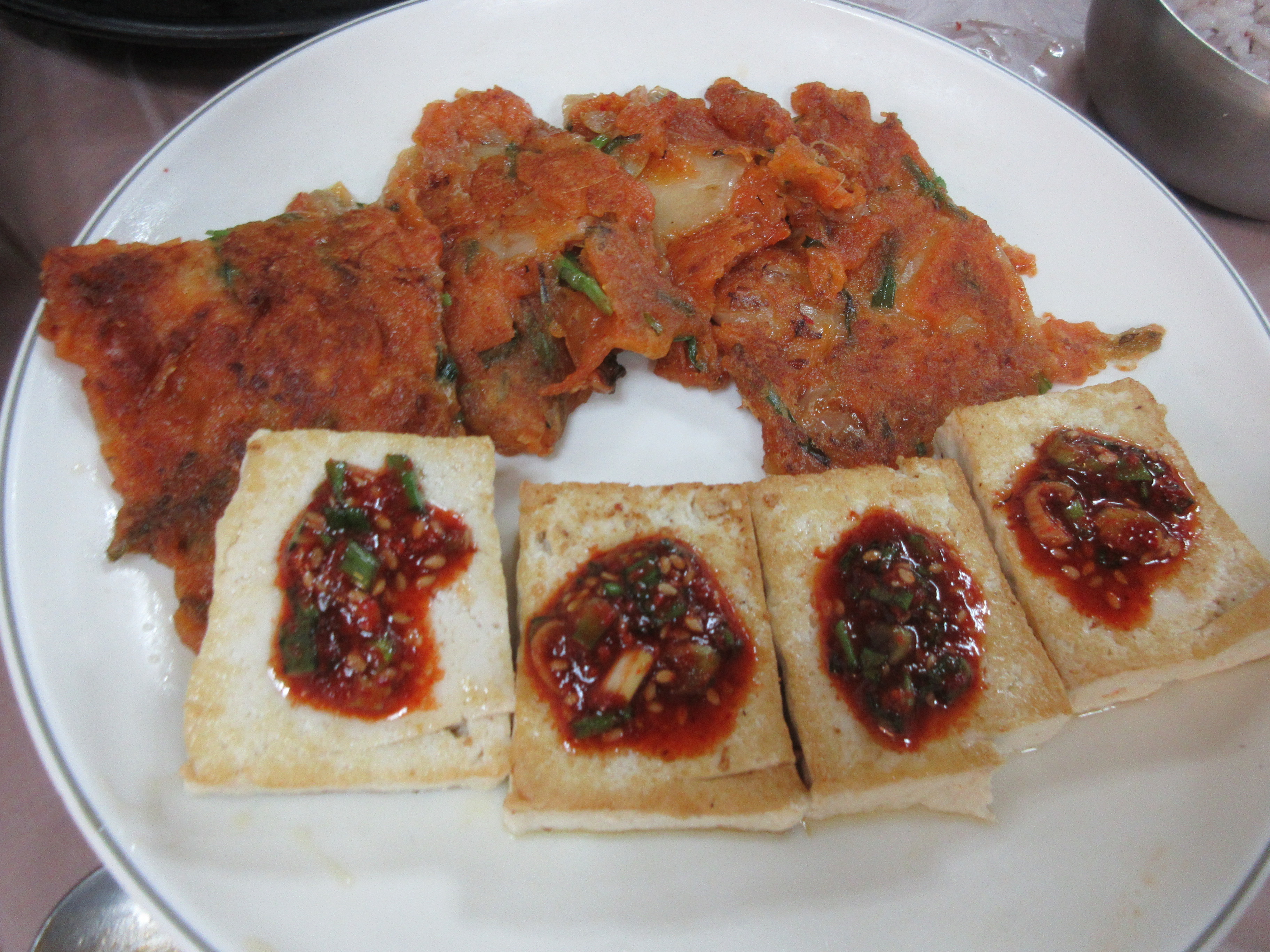 김치전과 두부부침 도토리전과 해물파전
