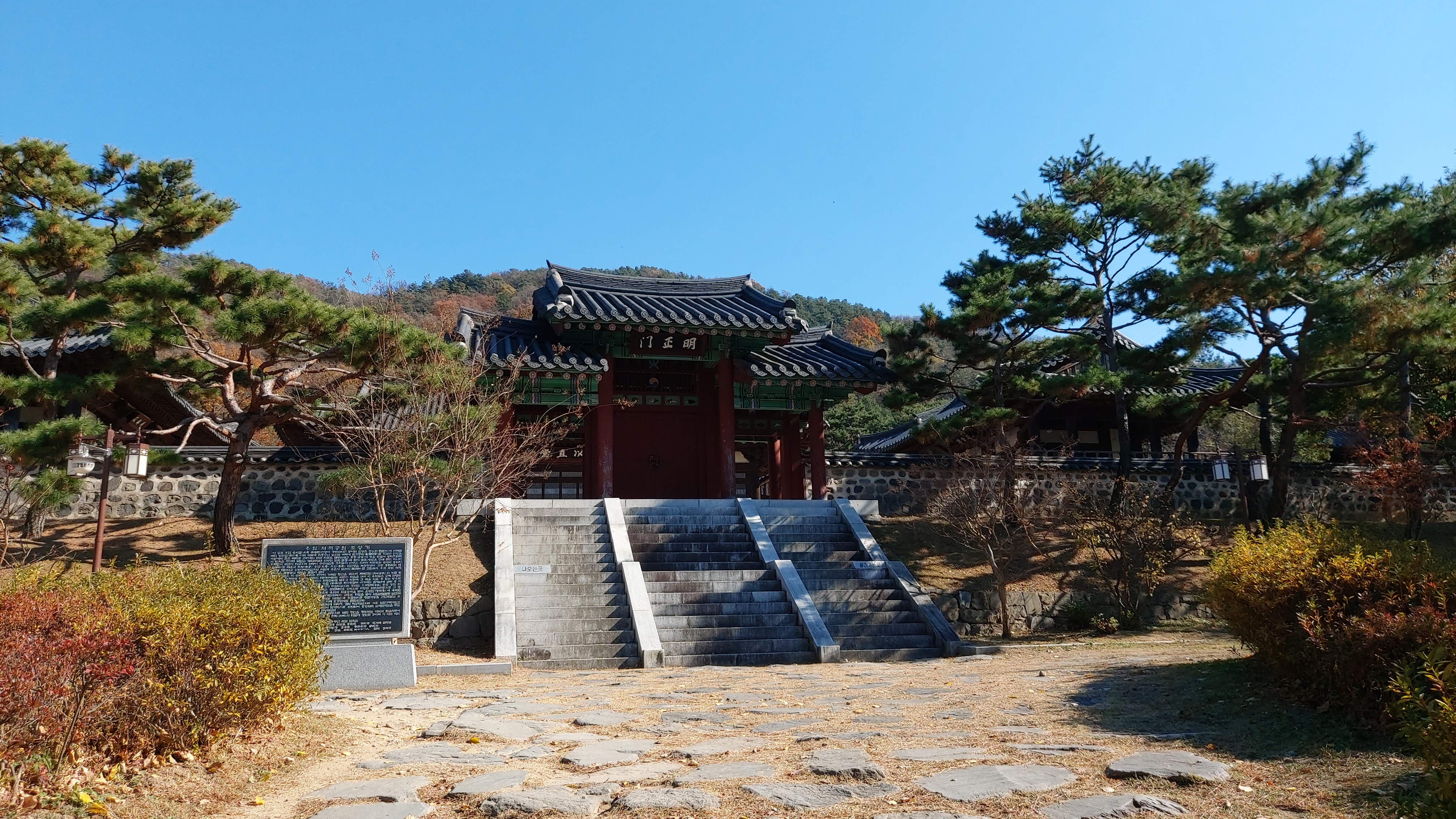 유물관 앞쪽으로 보면 조선시대의 서원 형태를 재현해 놓은 곳의 명정문(明正門)이 보입니다.