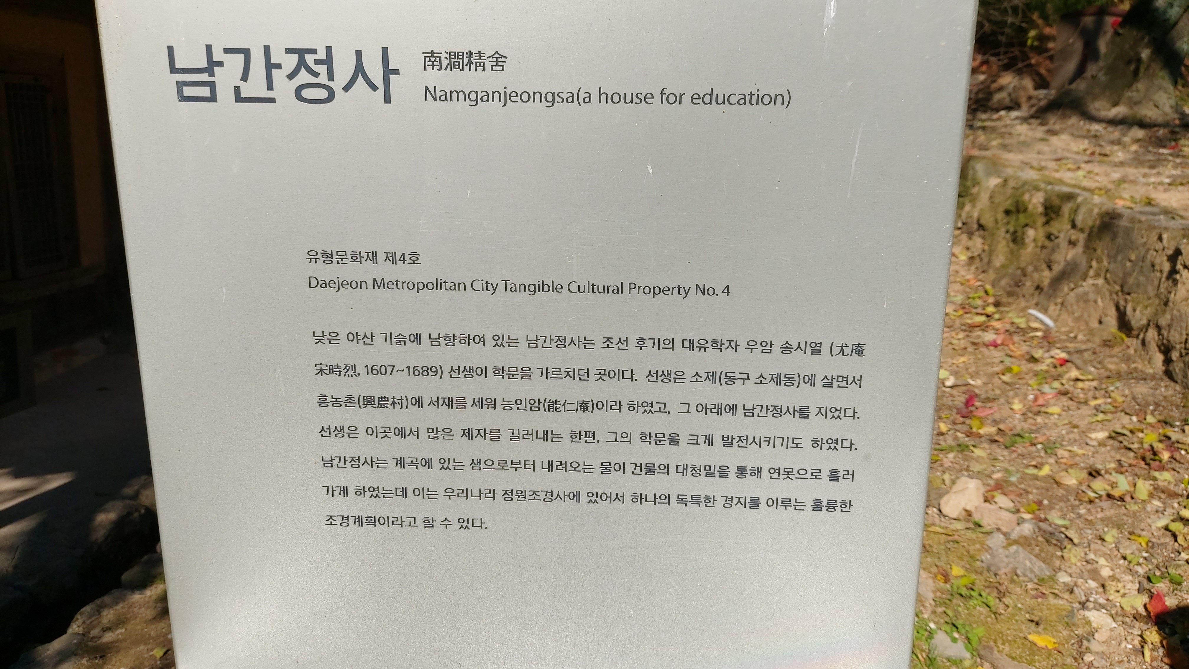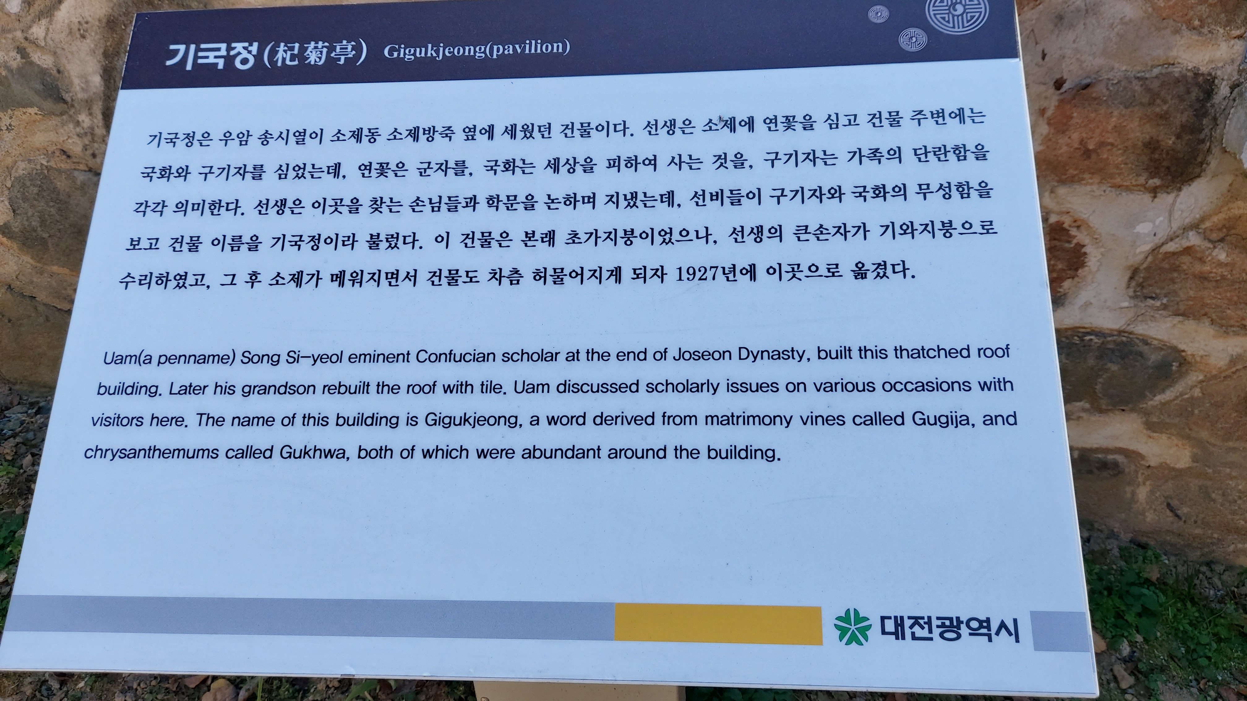 우암사적공원 정문으로 들어서면 바로 좌측에 남간정사와 기국정이 자리하고 있습니다.