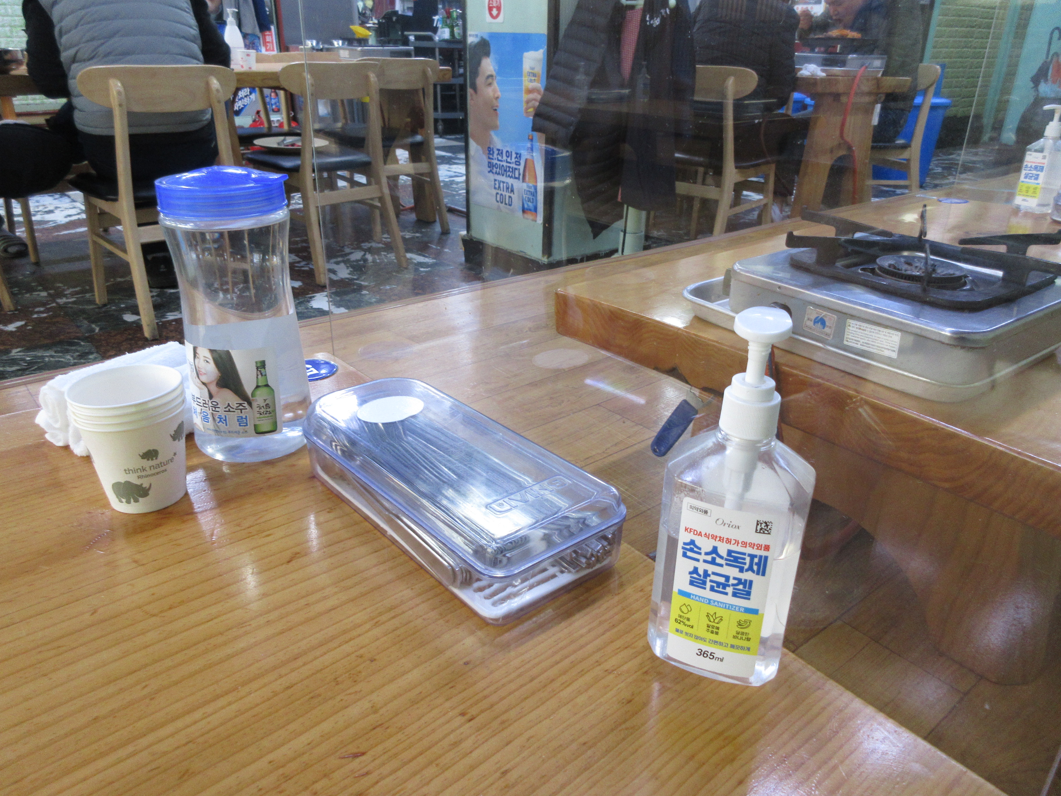 자리마다 아크릴 투명 가림막이 있고 손세정제도 있습니다.