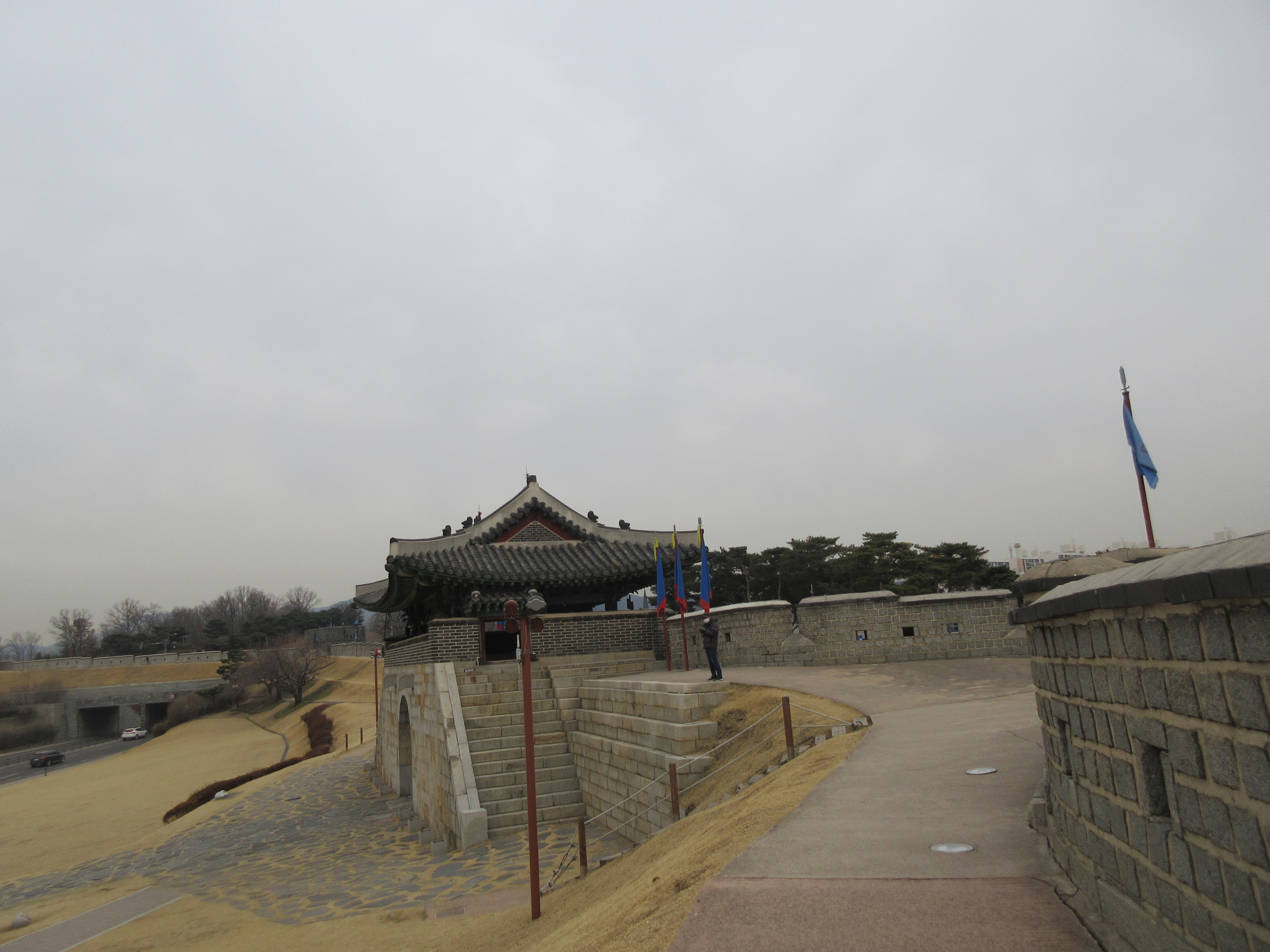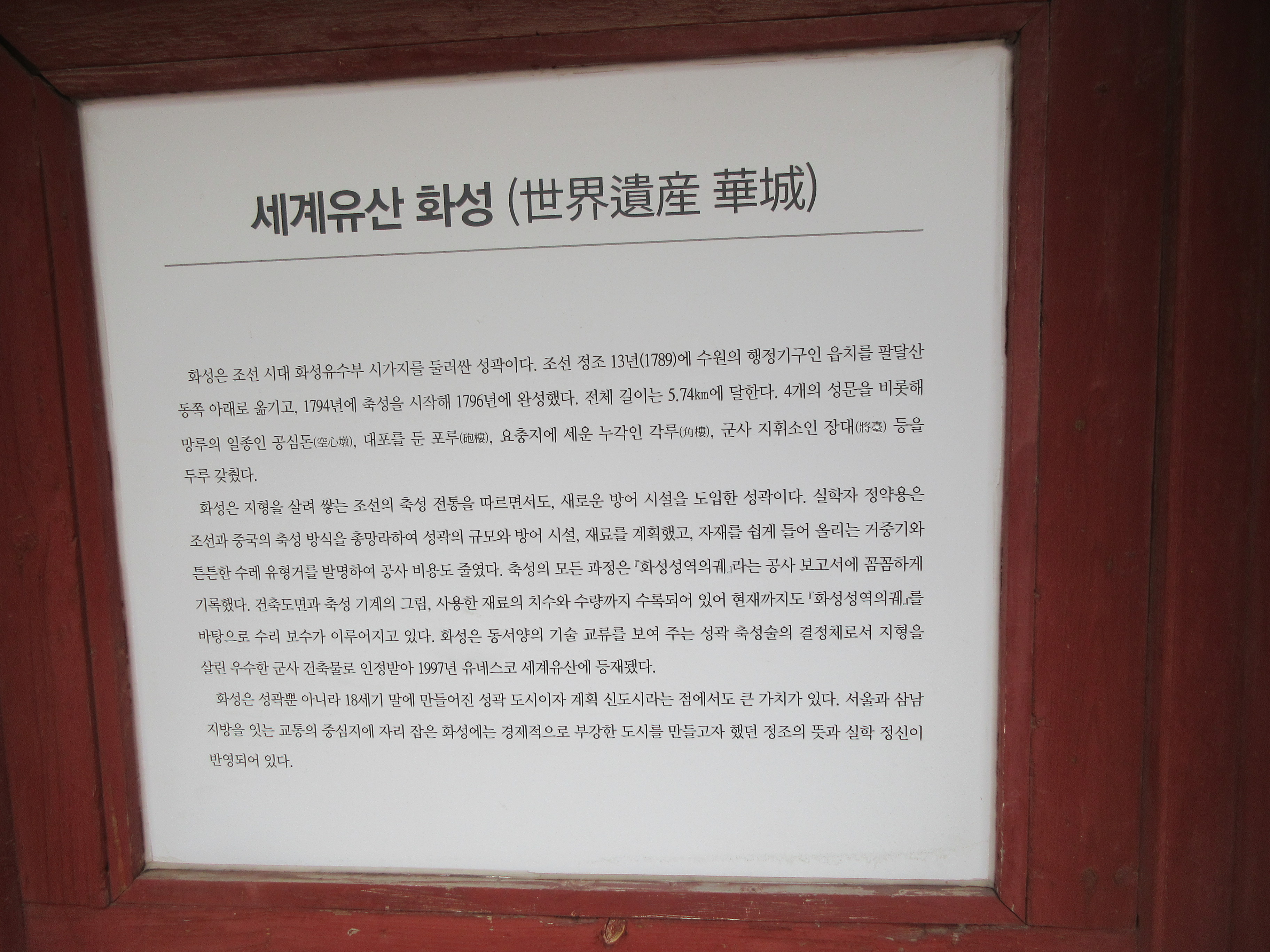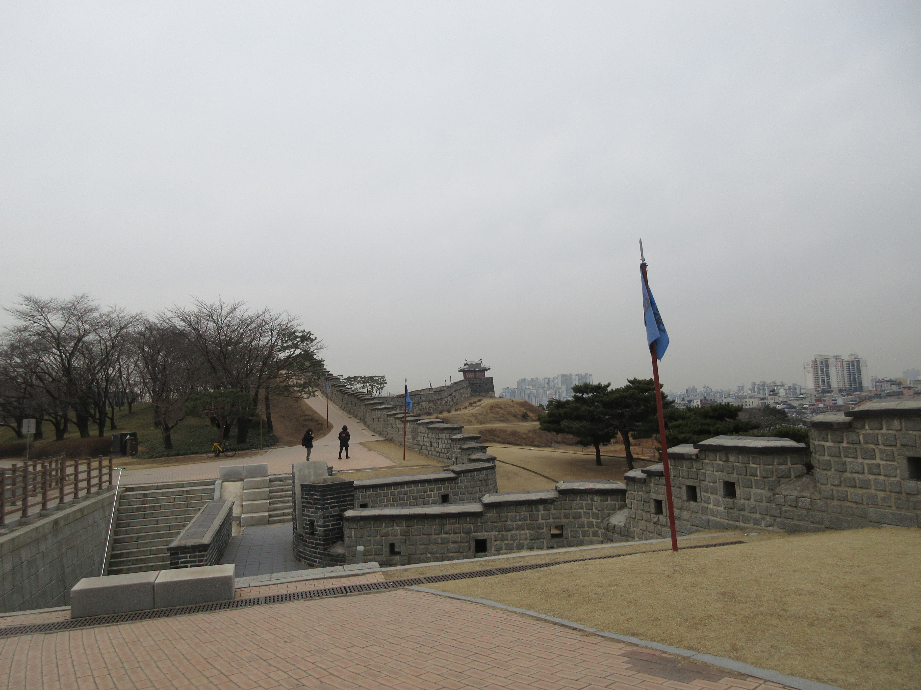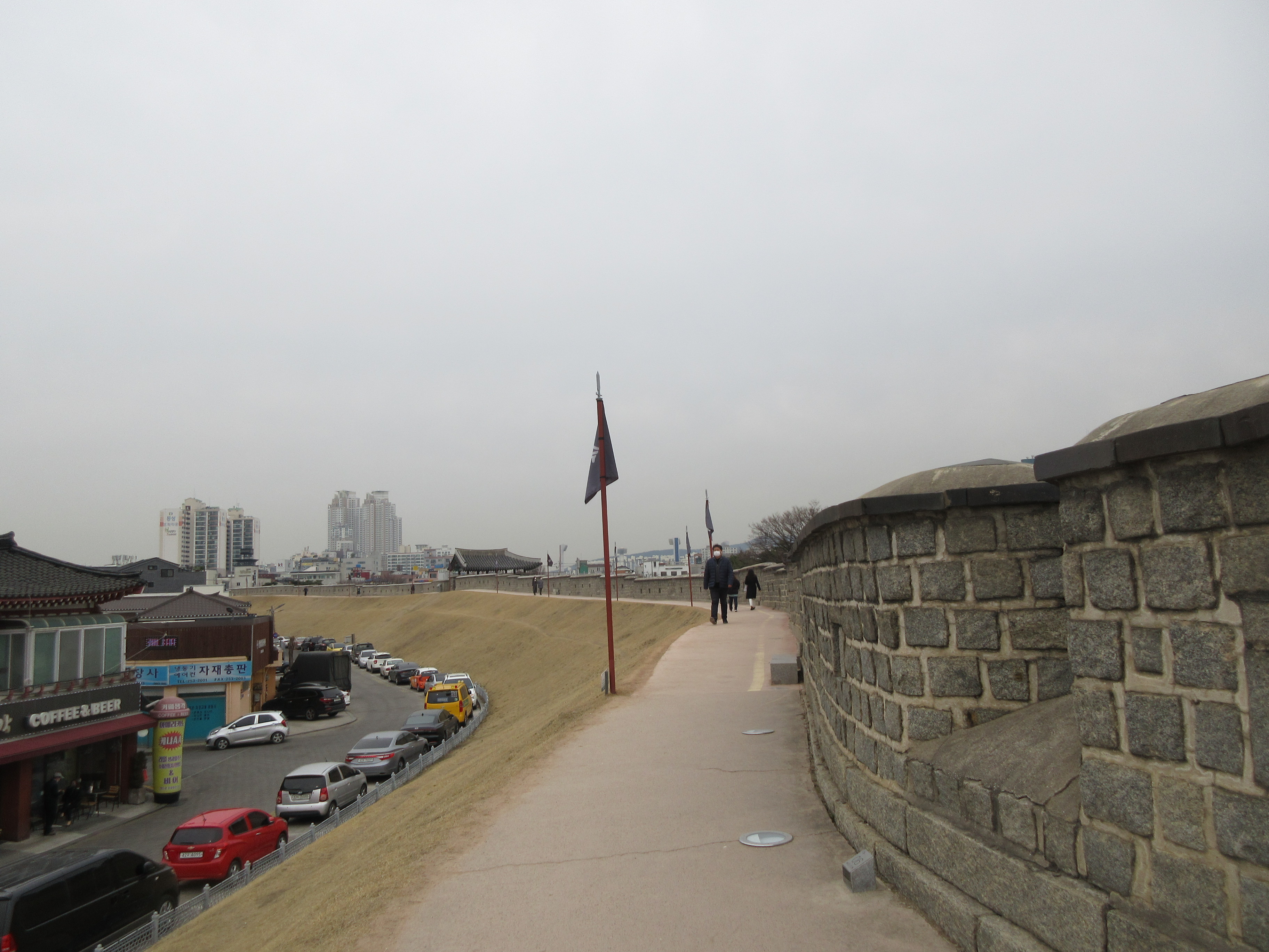 화성을 한 바퀴 도는 전체 거리는 대략 6 km 정도밖에 안되는데 팔달문을 중심으로 좌우 3~400 미터쯤이