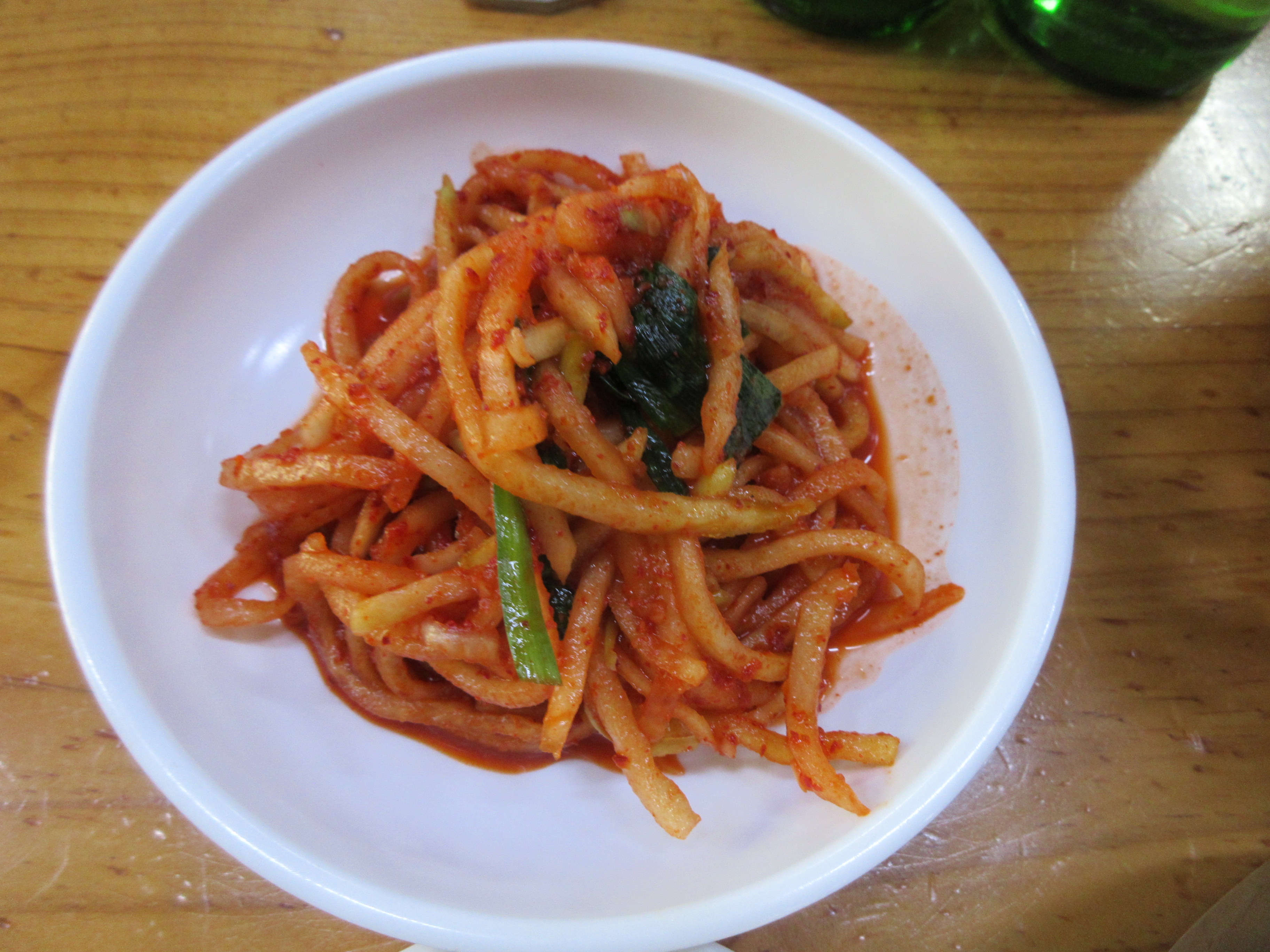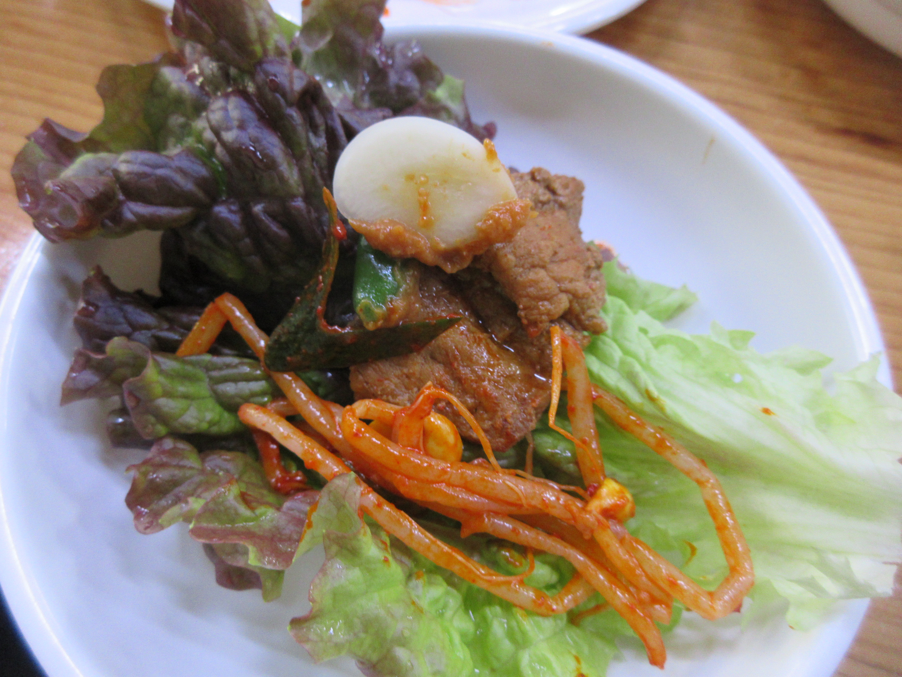 고기를 불판에 올리고 나서 밑반찬들이 나옵니다.