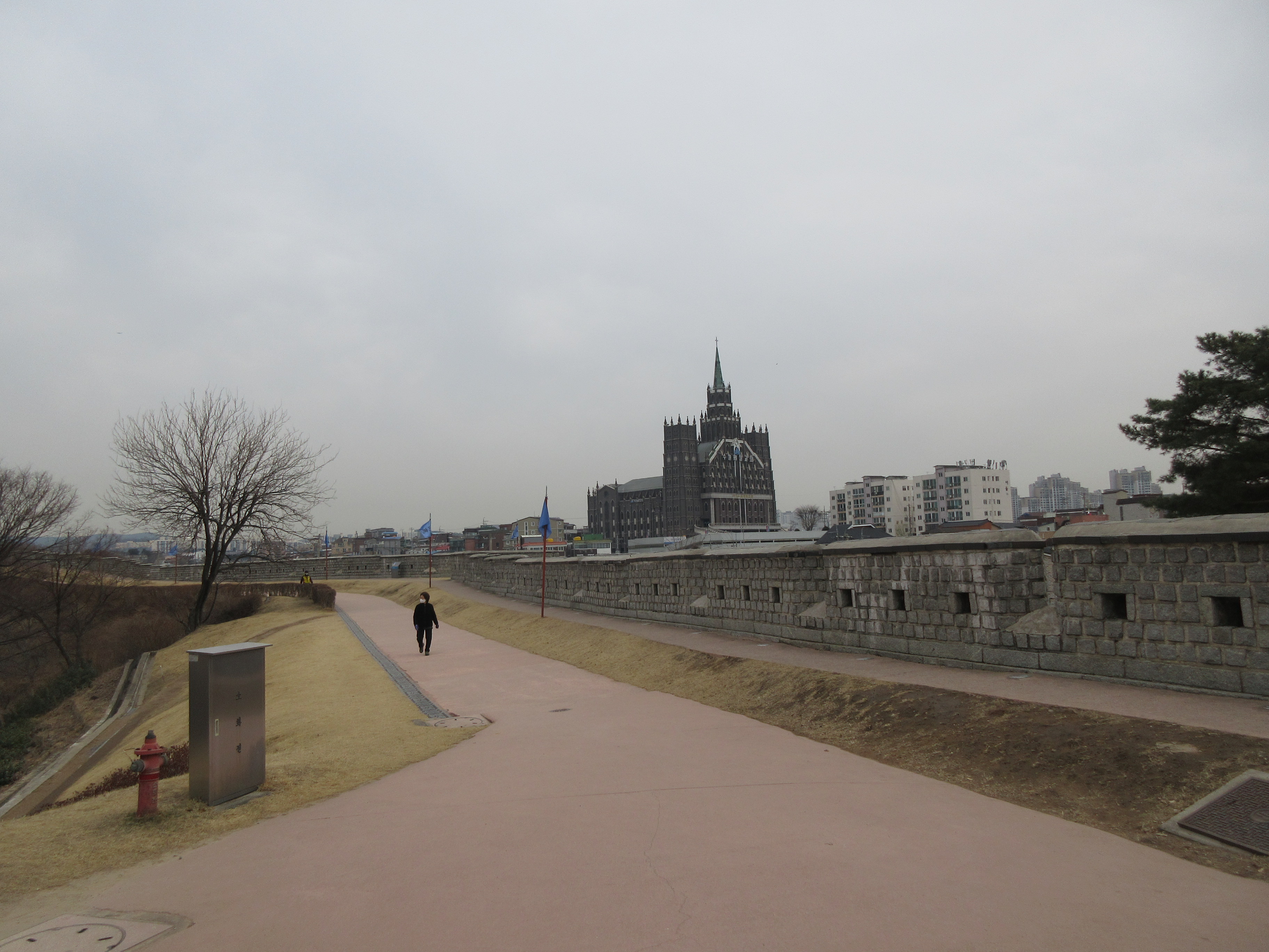 동남각루를 지나면 바로 우측에 수원 제일교회의 웅장한 모습이 보입니다.