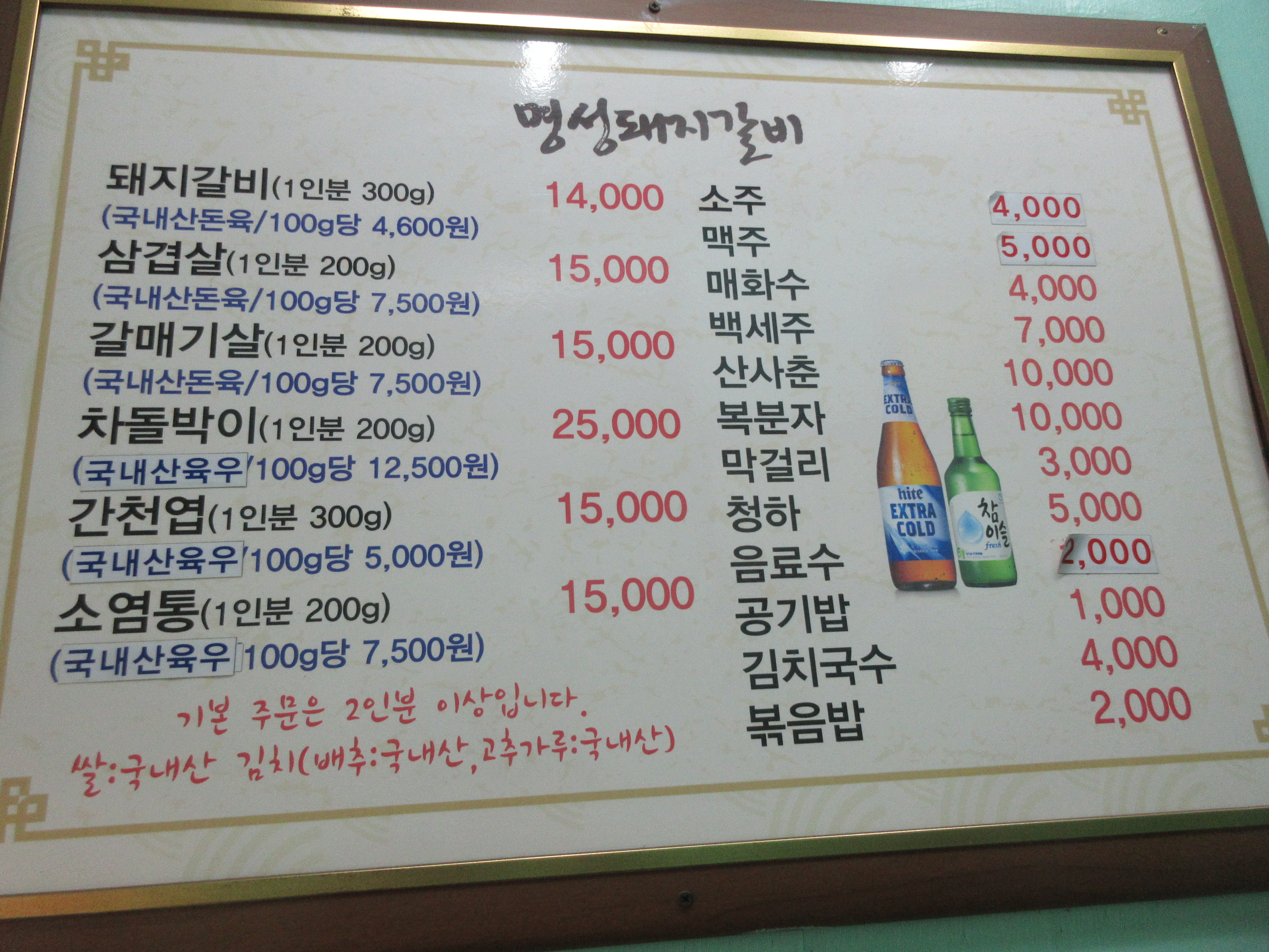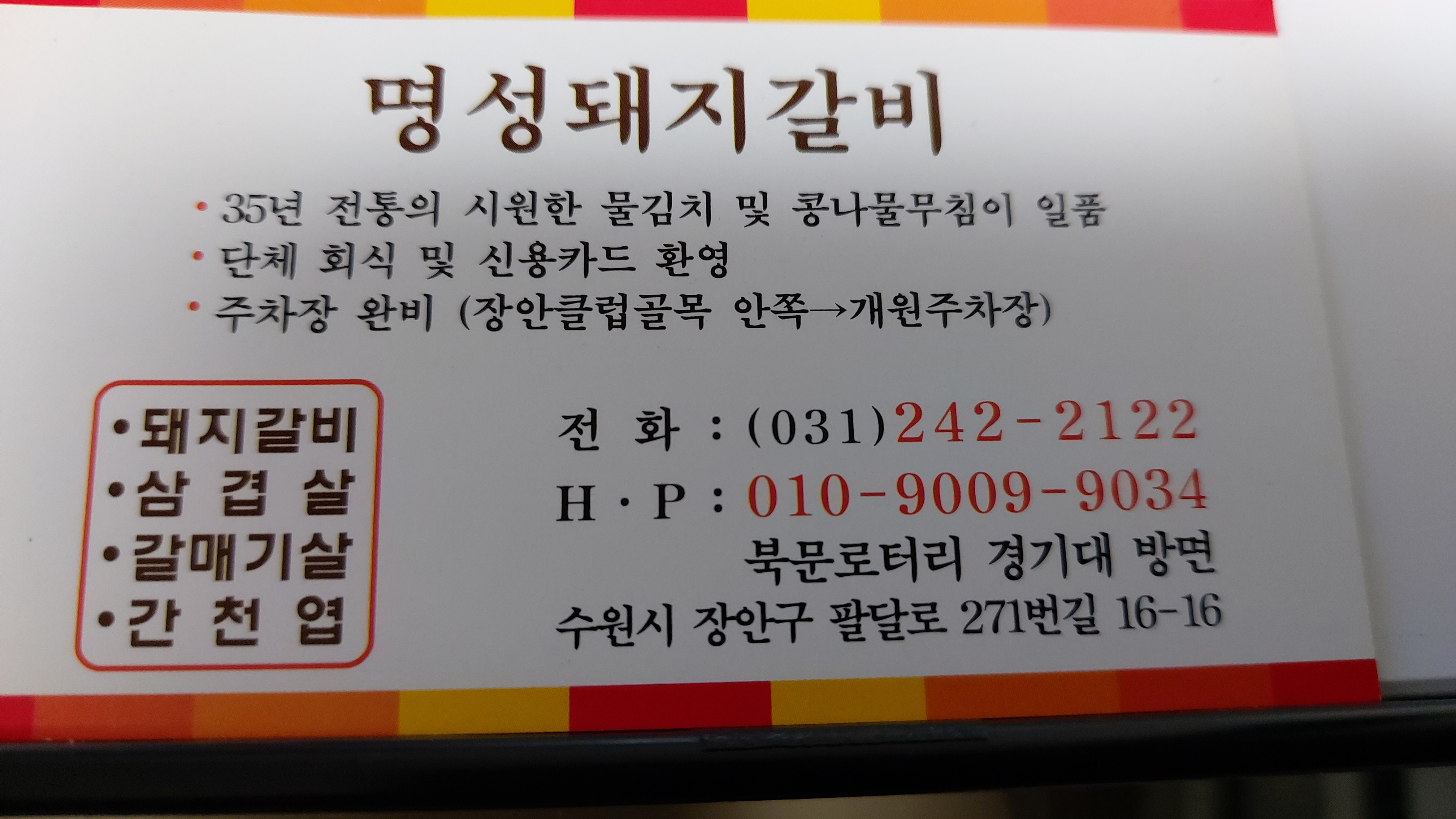 소개된 돼지 물갈비로 유명한 수원 북문(장안문)의 명성돼지갈비입니다.