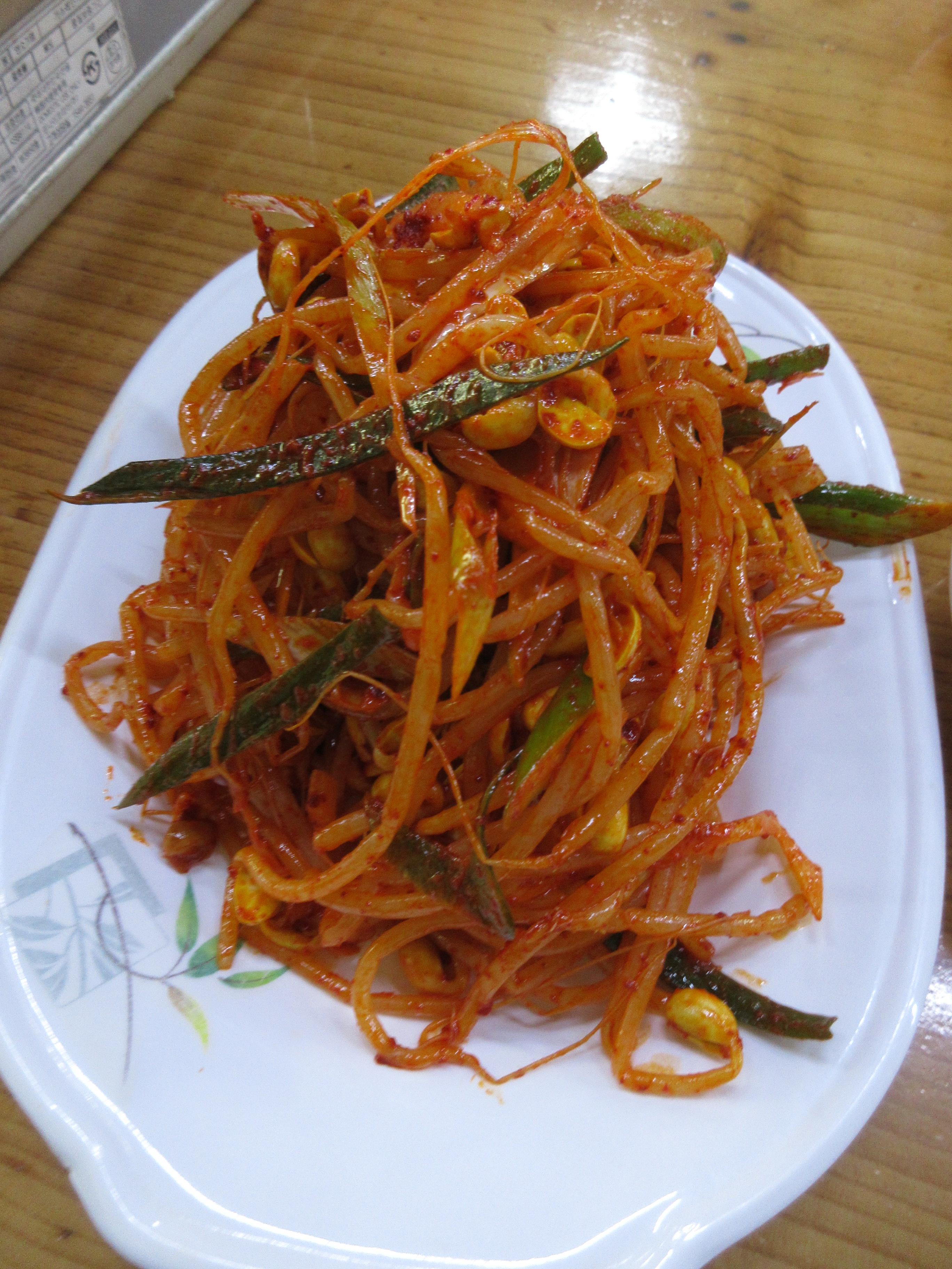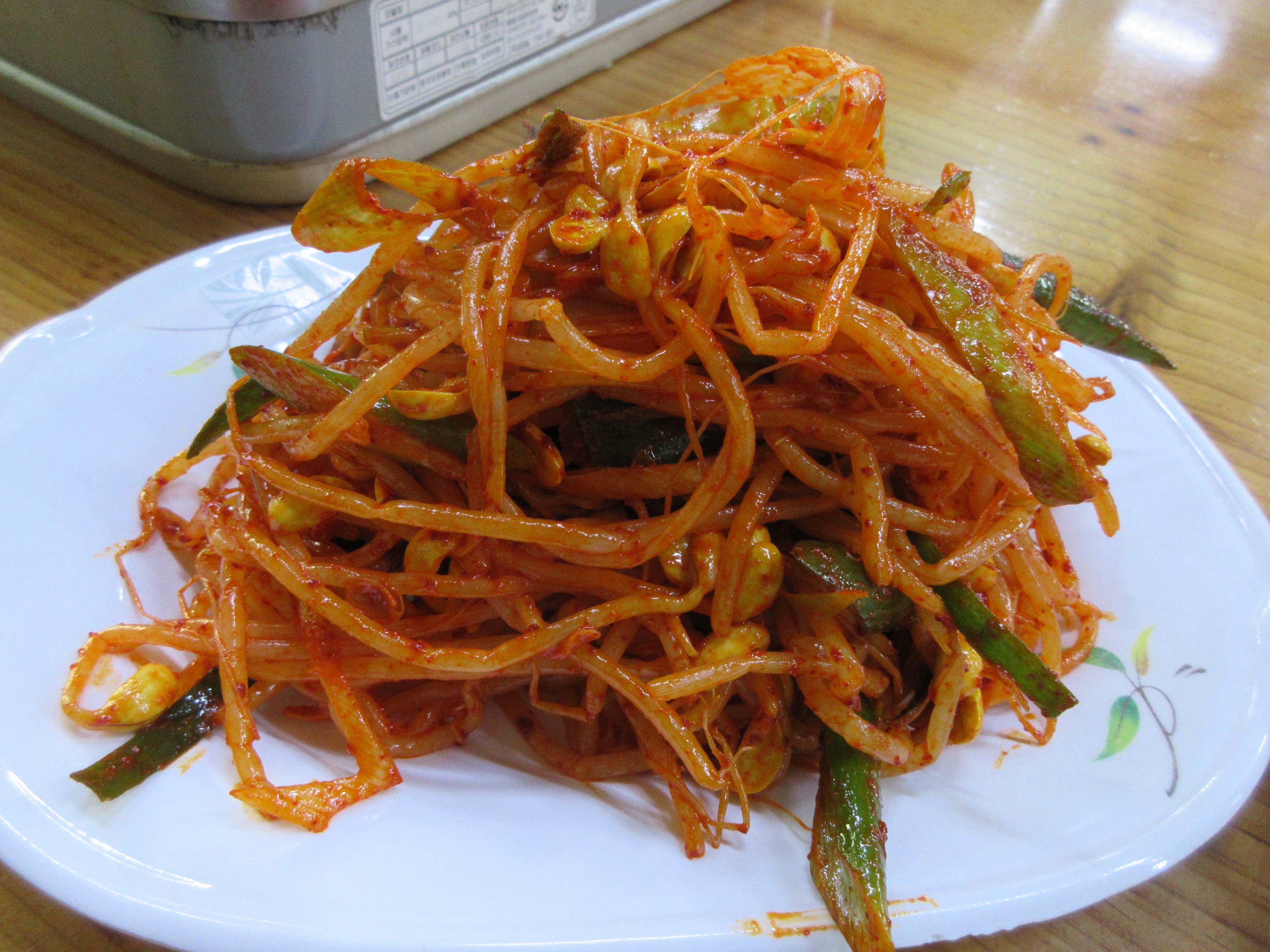 이 콩나물 무침은 반찬용이 아니고 돼지갈비를 구울 때 갈비와 함께 굽기용입니다.