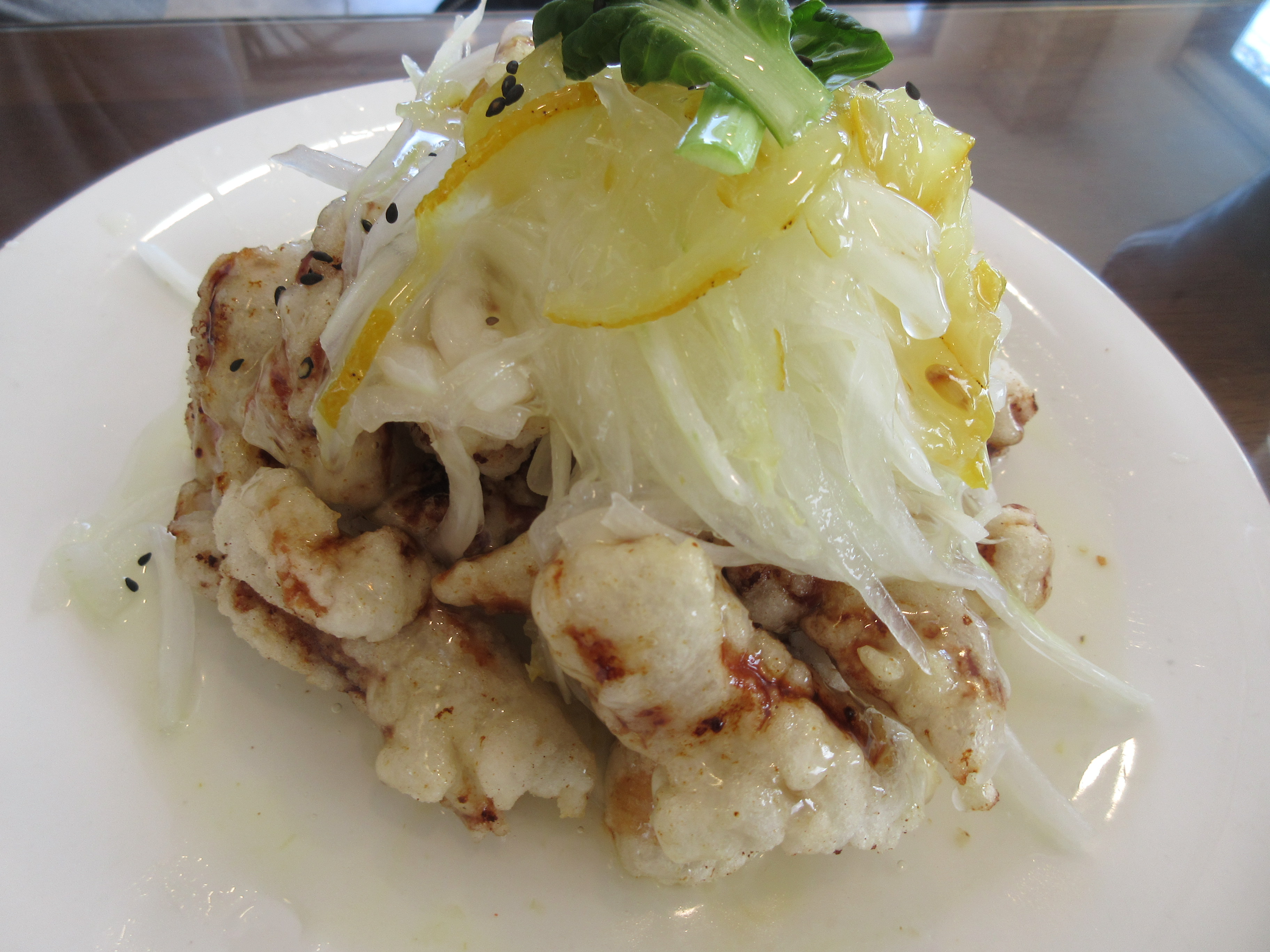 맑은 소스가 마음에 들고 유자와 양파가 곁들여진 역시 퓨전 스타일의 탕수육이로군요.