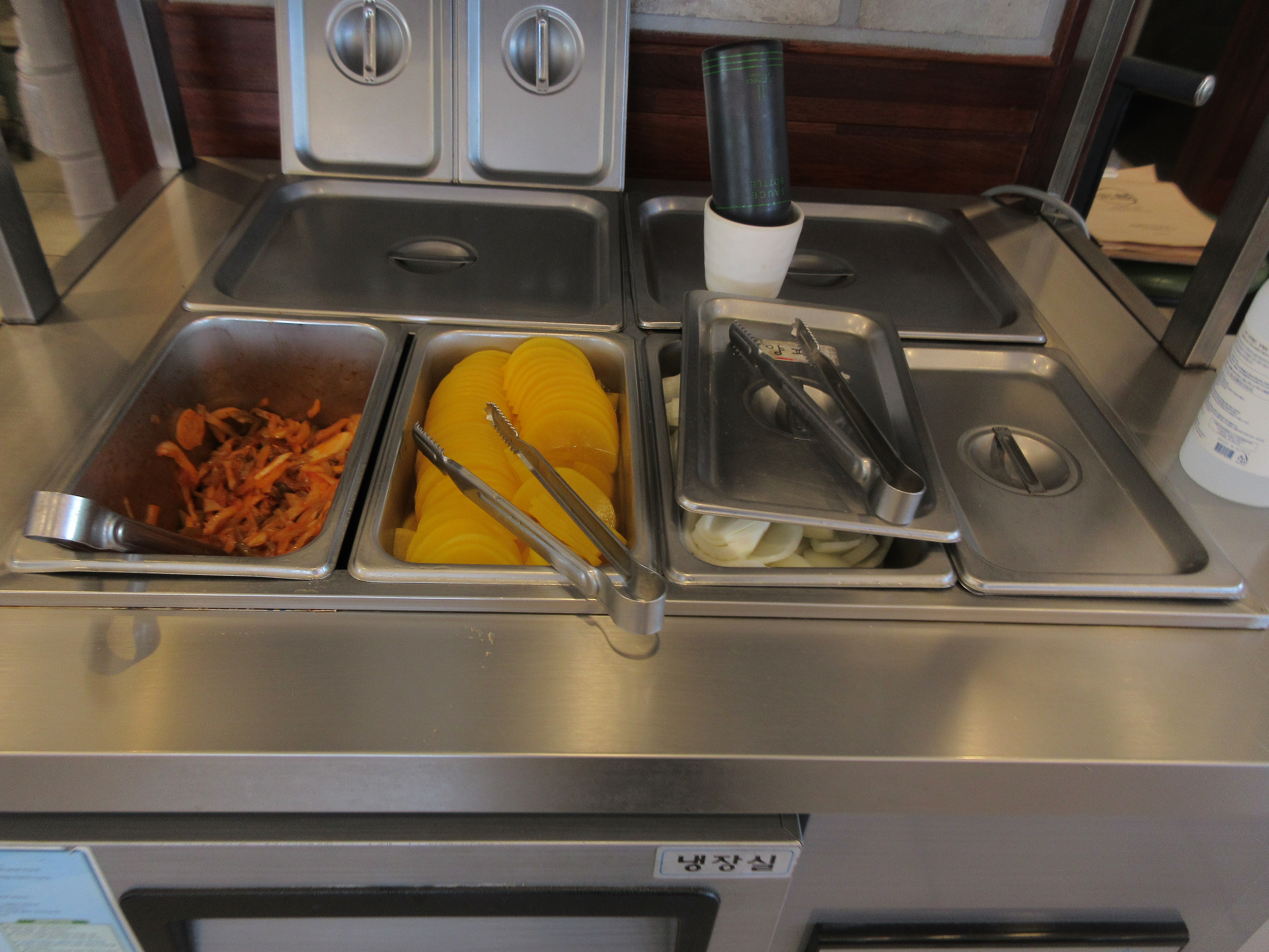 자차이와 단무지만 있는 줄 알았더니 리필 반찬을 가지러 가 보니 양파도 있더군요.