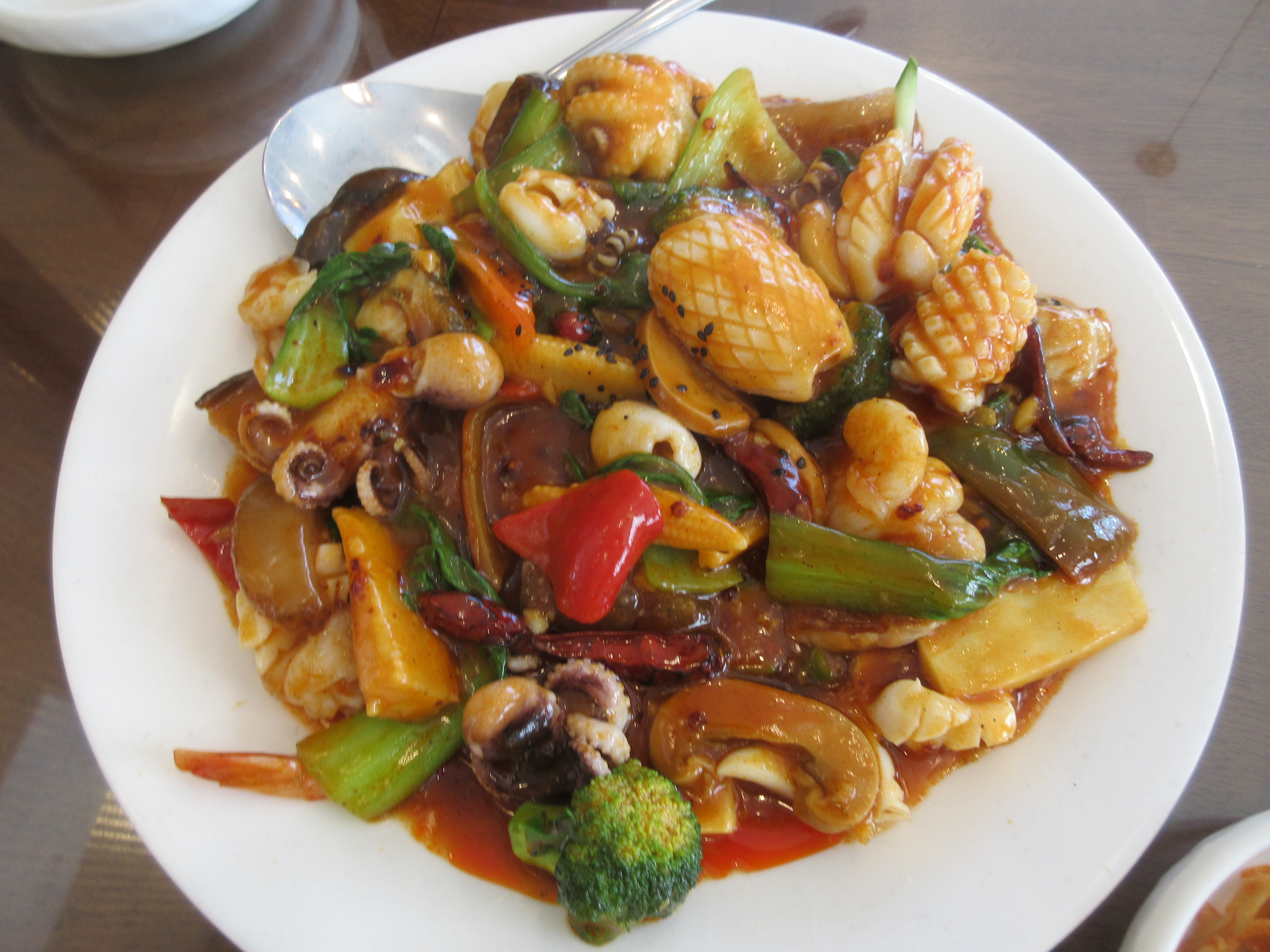 맛이 없는 것은 아니지만 기존의 팔보채에 길들여진 노병에게는 매콤한 해물볶음으로 보입니다.
