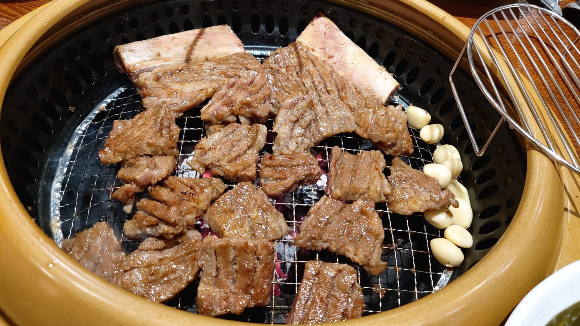 아무래도 기름기가 많고 양념이 되어 있어 소갈비보다는 잘 타는 편입니다.