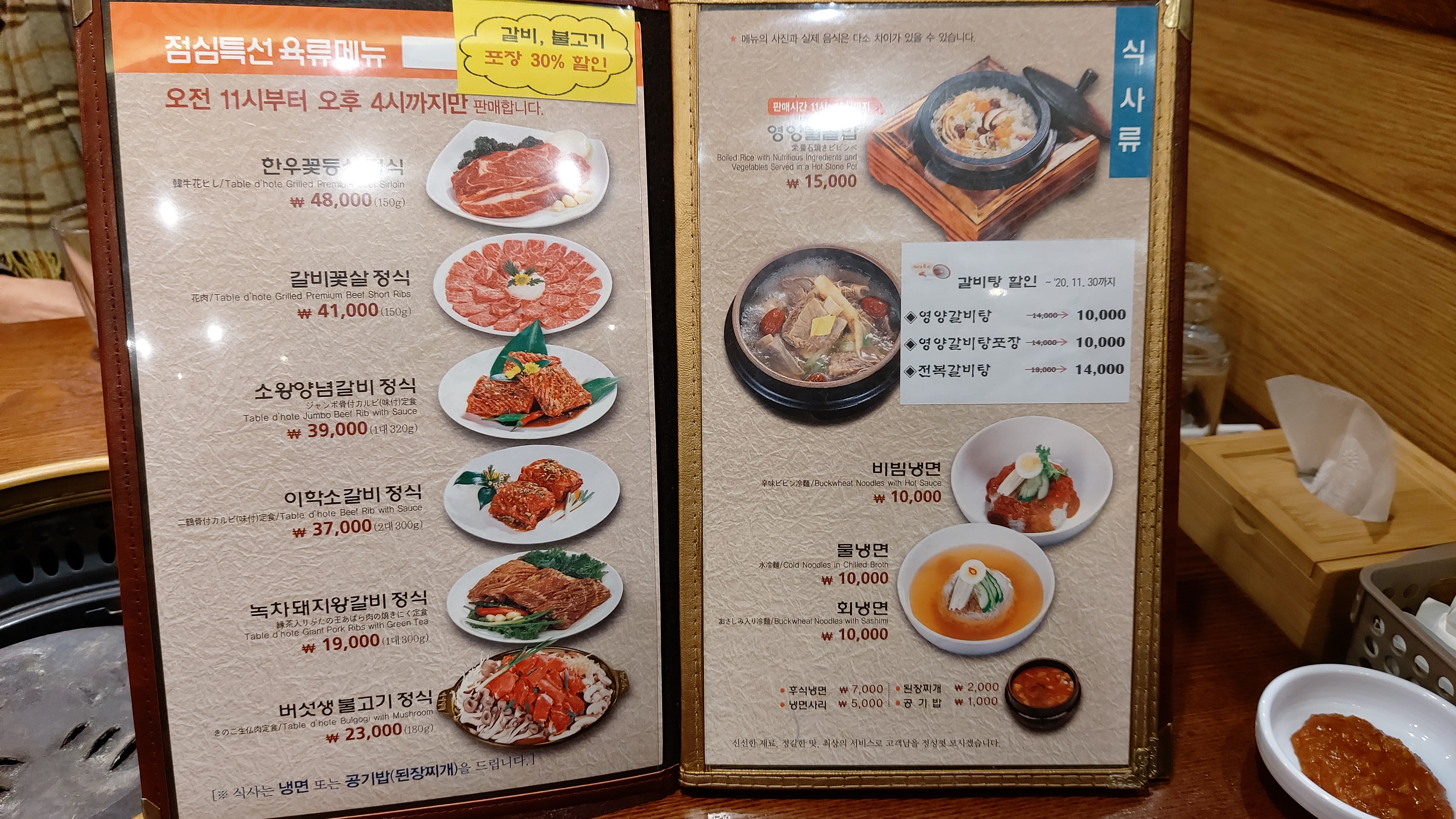 코로나 때문인지 갈비탕 할인 판매를 하는데 작년에 이어 금년에도 계속하더군요.(14,000원 → 10,000원)