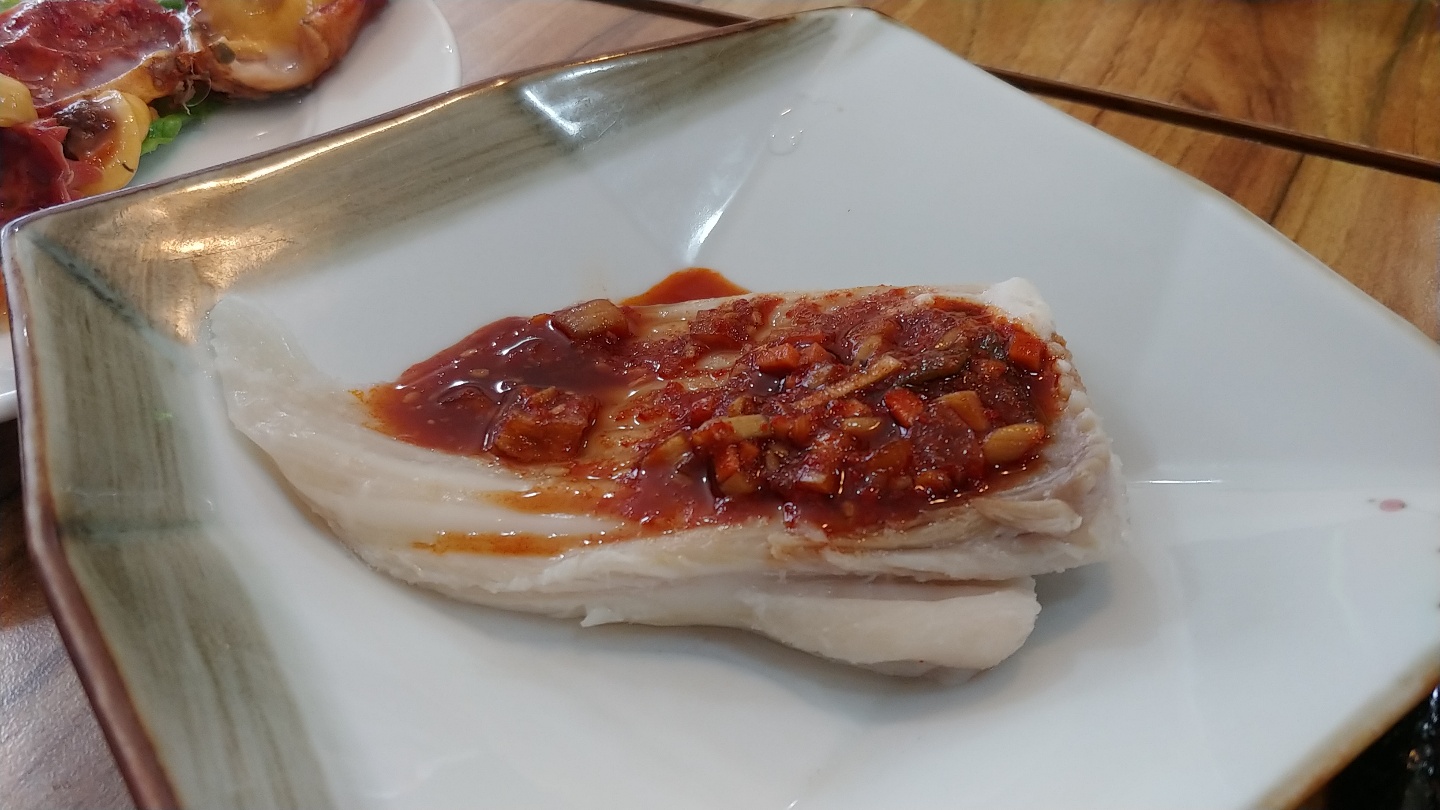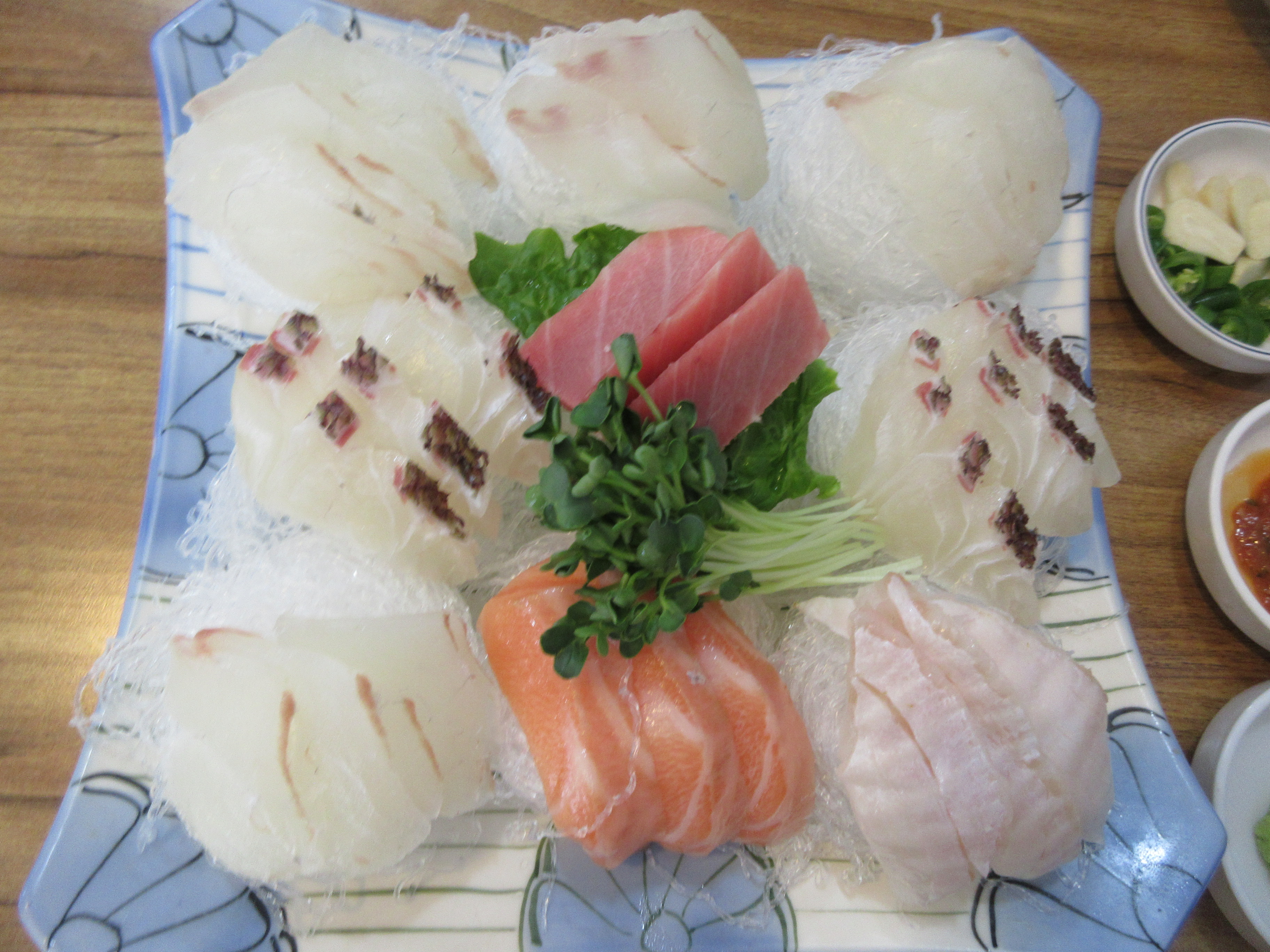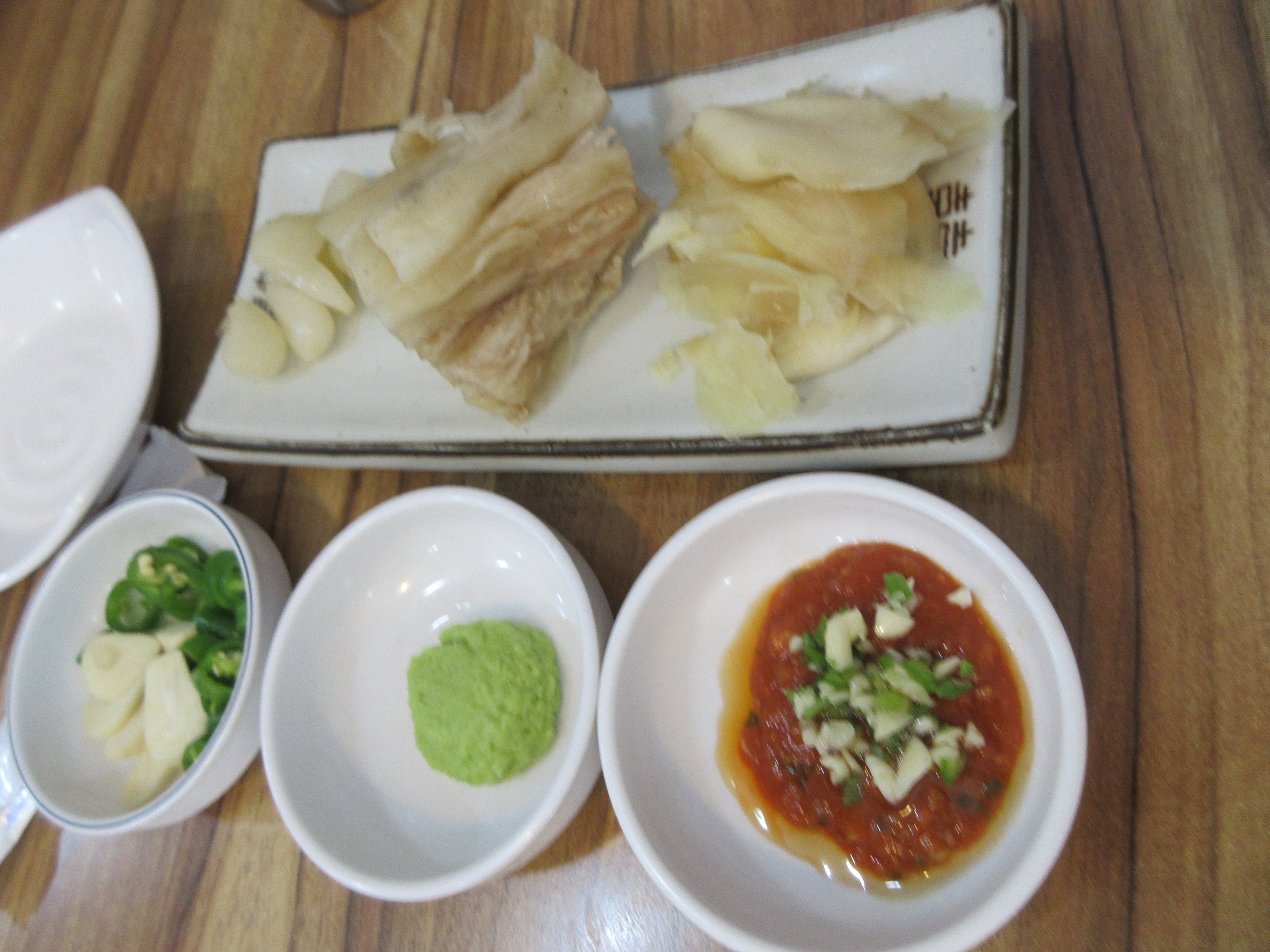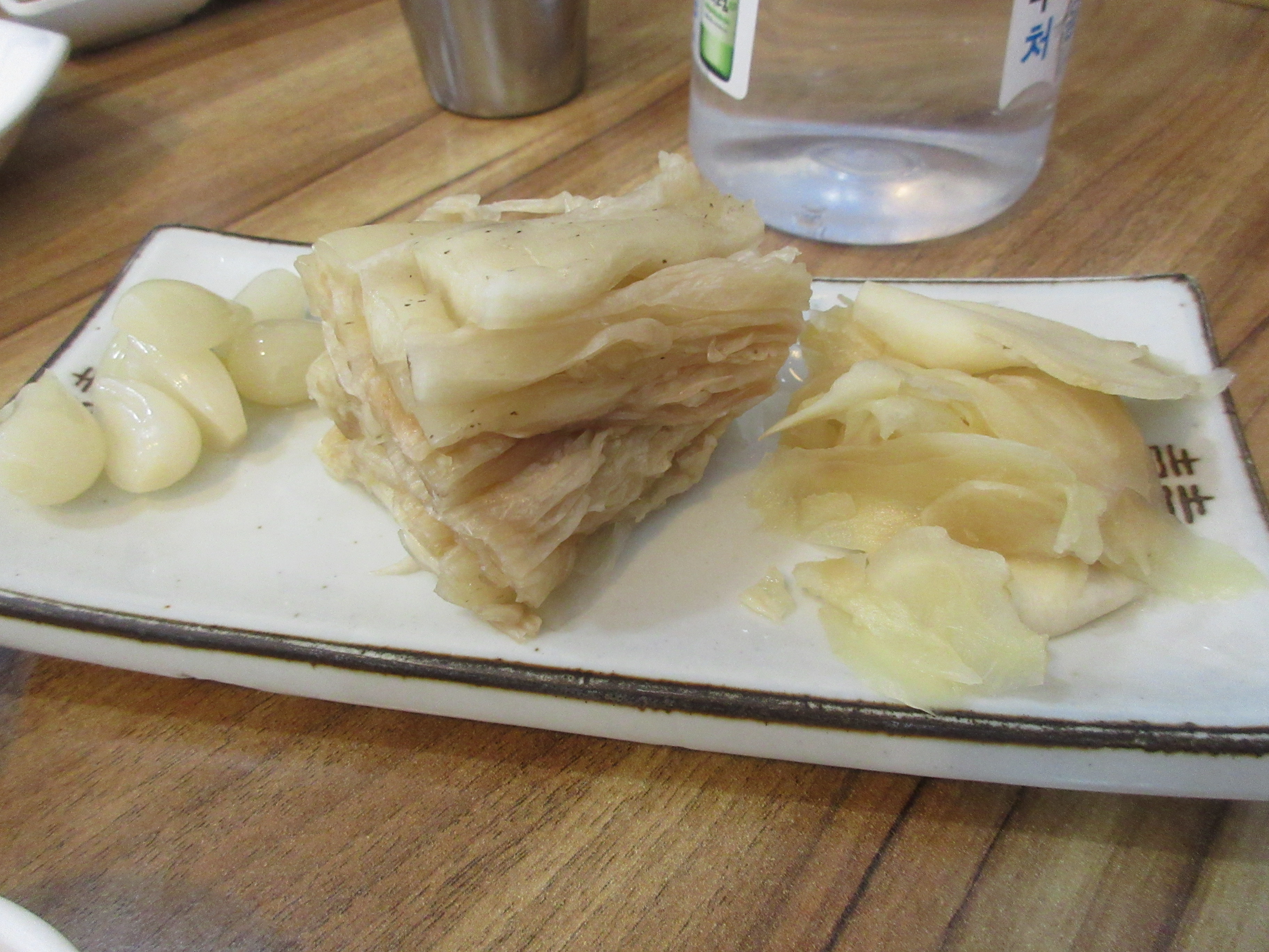 밑반찬은 거의 없는데 회 먹는데 필요한 묵은지, 락교, 초생강 3종 세트가 나오는군요.