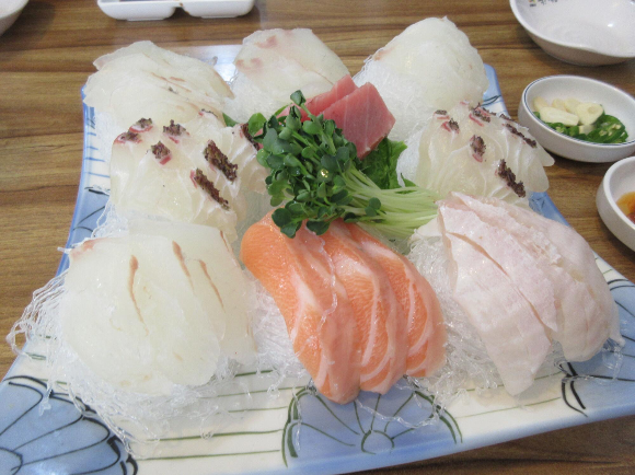 흔히 스끼다시라고 부르는 곁들이 음식 없이 바로 회가 나오는 집입니다.