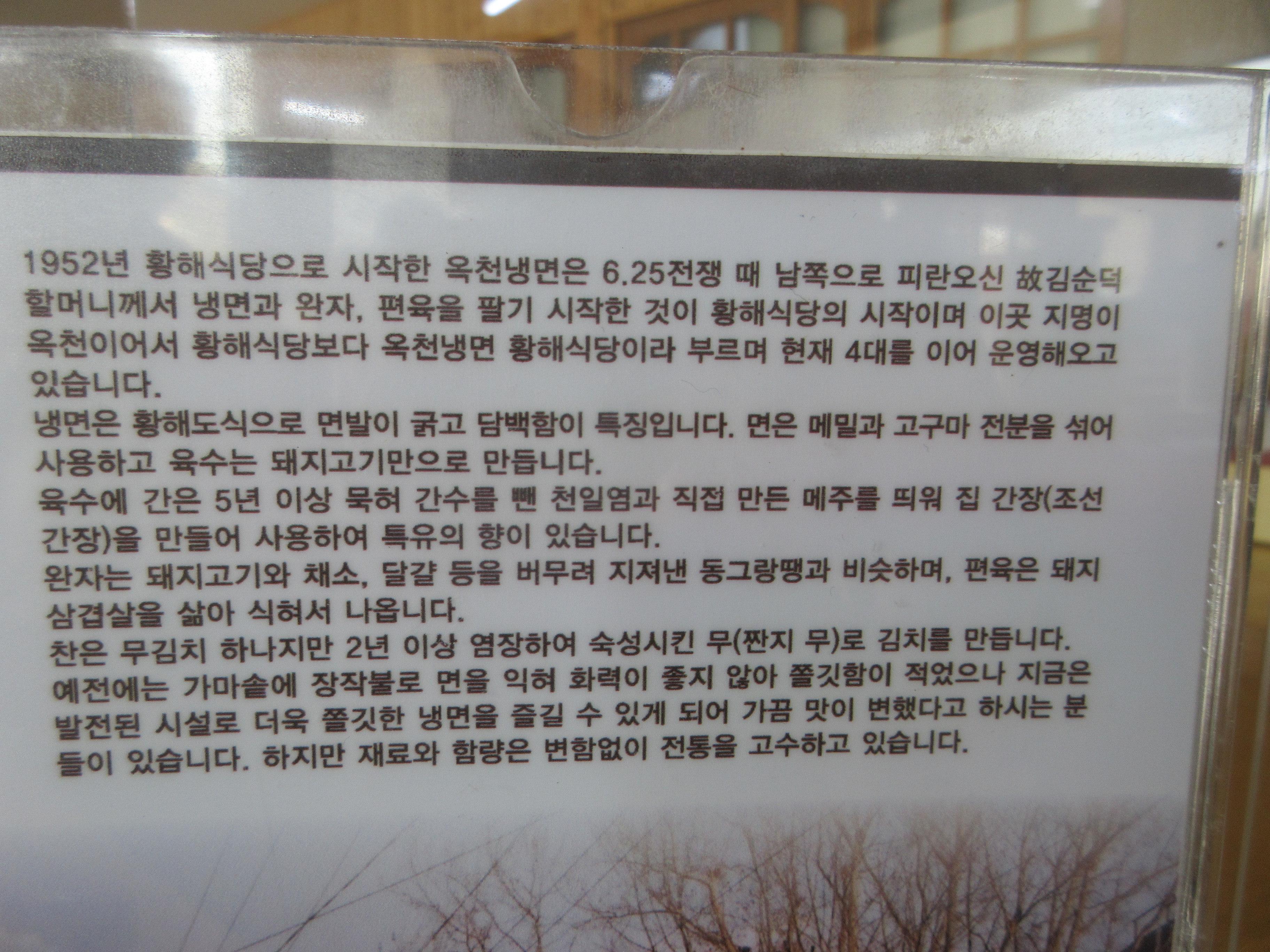 원래는 황해식당이었는데 인근에 아류 옥천냉면이 거의 2~30개나 생겨 모두가 원조라고 써 놓는 바람에