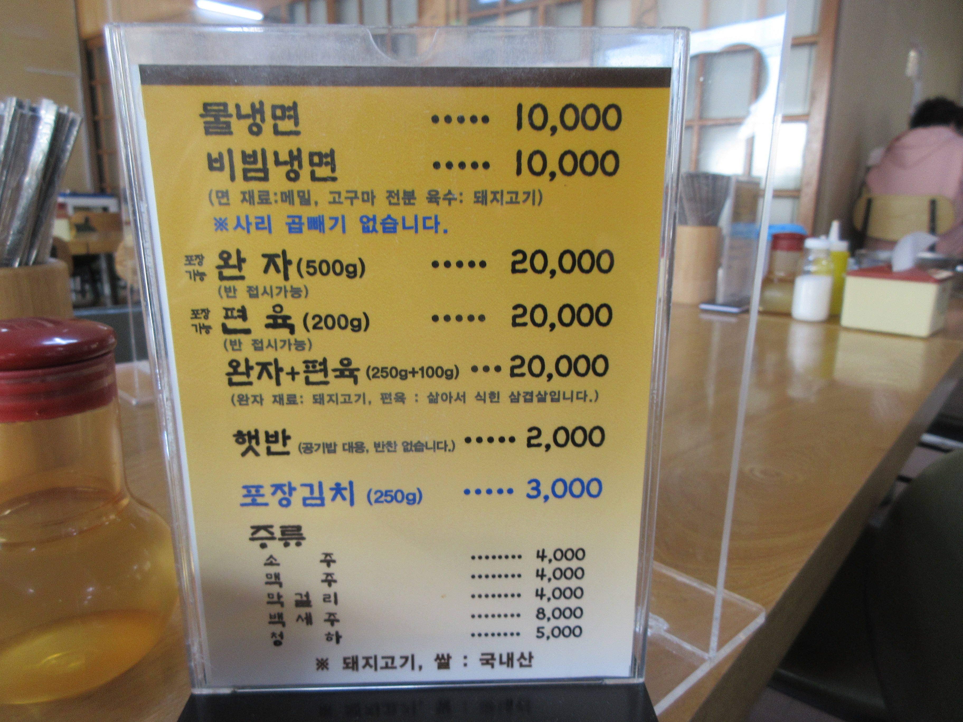 이 집의 역사와 냉면에 관해서는 테이블마다 올려져 있는 가격표를 보시면 있습니다.