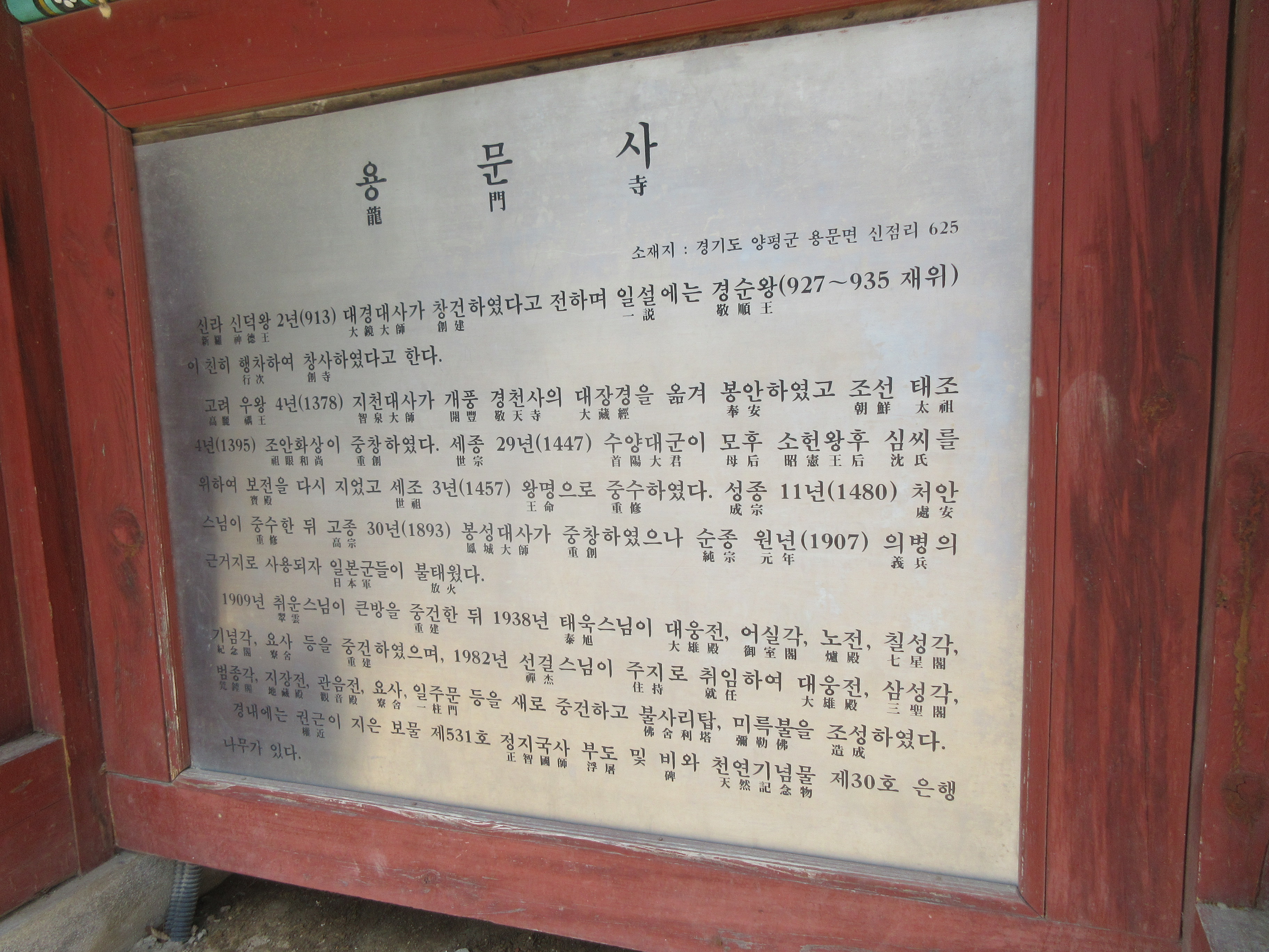 용문사(龍門寺)는 서기 913년 신라 신덕왕 2년에 대경대사(大鏡大師)가 창건했다고 전해지는 천년고찰입니다.