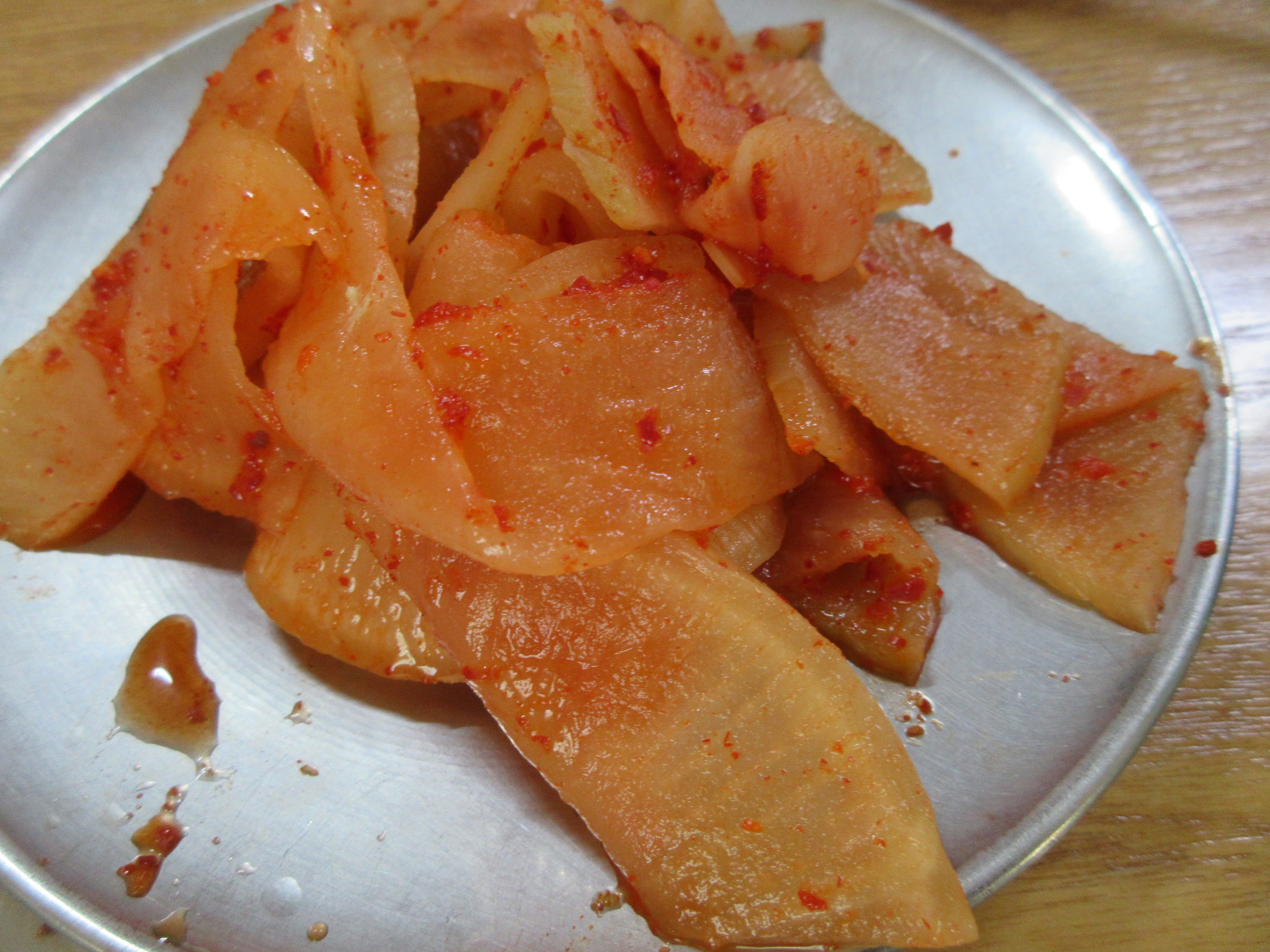 노병은 이 무김치가 너무 맛있어 몇 번씩 추가해서 먹습니다.