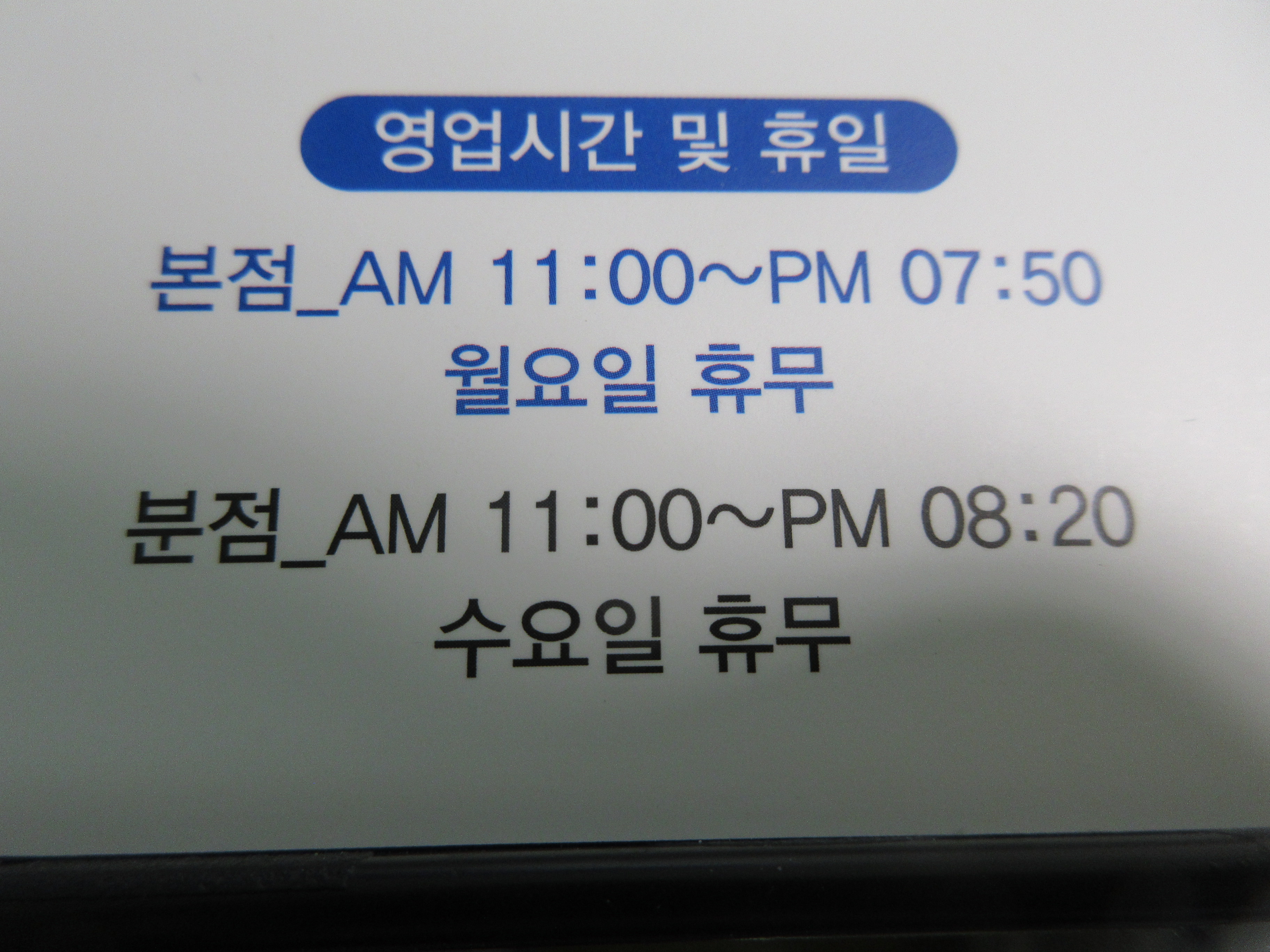 (본점과 분점의 영업시간과 휴일은 아래 명함을 참고하시고요)