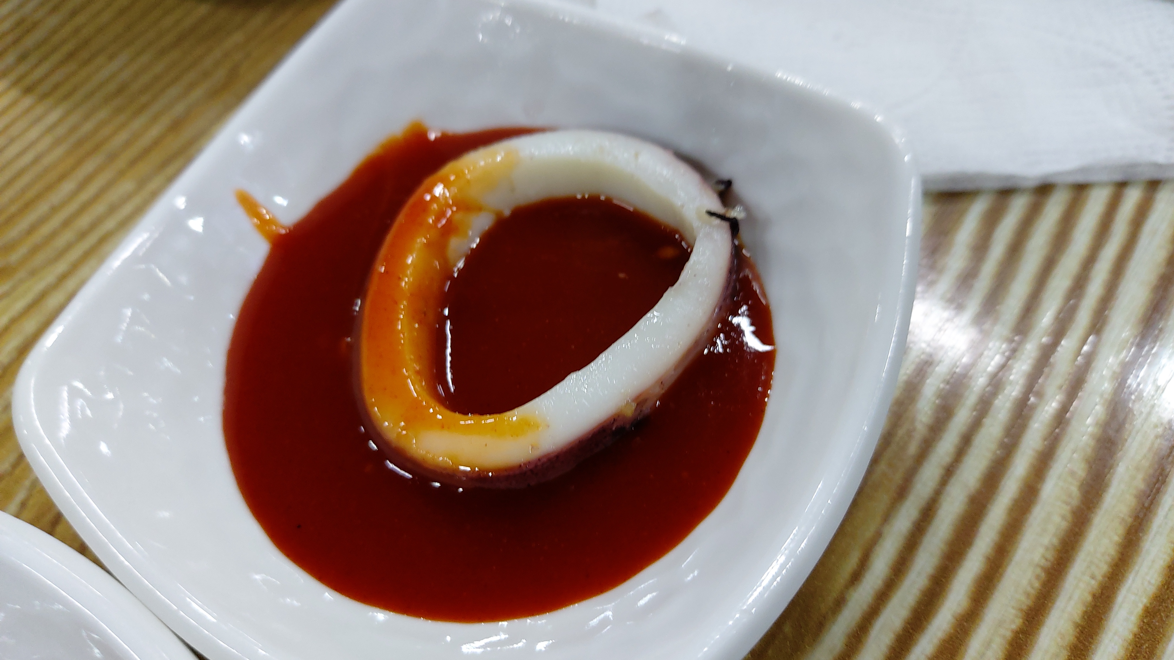 얼른 살짝 찍느라 흔들렸는데 국물에 장이 들어간 것 같이 보입니다.