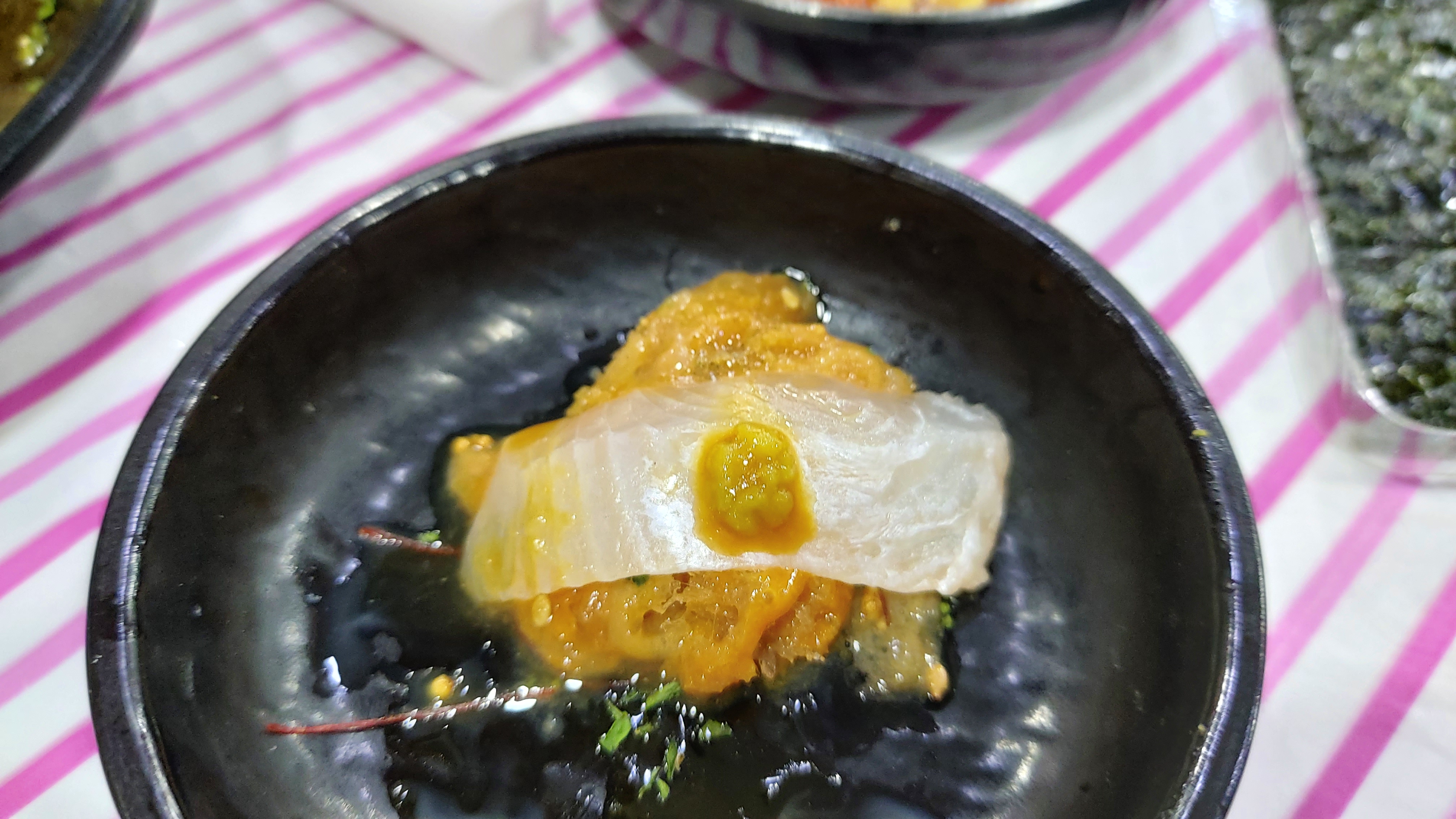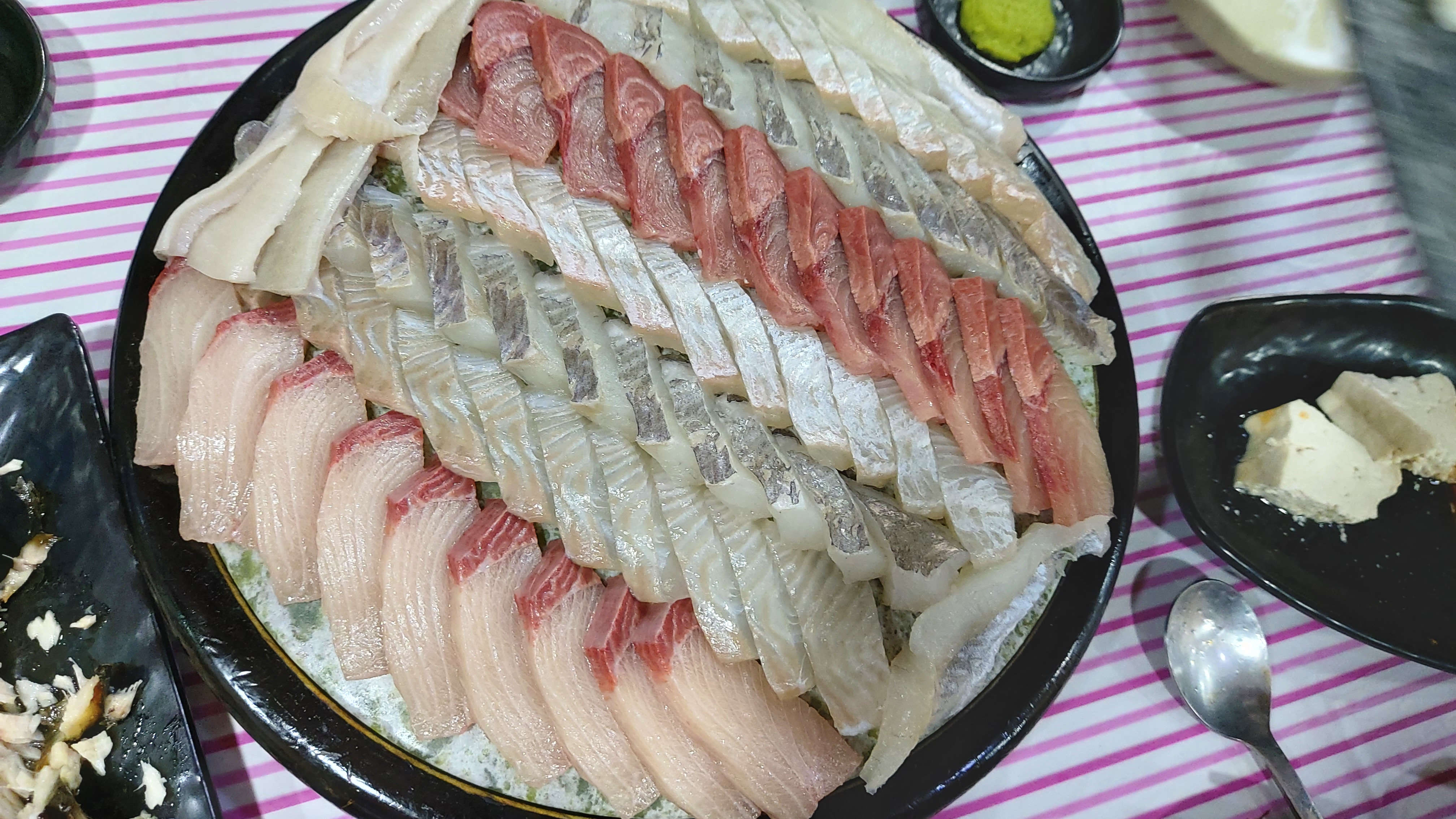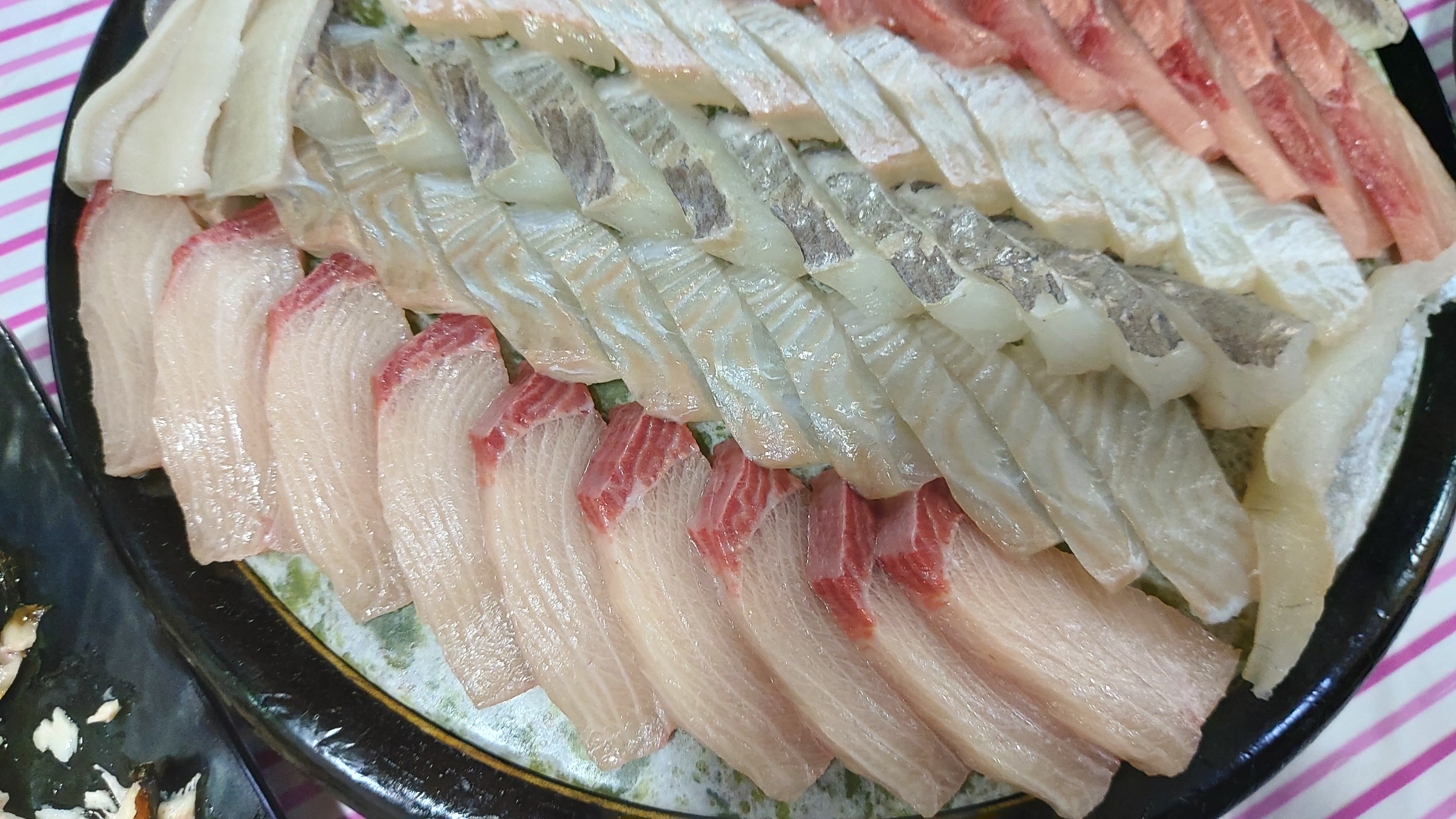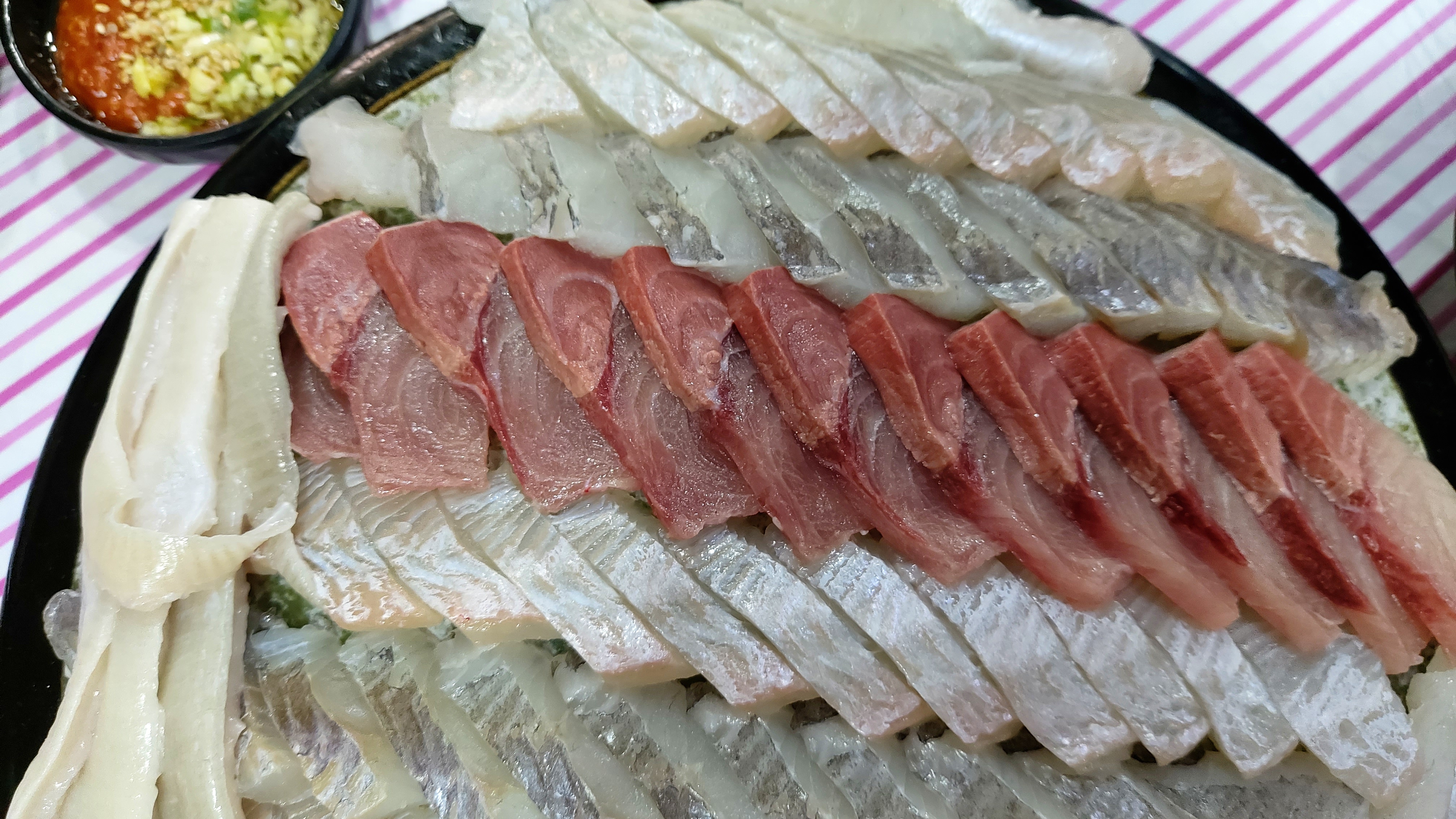 두껍게 잘 뜬 회라 식감도 좋고 맛도 훌륭합니다.
