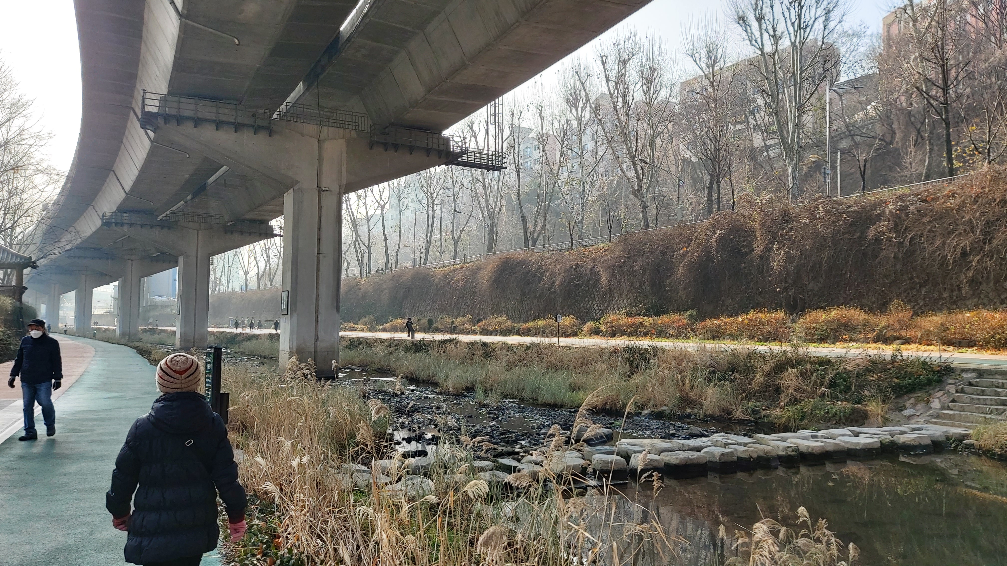 오전 11시에 홍제역에서 출발해서 홍제천을 따라 내려갑니다.