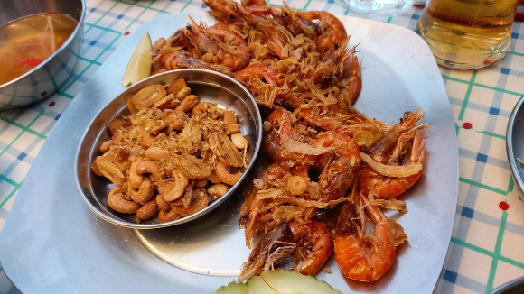우리 팀이 제일 좋아하는 꿍 톳 끄라띠암 ( 튀긴 새우와 마늘 : 20,000원 )