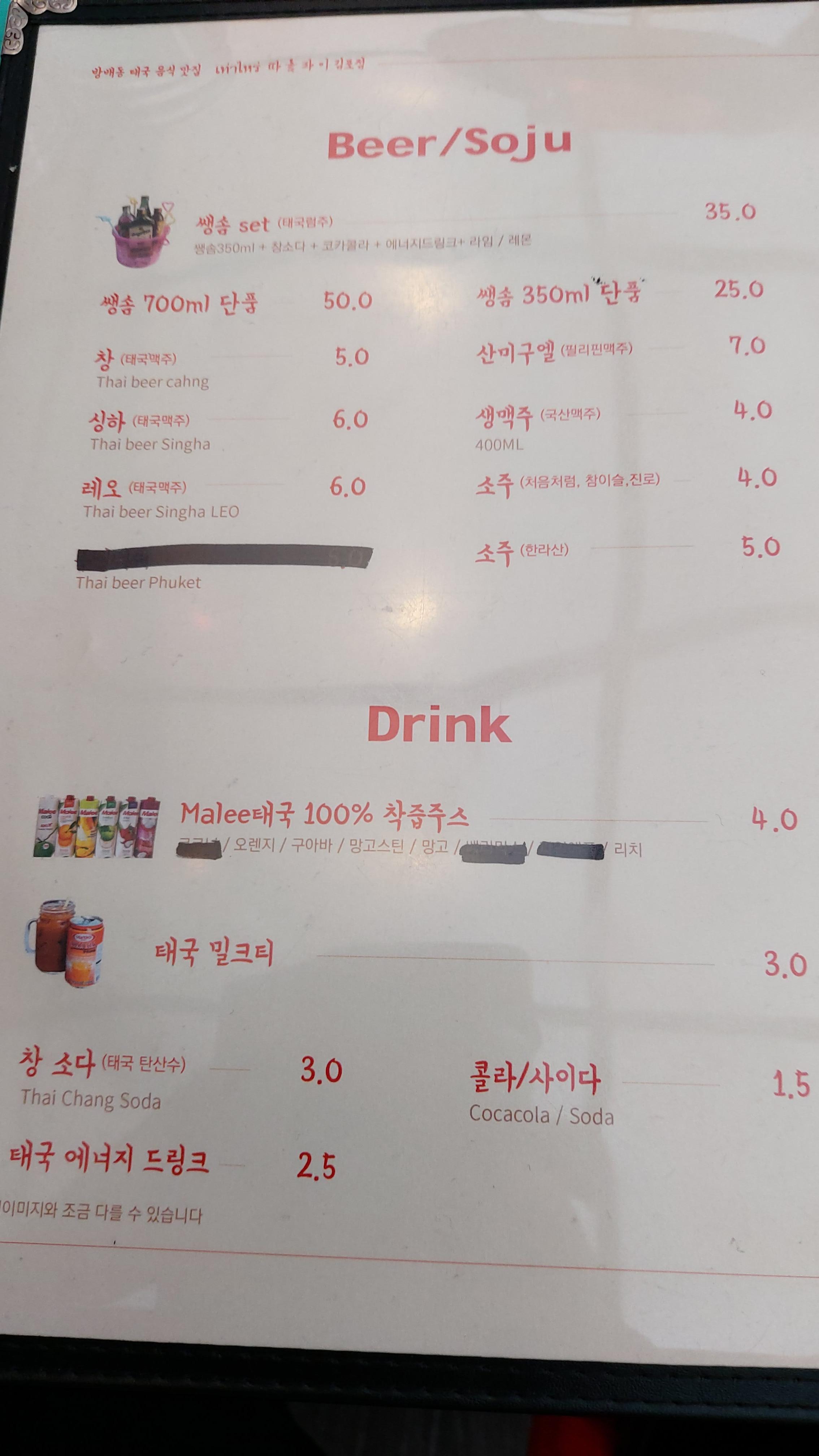 간판에도 태국 식당, 태국 술집이라고 쓰여 있는데 태국의 포차 같은 느낌의 집입니다.