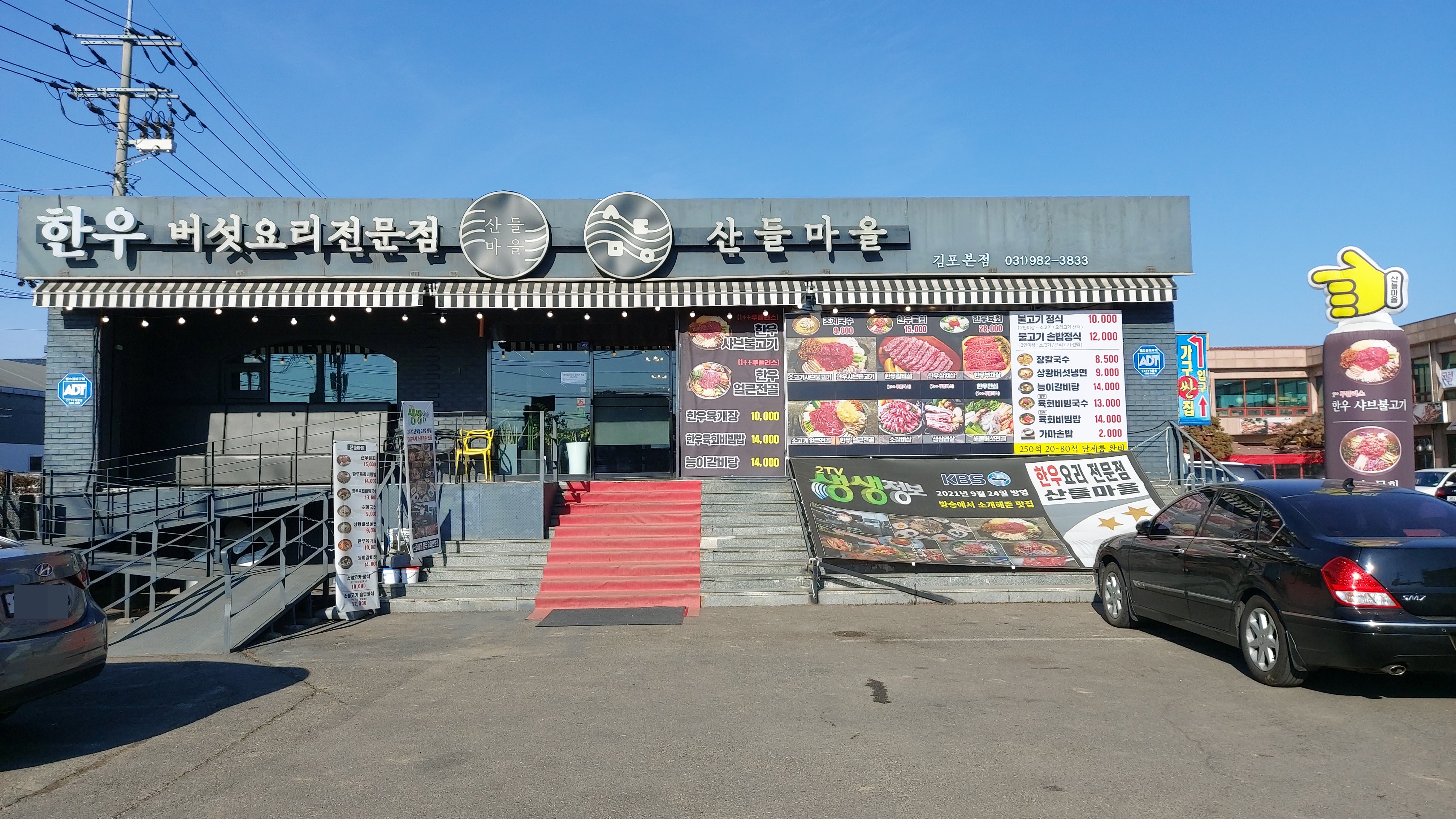 버섯요리 전문점이라는 김포 산들마을은 김포시 양촌읍 누산리 모아패션아울렛 인근에 있습니다.