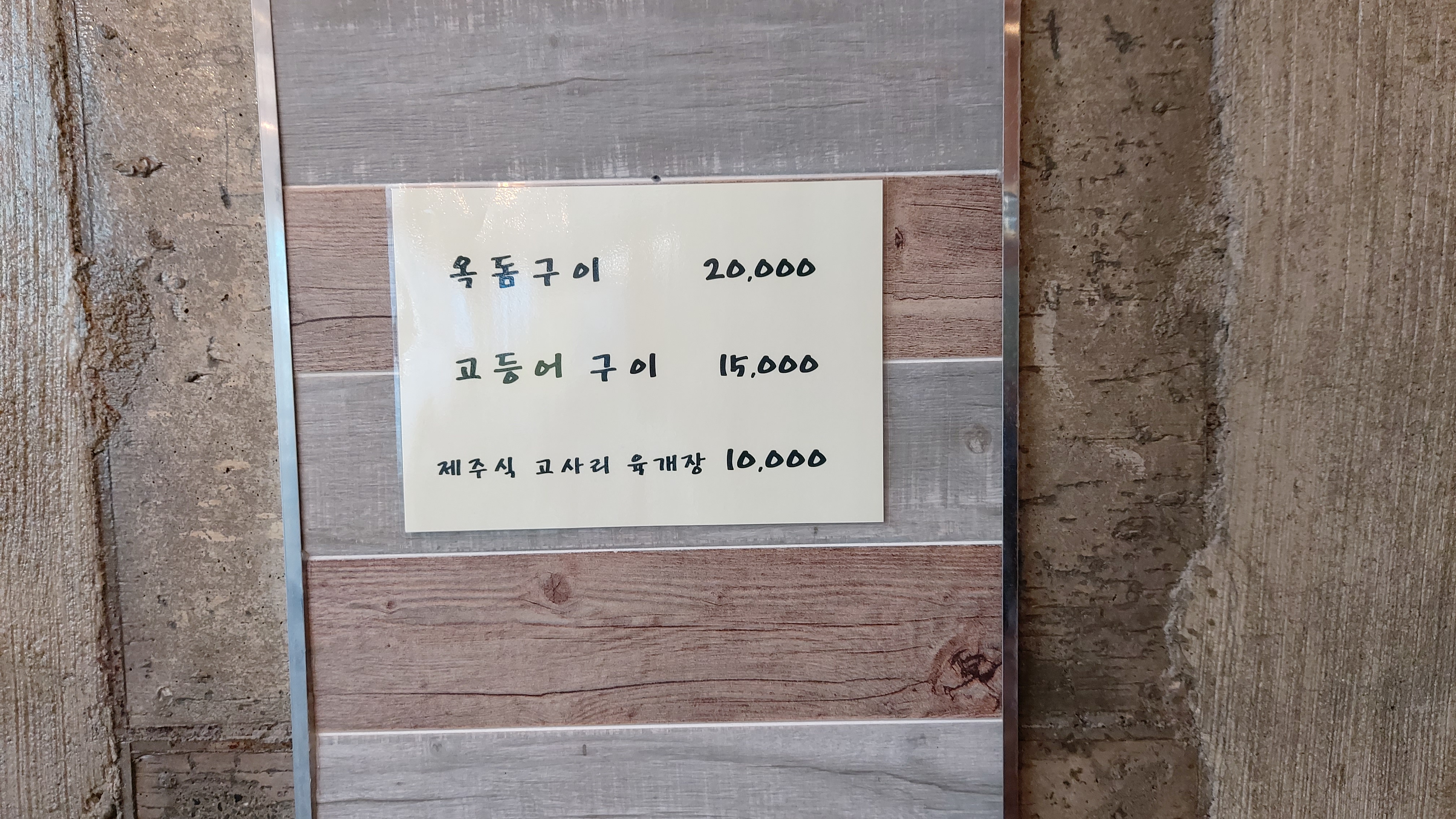 벽에 옥돔구이, 고등어구이, 제주식 고사리 육개장도 붙어 있더군요.