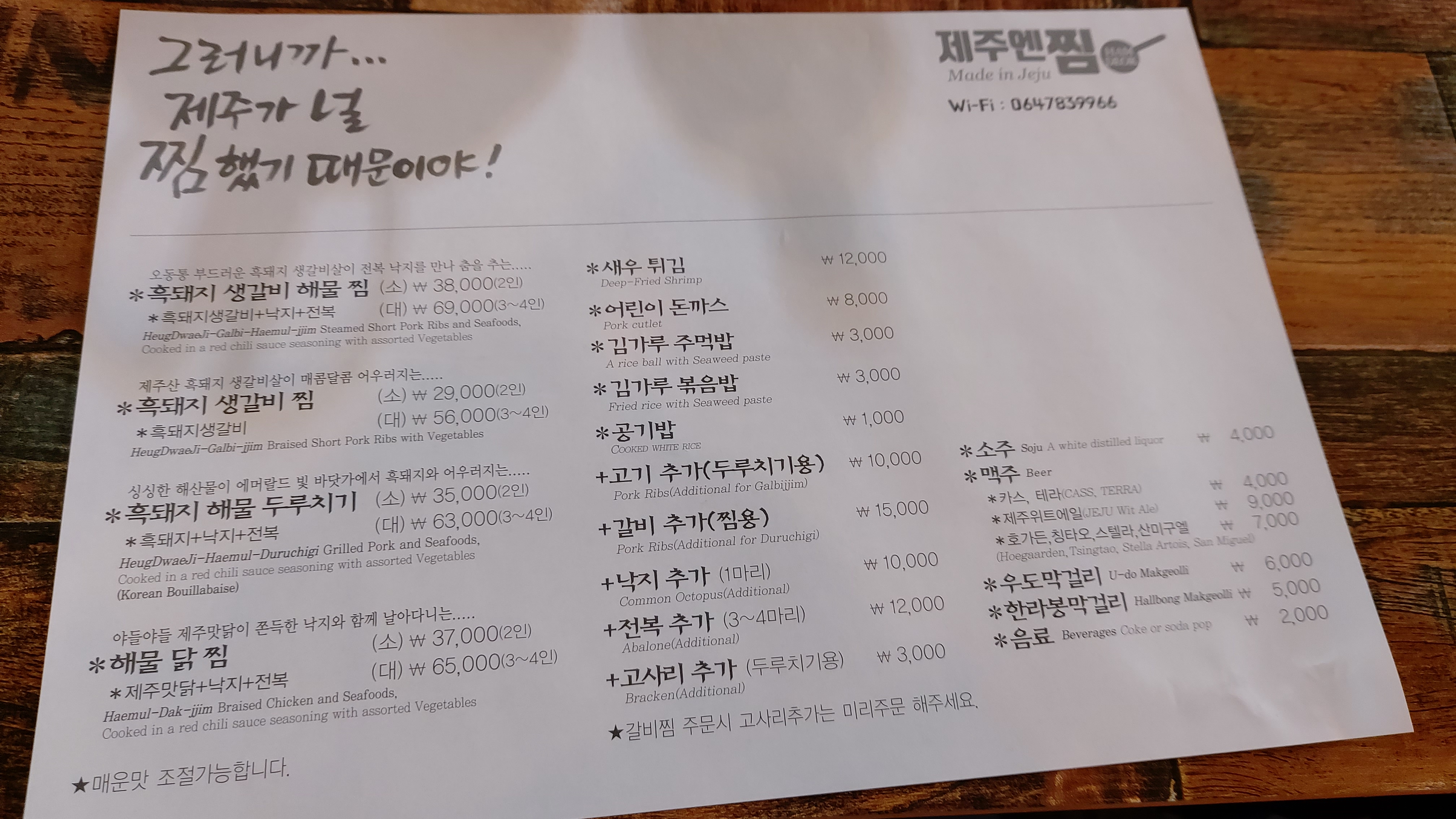 제주엔 찜이라는 찜 전문집으로 흑돼지 생갈비 찜이나 해물찜 등이 주 메뉴인가 봅니다.