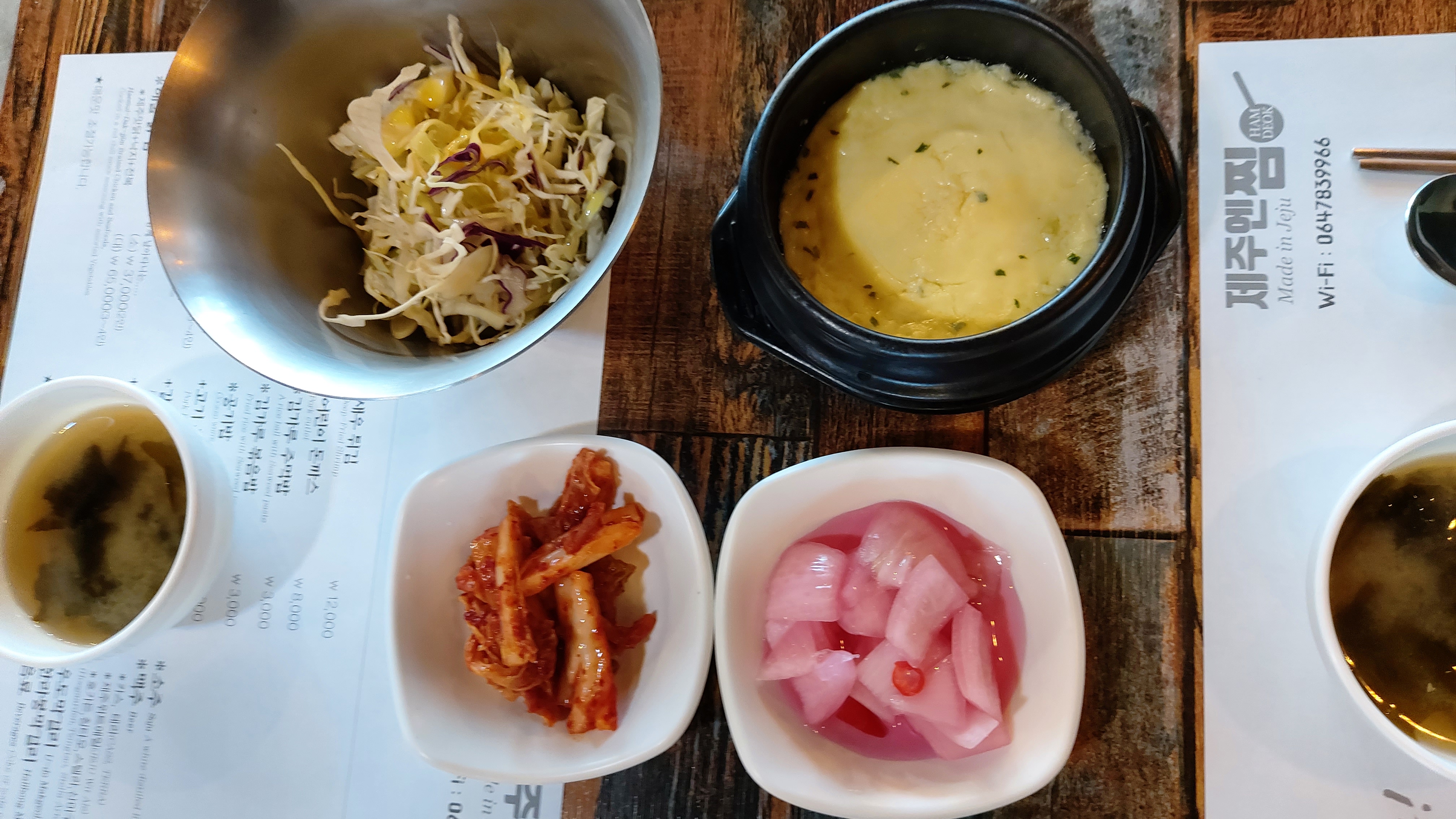 기본으로 나오는 밑반찬과 된장국입니다.