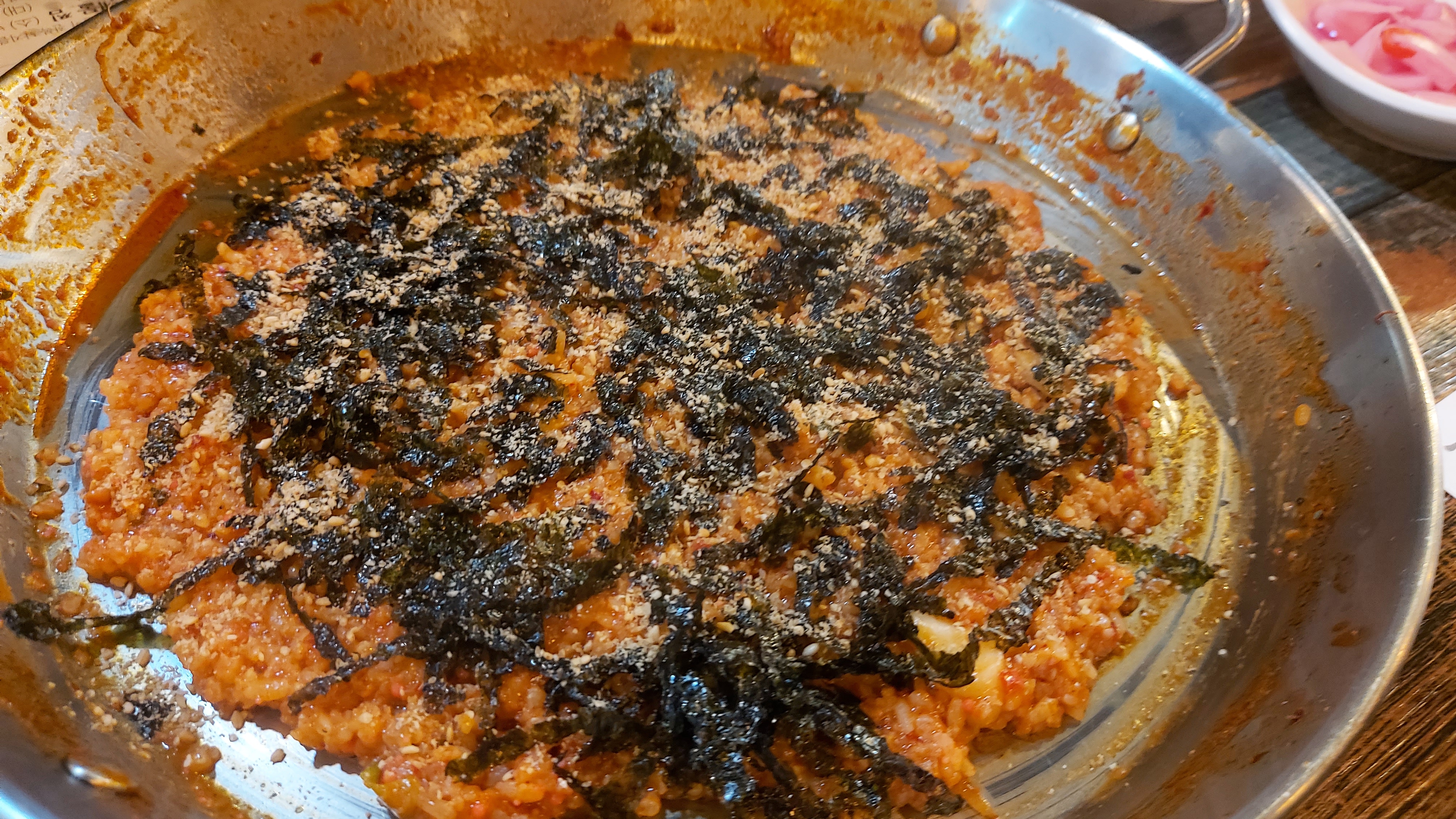 주방에서 남은 두루치기 양념에 볶아다 주는 김가루가 많이 올라가 볶음밥인데