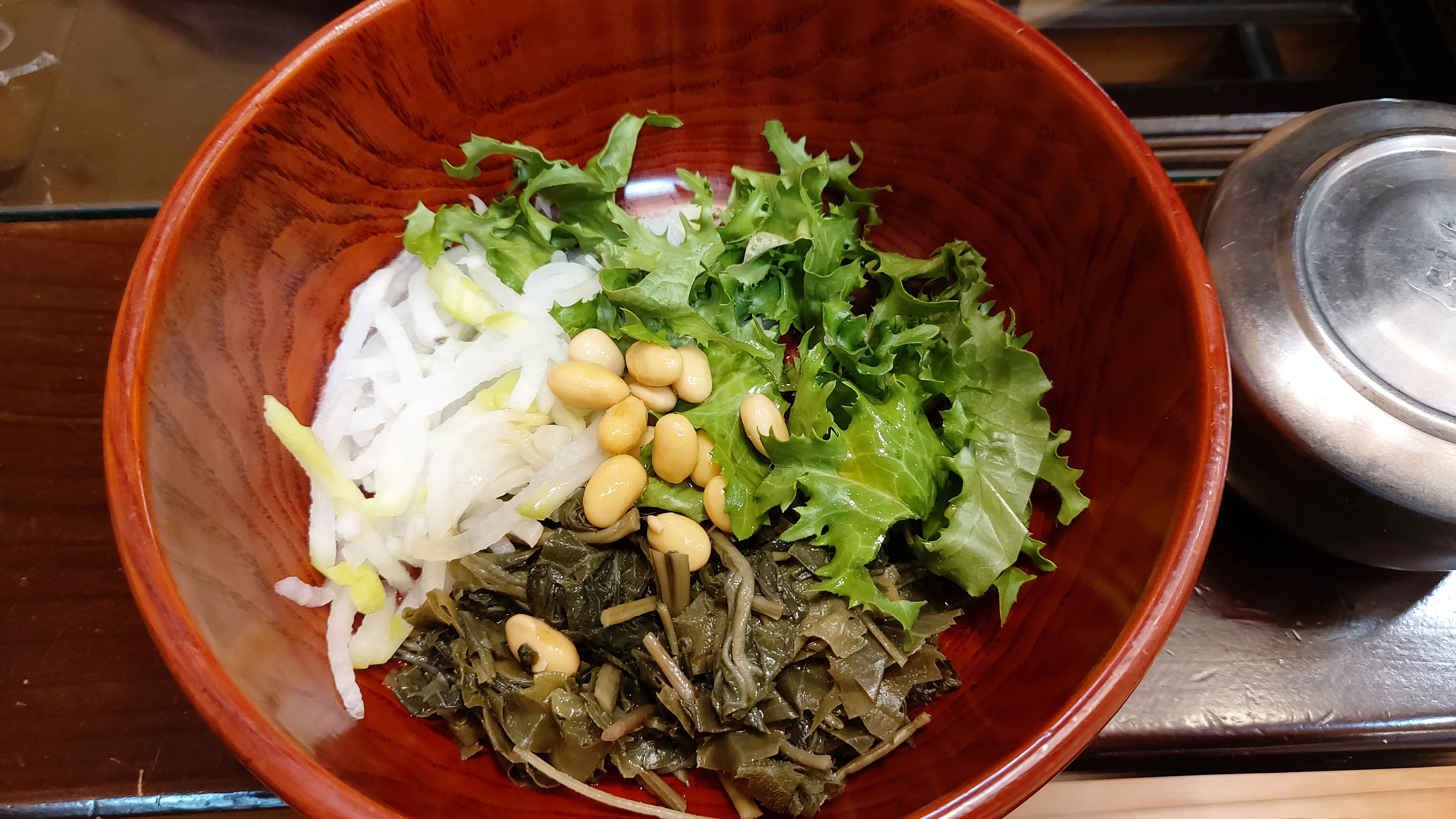 비빔밥 재료로는 다래순 + 취나물, 무나물, 야채에 콩 등이 들어가 있습니다.